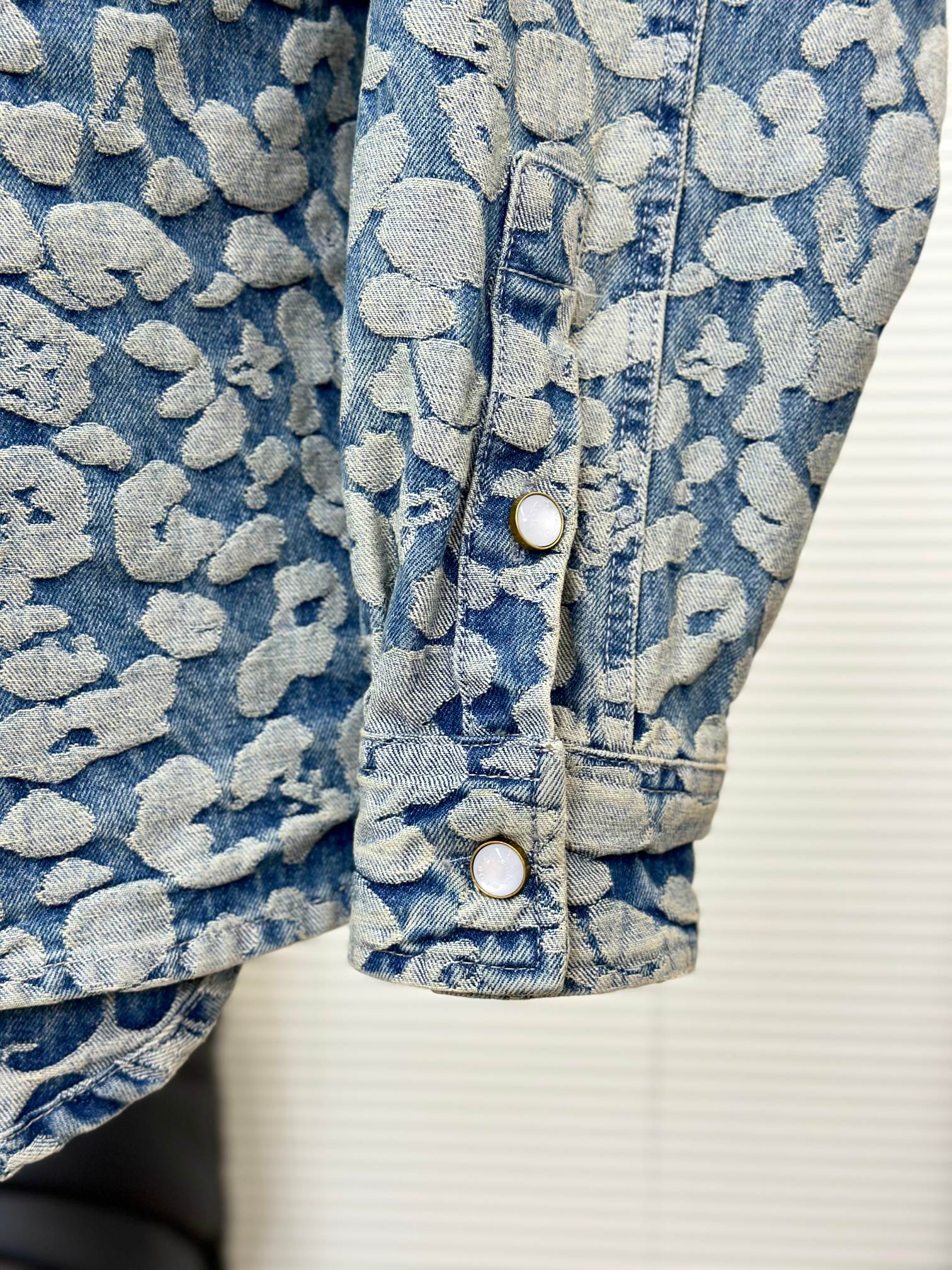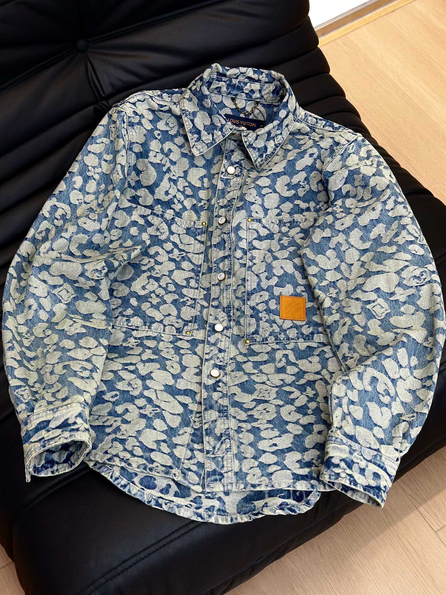 Elevate your style with this Louis Vuitton x Nigo denim jacket, featuring a modern leopard print. Crafted from premium denim for a unique, fashionable look.
