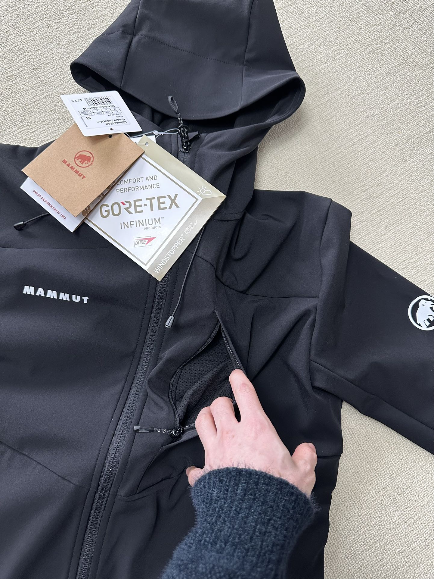 This Mammut Gore-Tex soft shell jacket combines performance and comfort for outdoor enthusiasts.