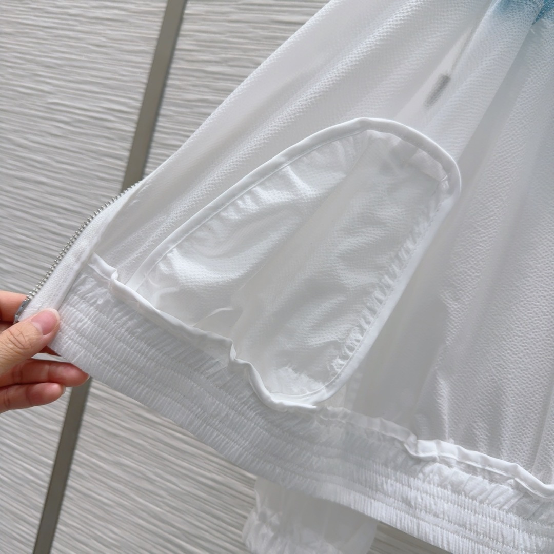 This Miu Miu 2025SS sun protective jacket combines high fashion with functional design. Made with special textured material and meticulous attention to detail, it offers a sophisticated and chic look while providing essential UV protection. The tailored fit enhances the garment's elegant appeal, making it a must-have for any wardrobe.