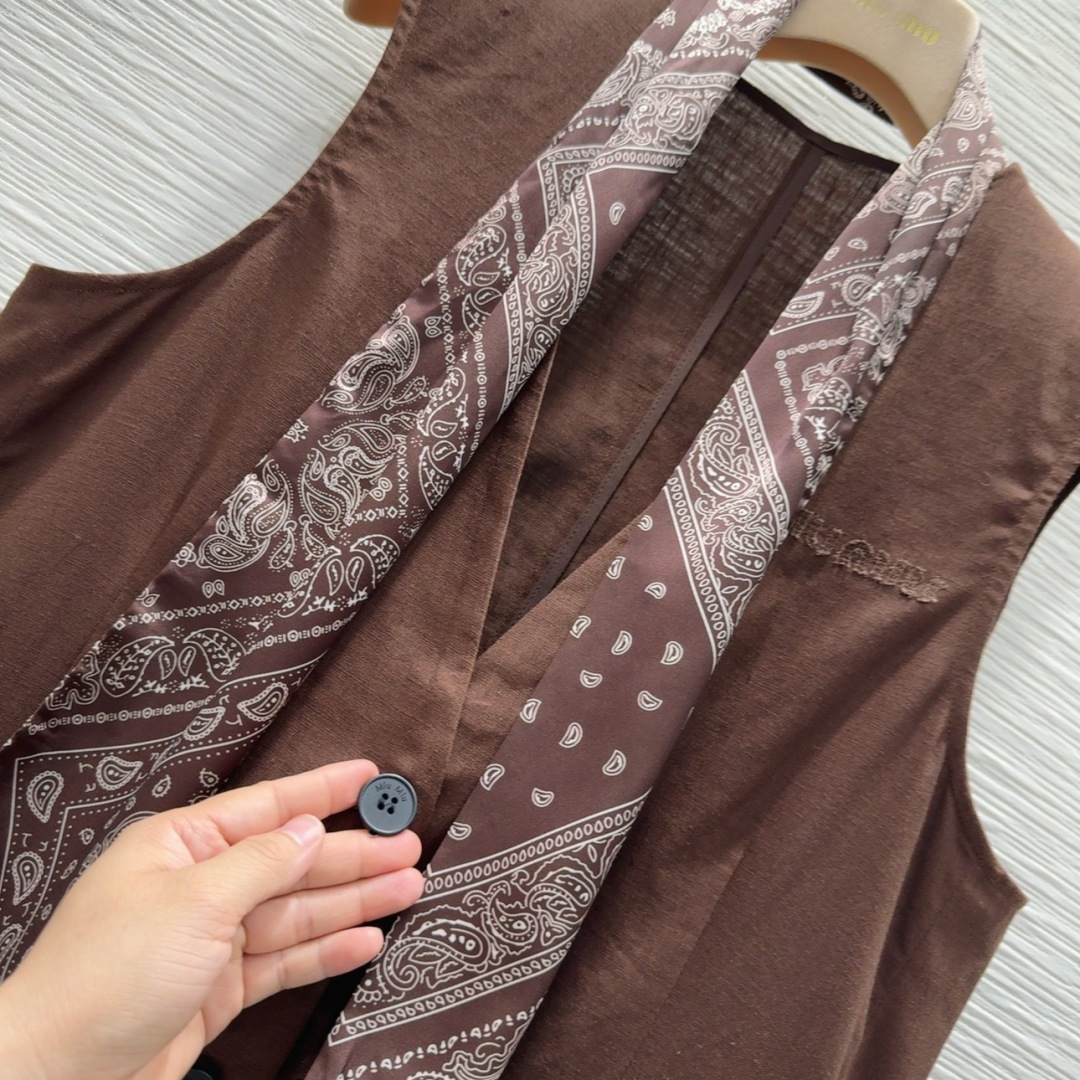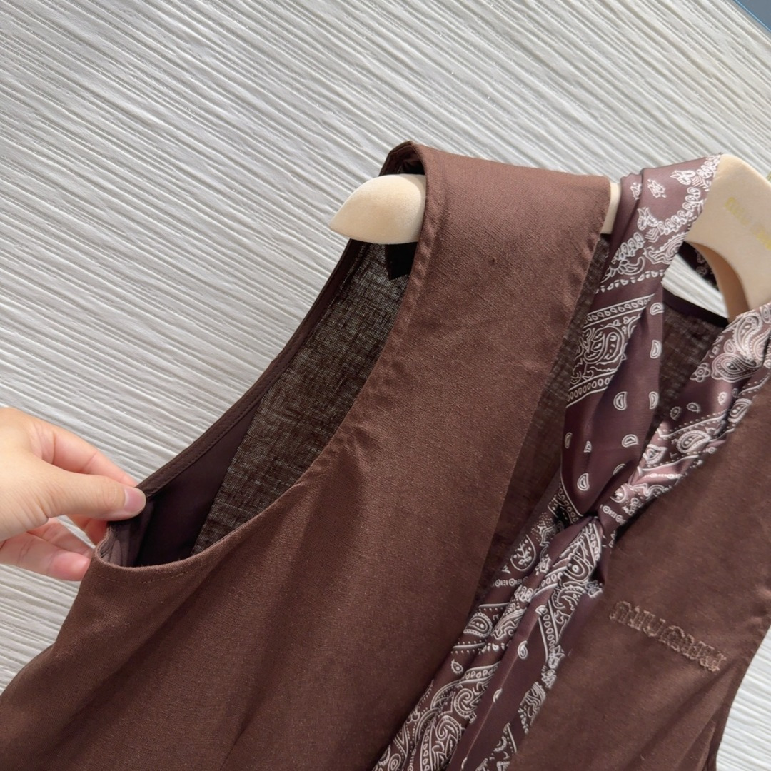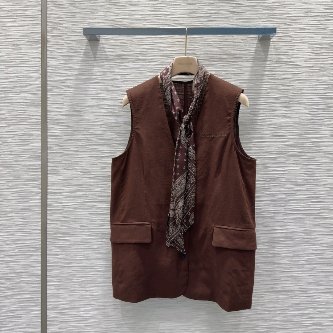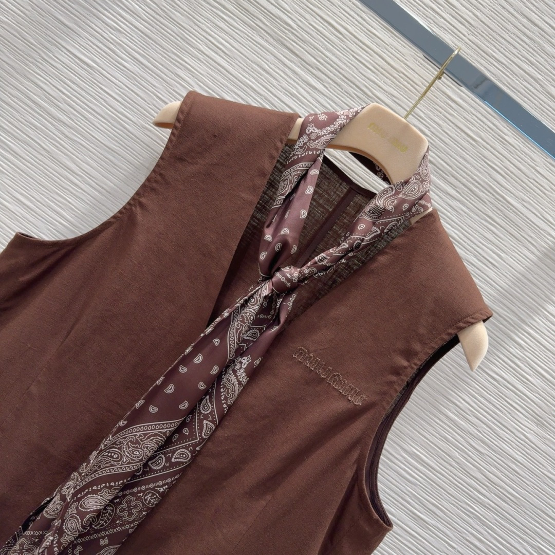 Miu Miu 2025SS Women's Sleeveless Vest and Shorts Set, Brown