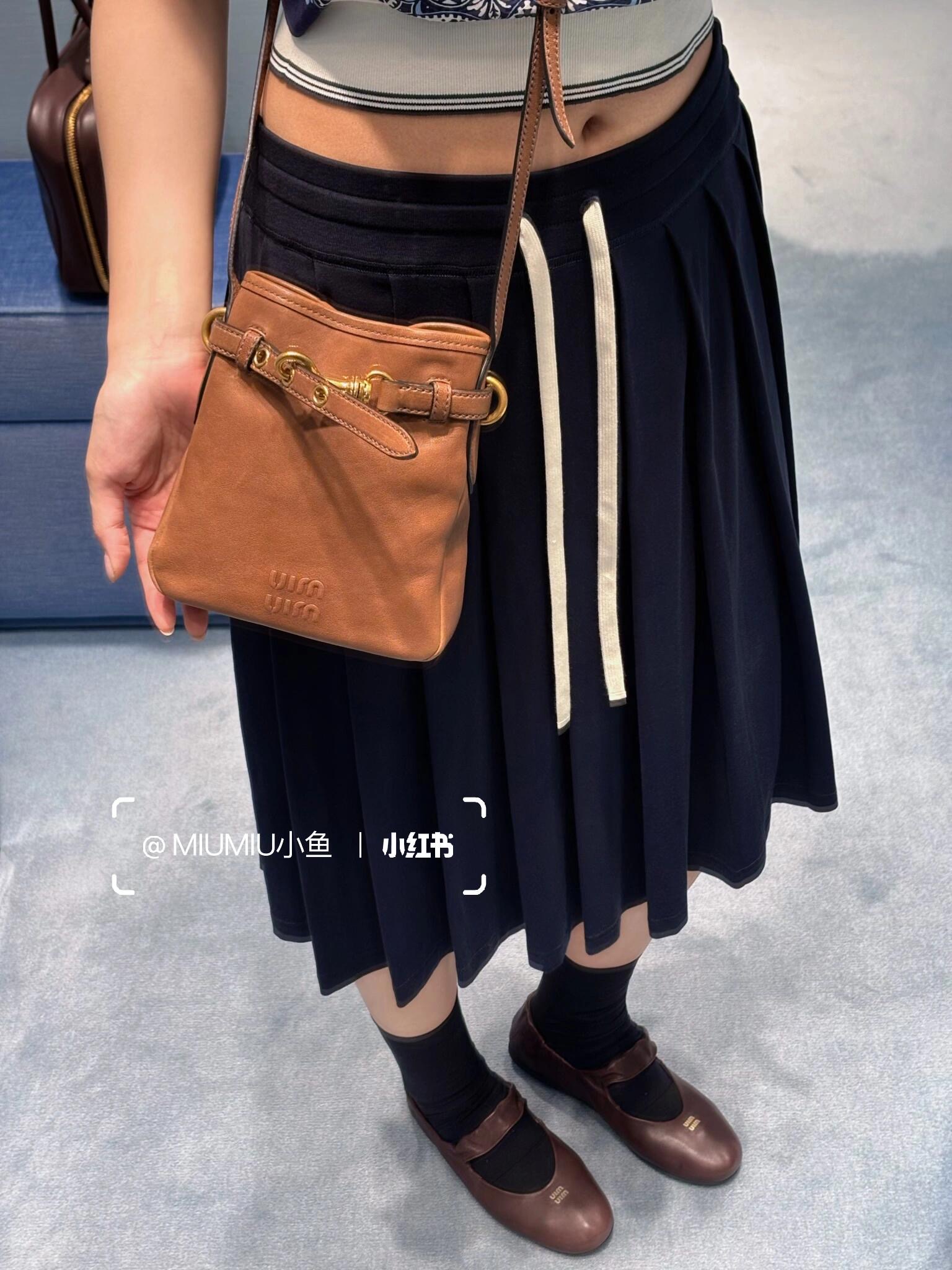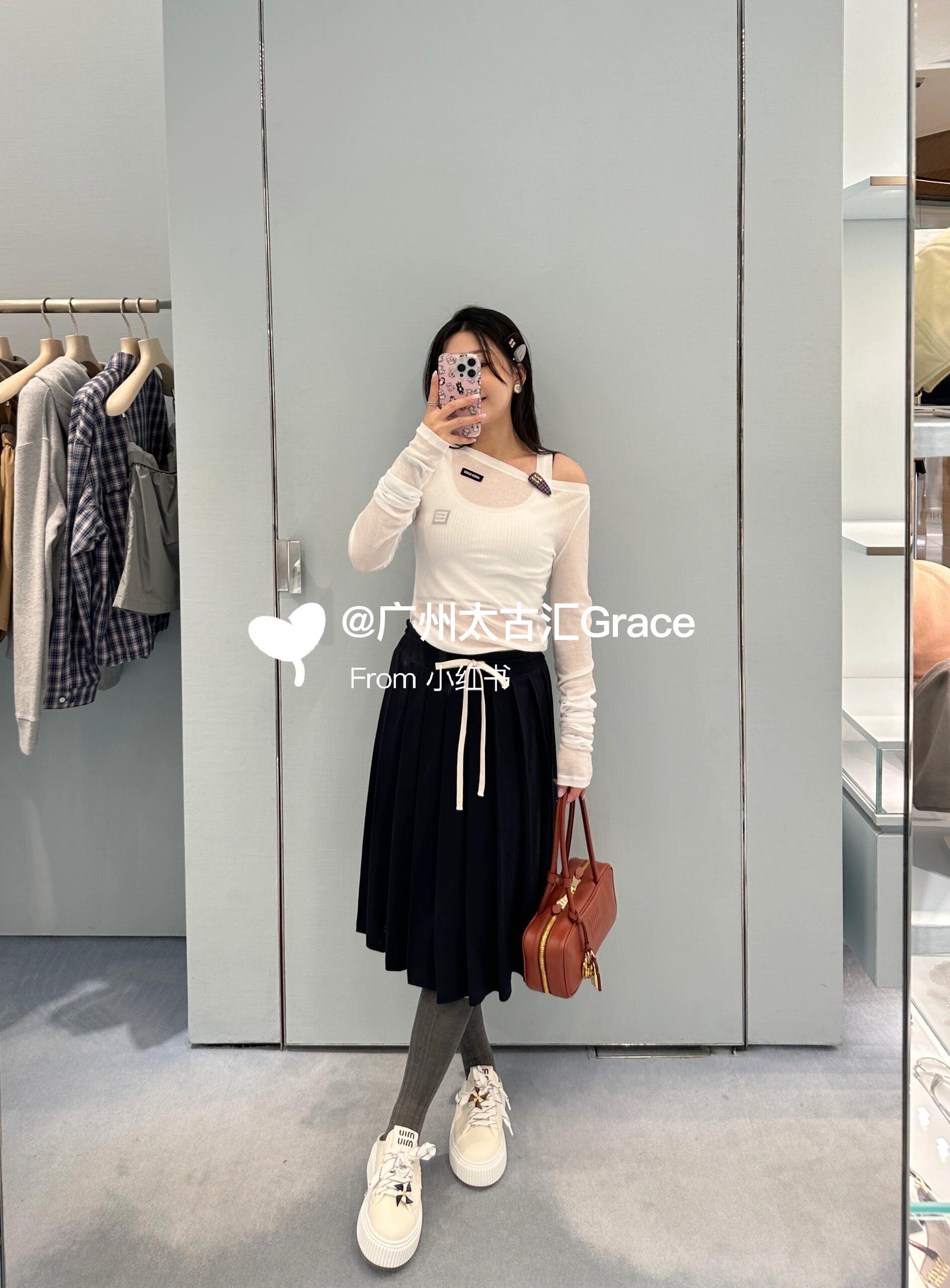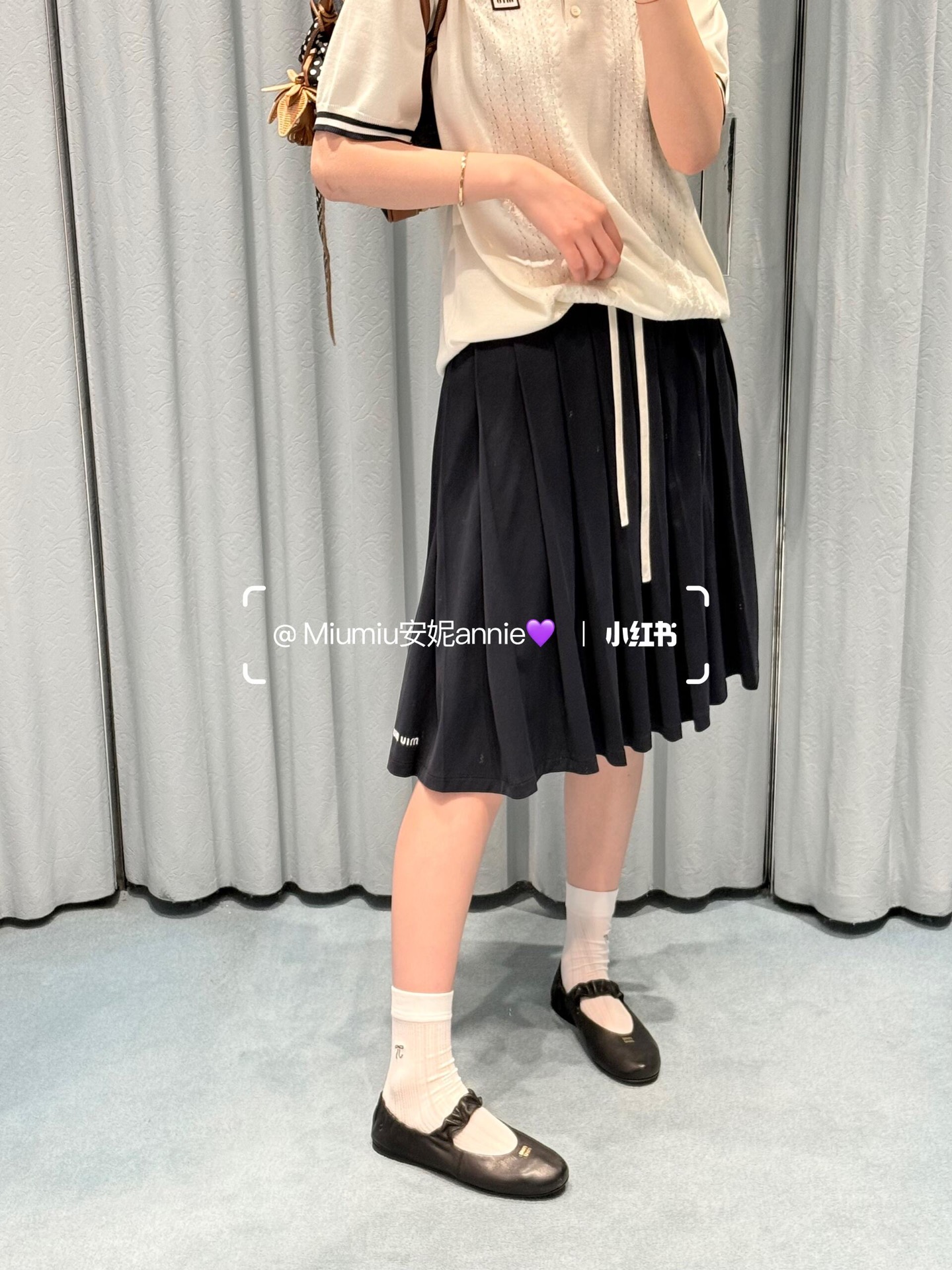 Miu Miu 25FW early autumn new skirt, custom 100% cotton material, large material, exquisite pleats, very good drape, and logo embroidery at the hem.