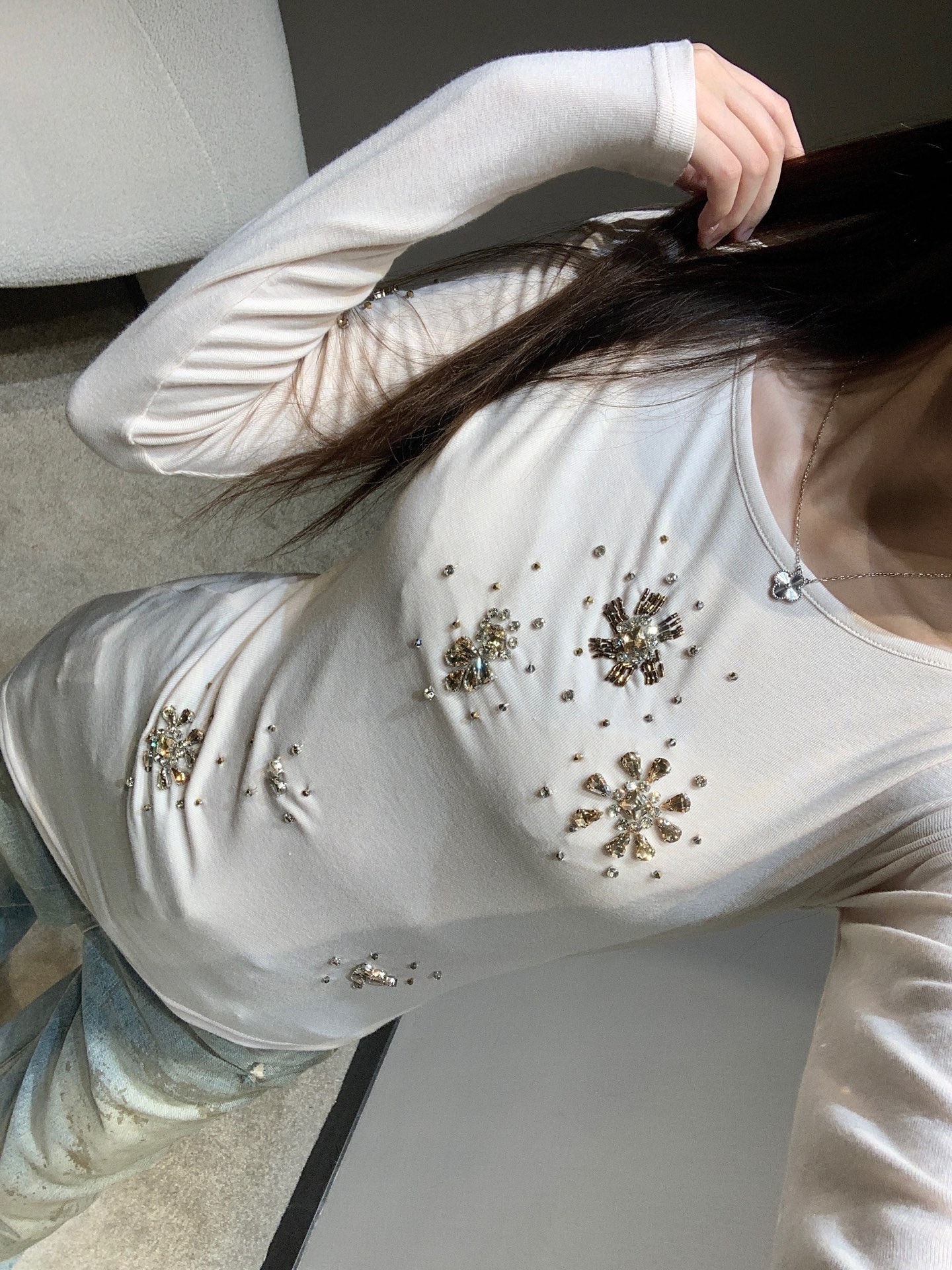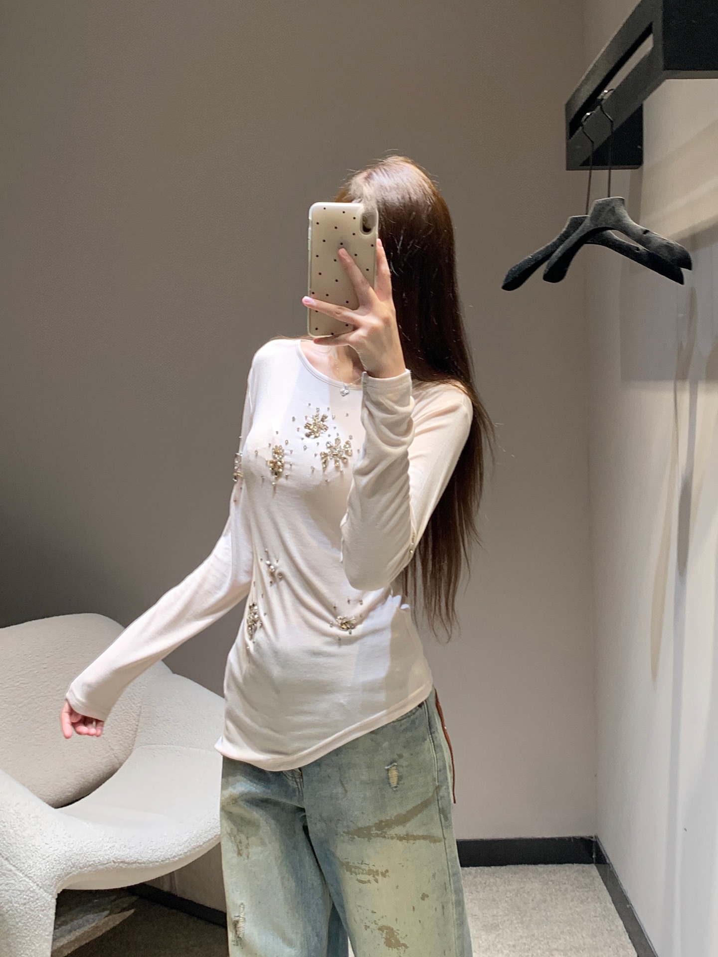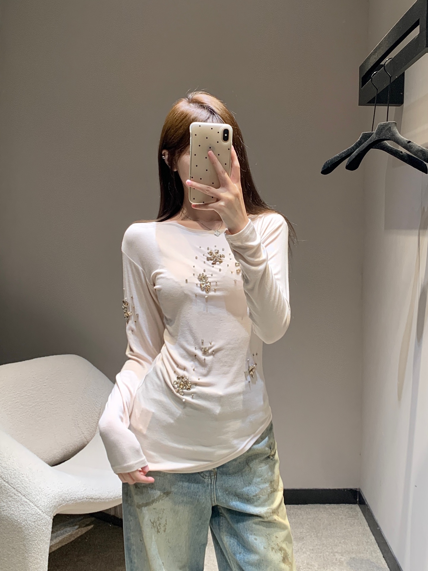Elevate your look with this Miu Miu long-sleeve top. Featuring delicate rhinestone embellishments, it adds a touch of elegance to any outfit. Perfect for day or night.