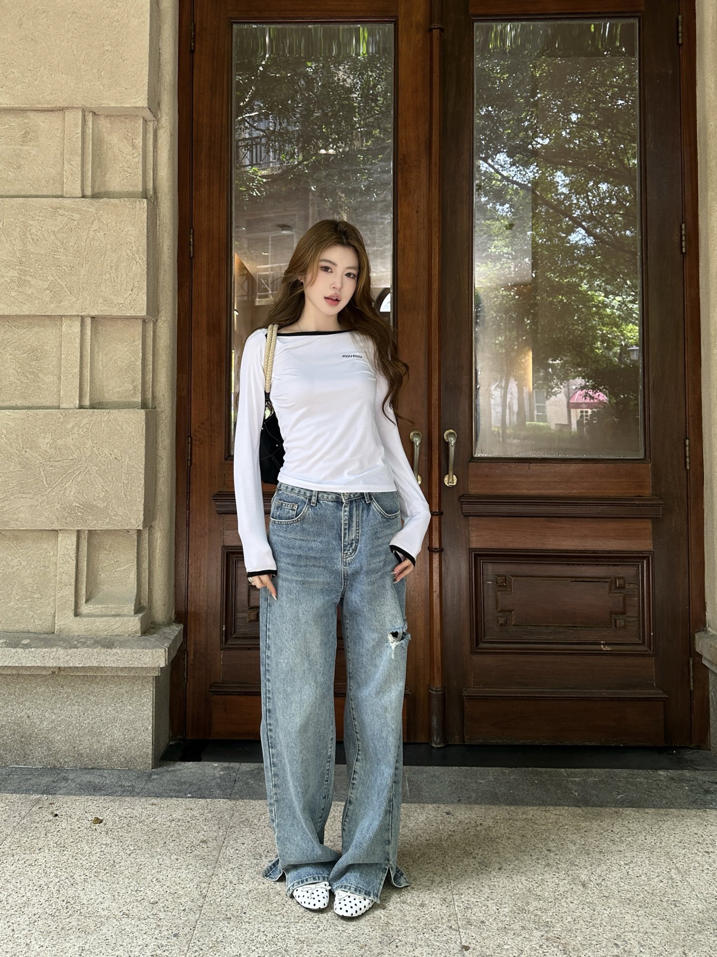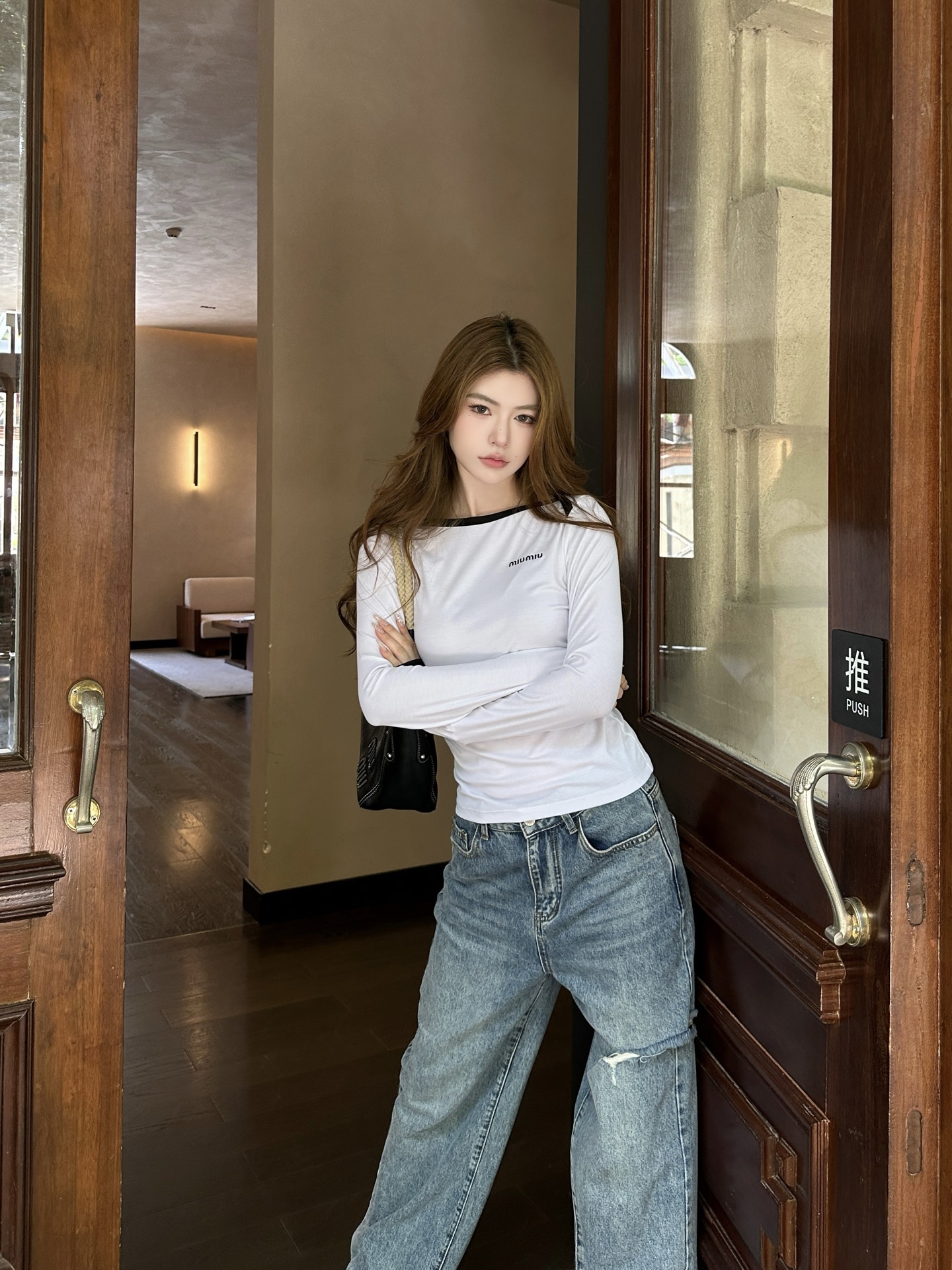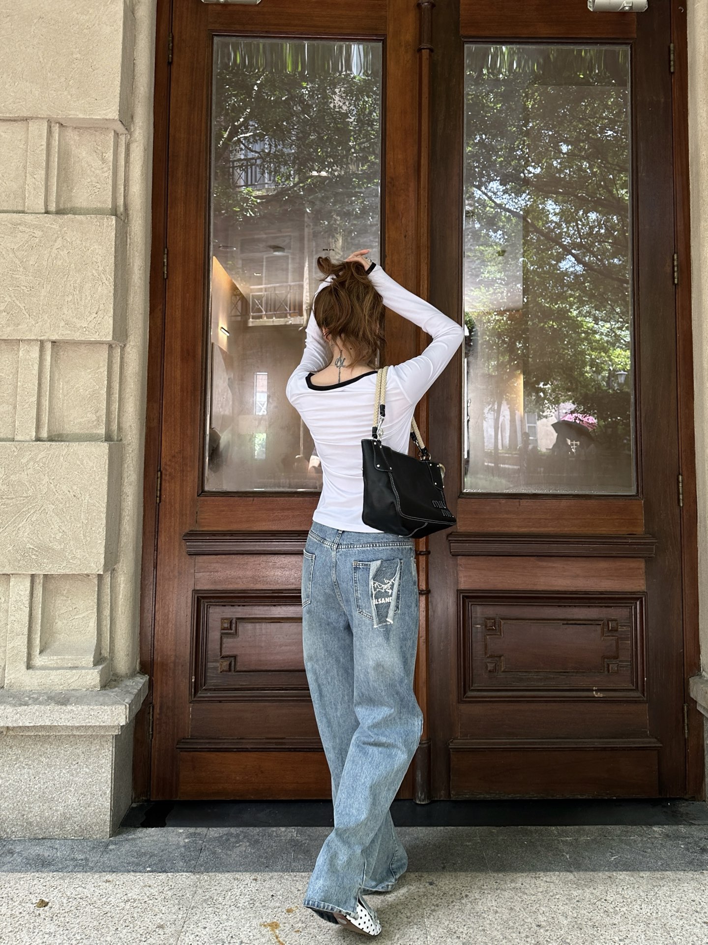 This Miu Miu long-sleeve T-shirt will quickly become a favorite in your wardrobe. Its combination of comfort, quality, and designer flair makes it a must-have for any fashion-conscious individual.