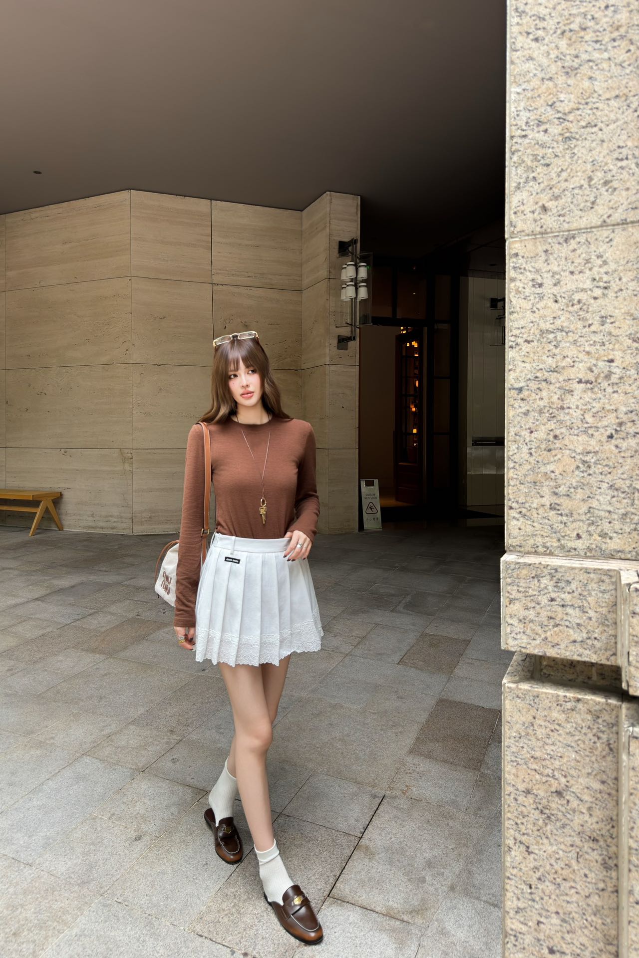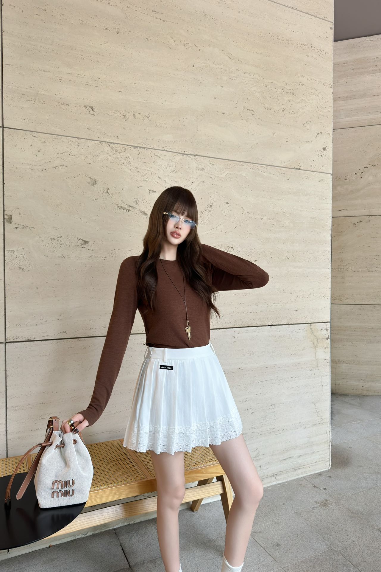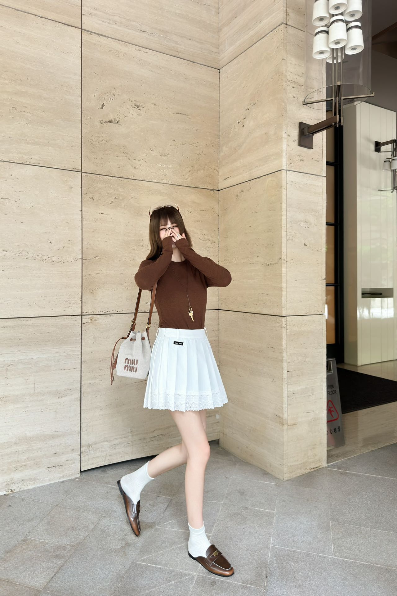 Elevate your wardrobe with the Miu Miu 25FW Early Autumn Collection pleated mini skirt, a must-have for fashion-forward individuals. This skirt combines classic design with modern aesthetics, making it a versatile addition to any outfit.