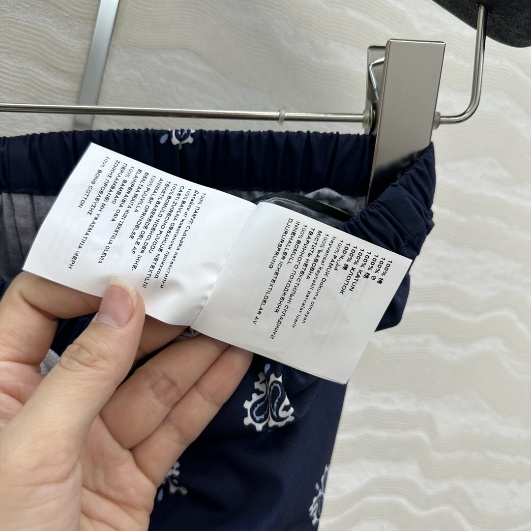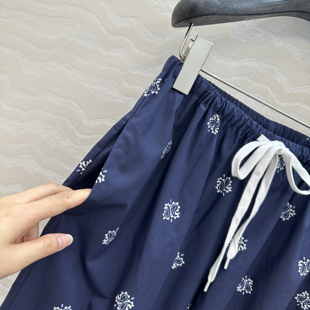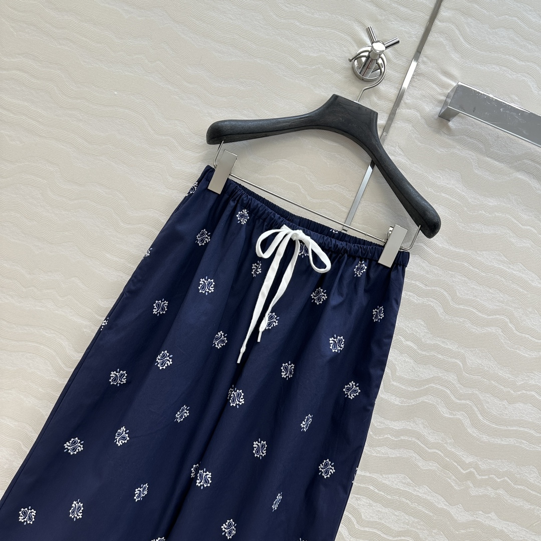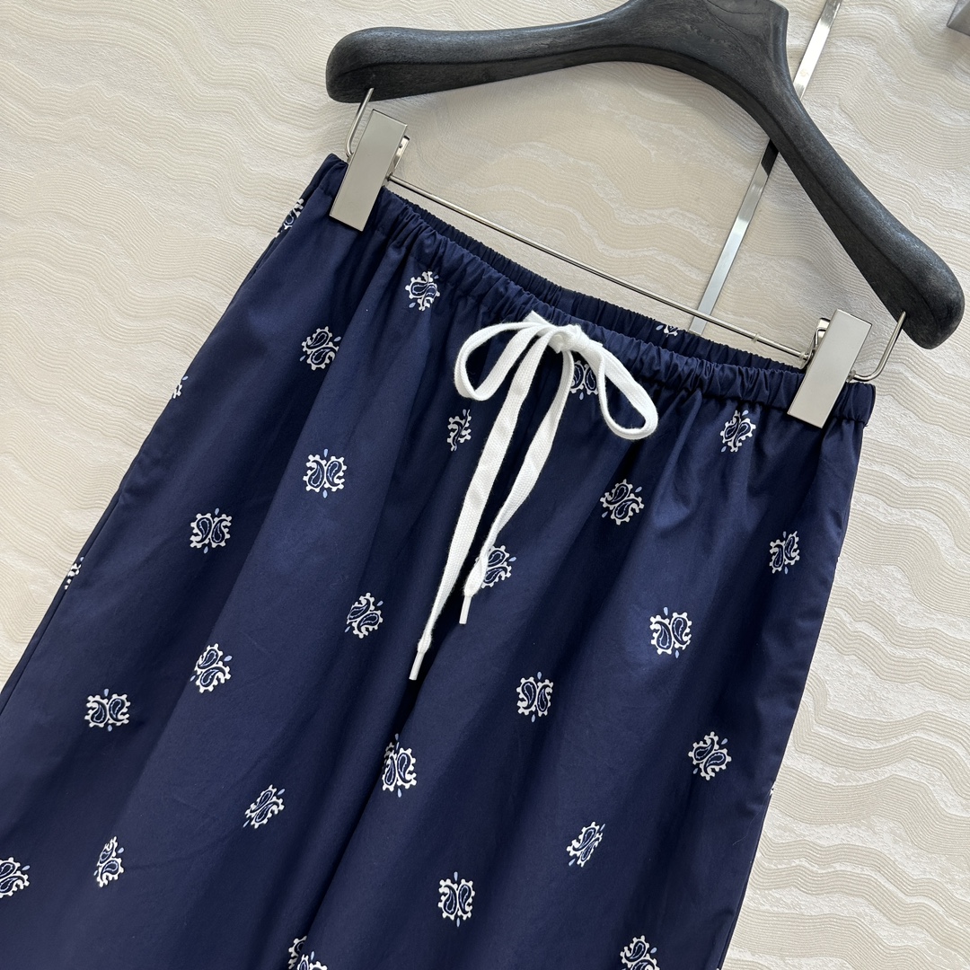 Miu Miu Navy Blue Paisley Print Cropped Pants Elastic Waist Cotton