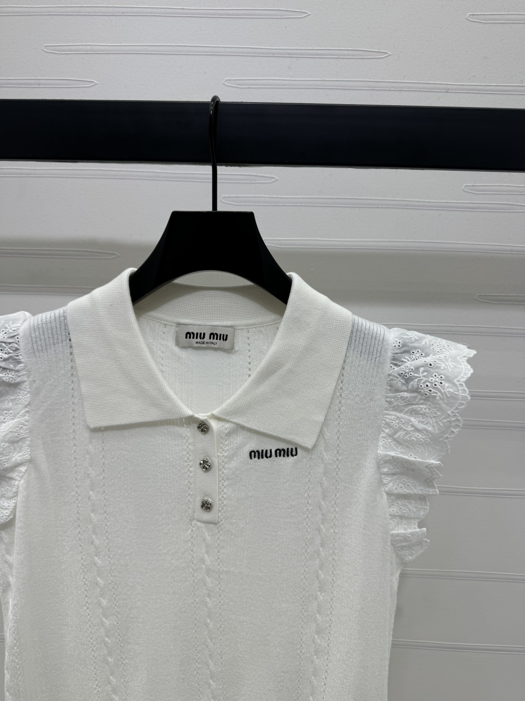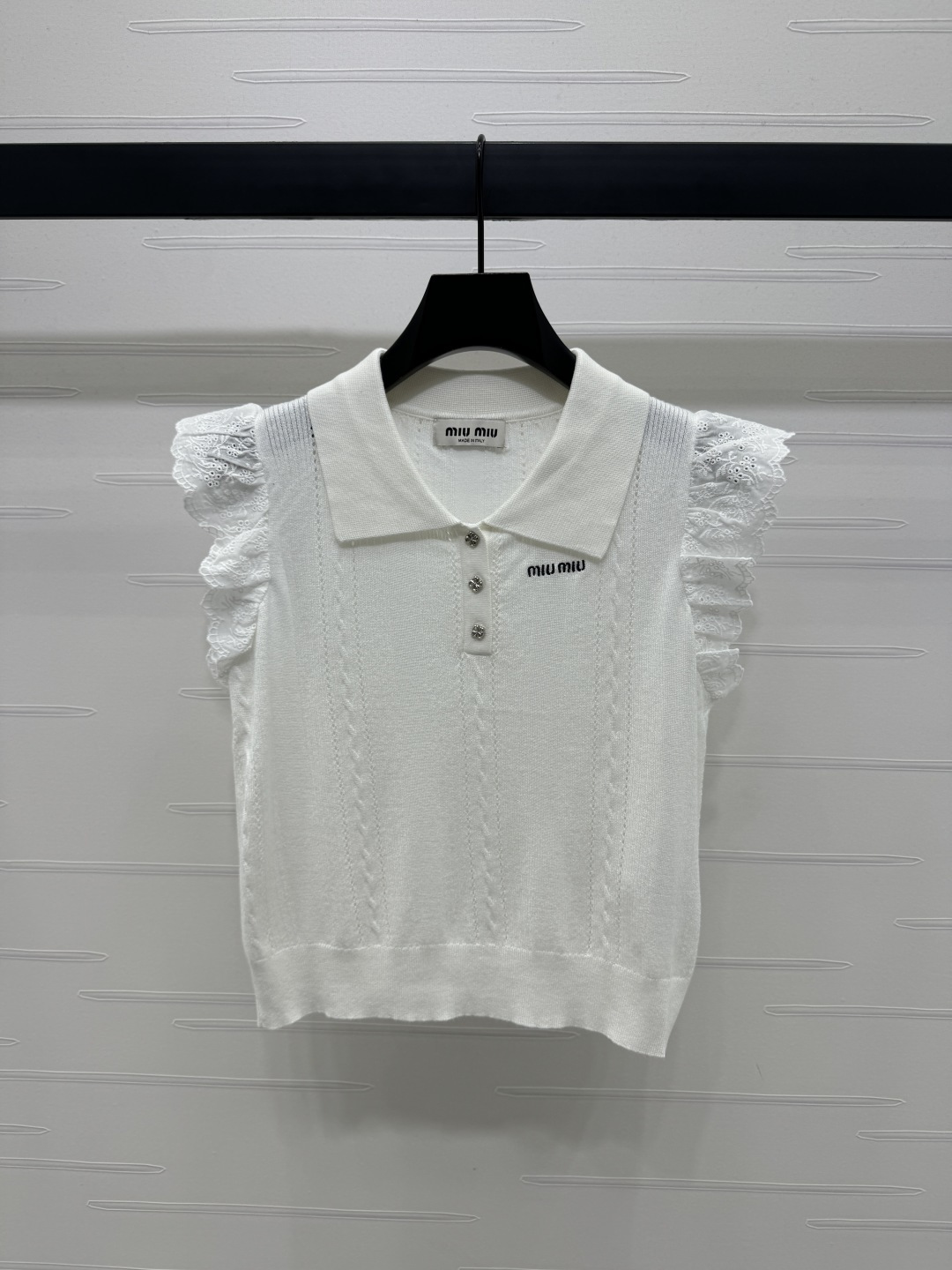 Miu Miu Sleeveless Knit Top with Ruffle Detail | Spring/Summer 2025