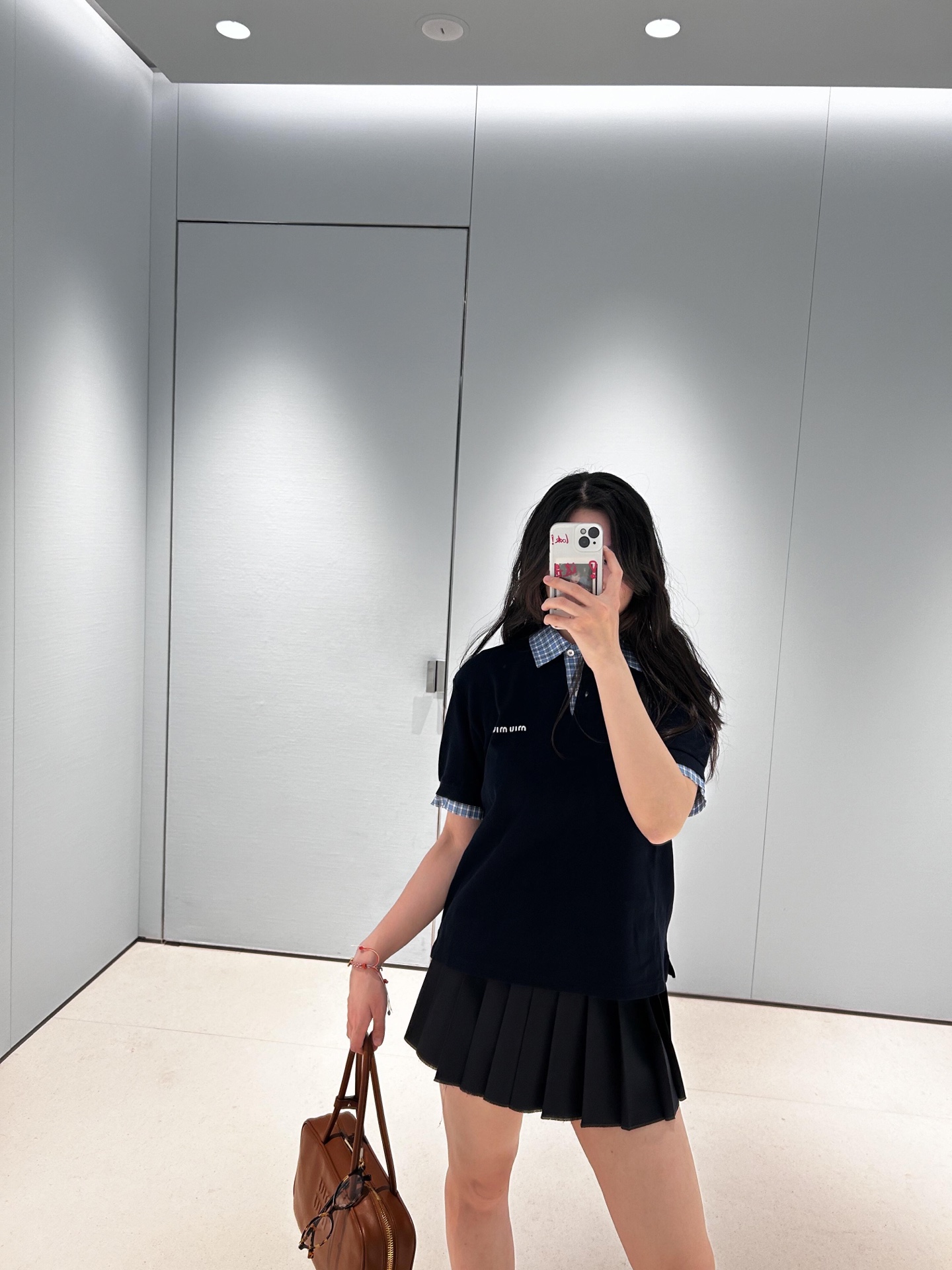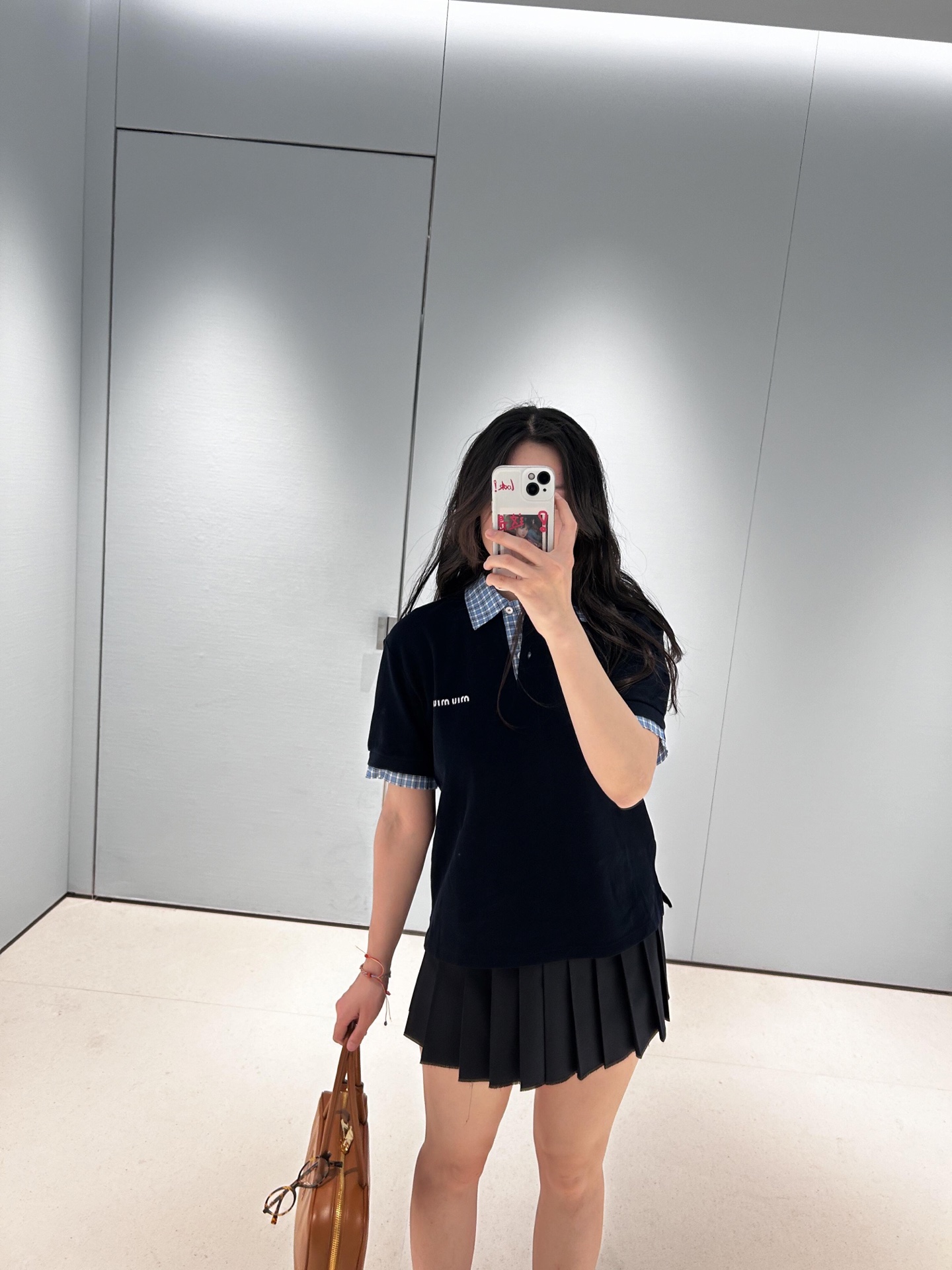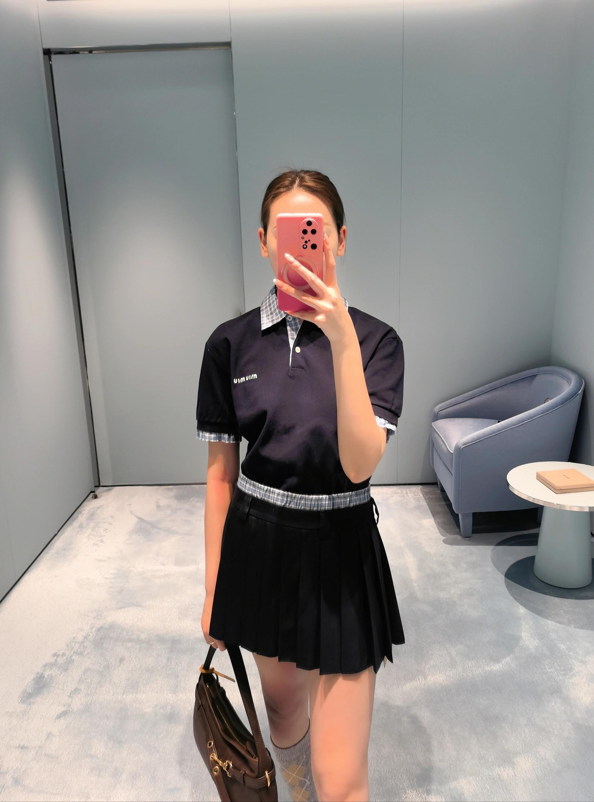 This Miu Miu short-sleeve polo shirt is a must-have for the modern woman. With its unique checkered pattern and comfortable fit, it's both stylish and practical.