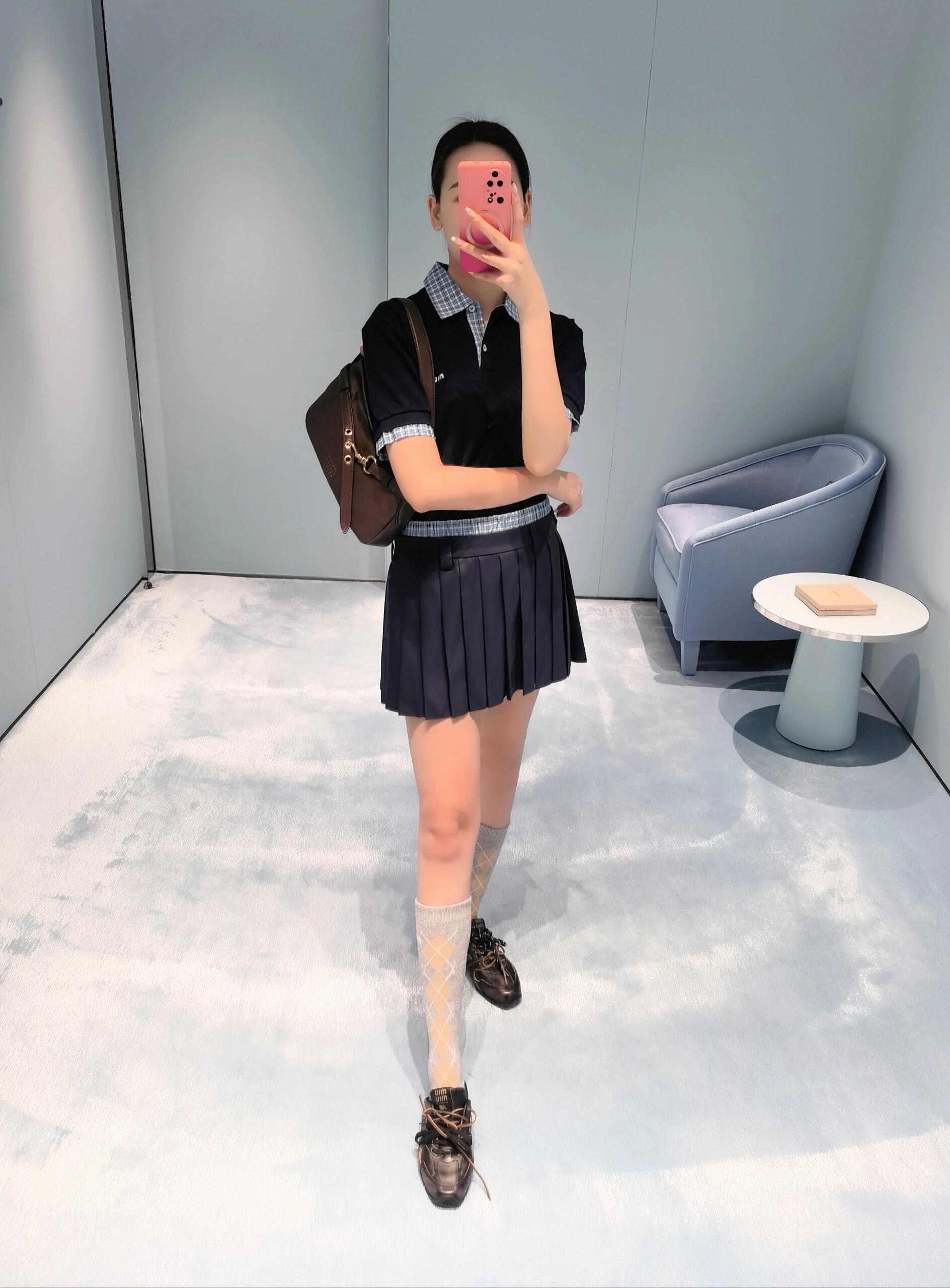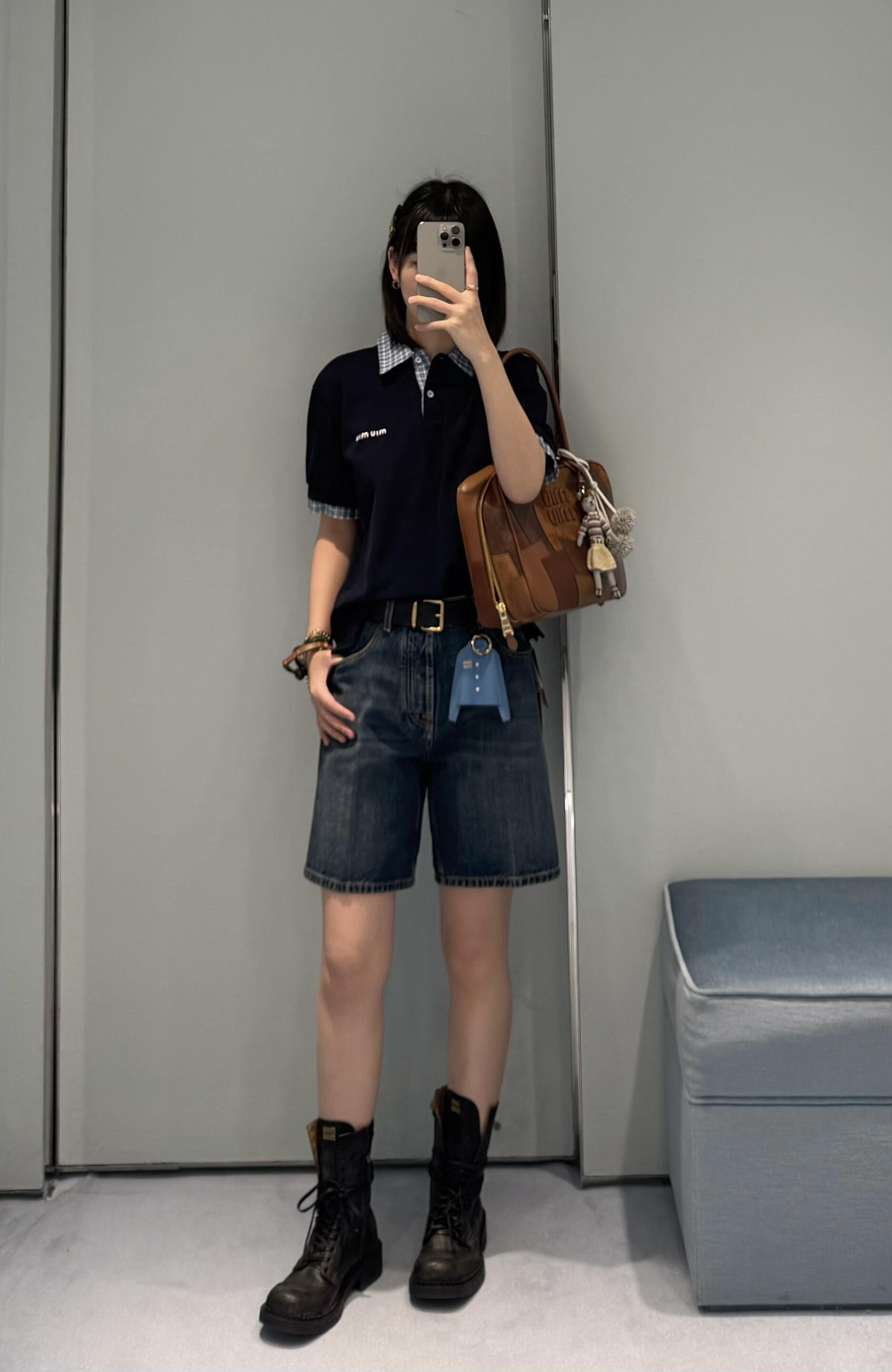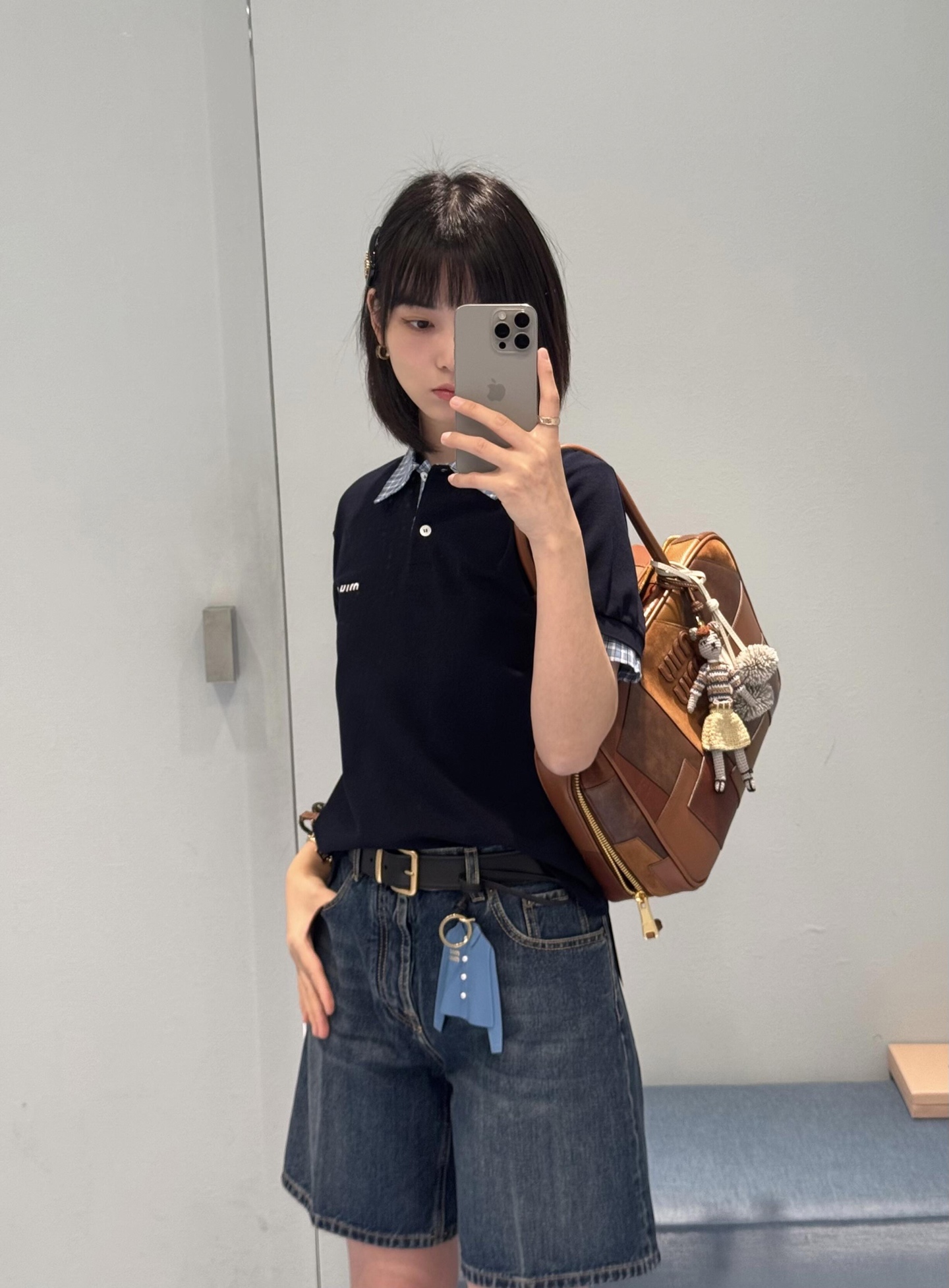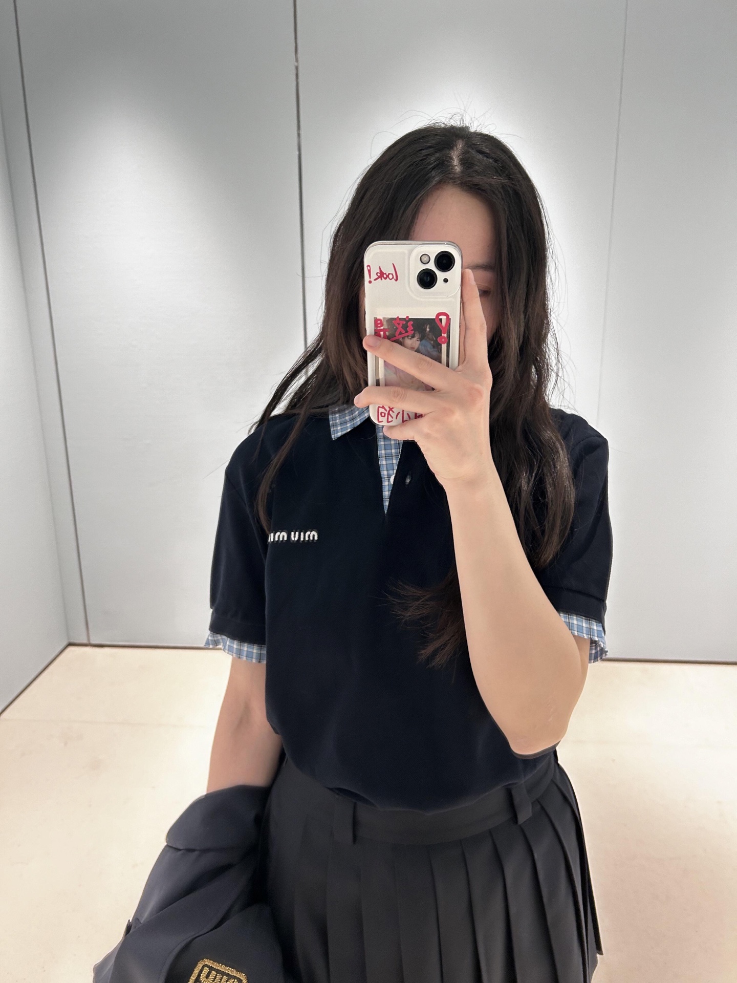This Miu Miu short-sleeve polo shirt is a must-have for the modern woman. With its unique checkered pattern and comfortable fit, it's both stylish and practical.