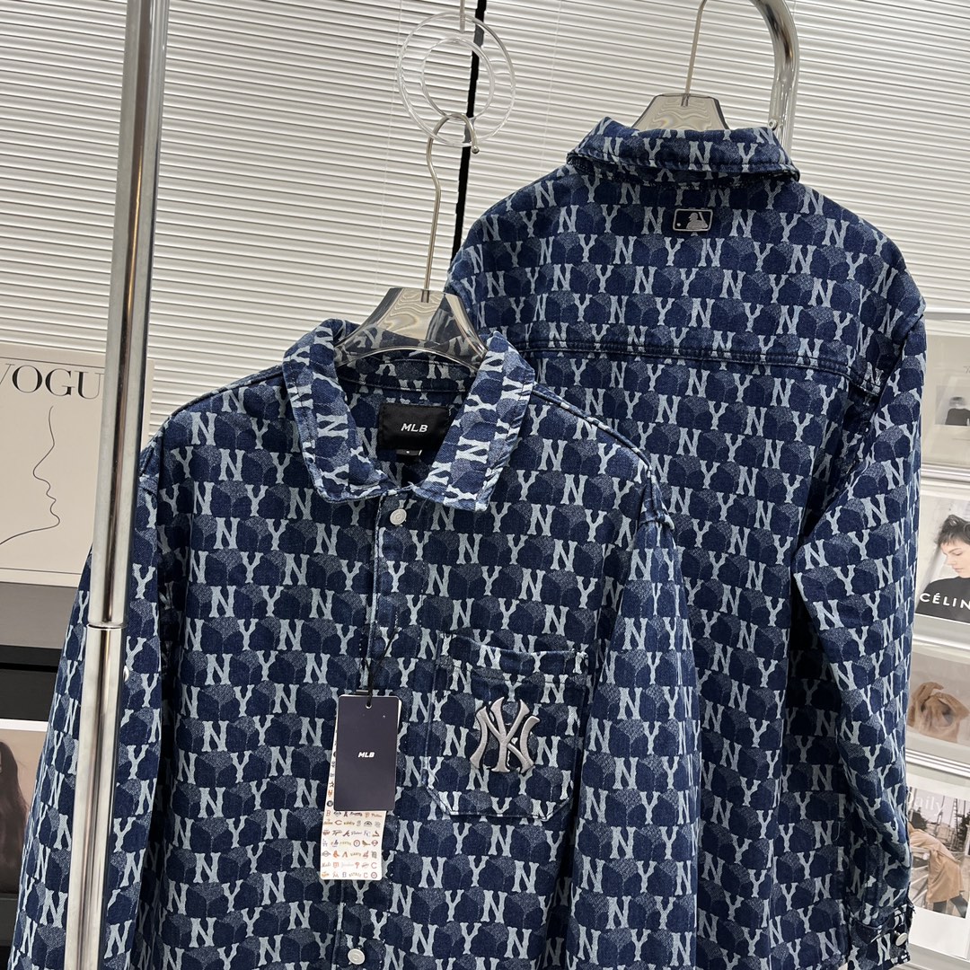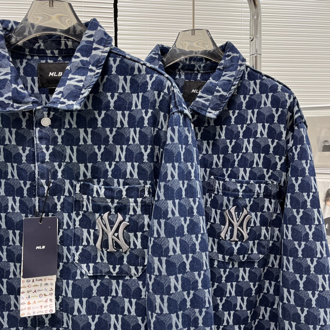 MLB Vintage Floral Denim Shirt - Stylish Unisex Casual Loose Fit Outerwear