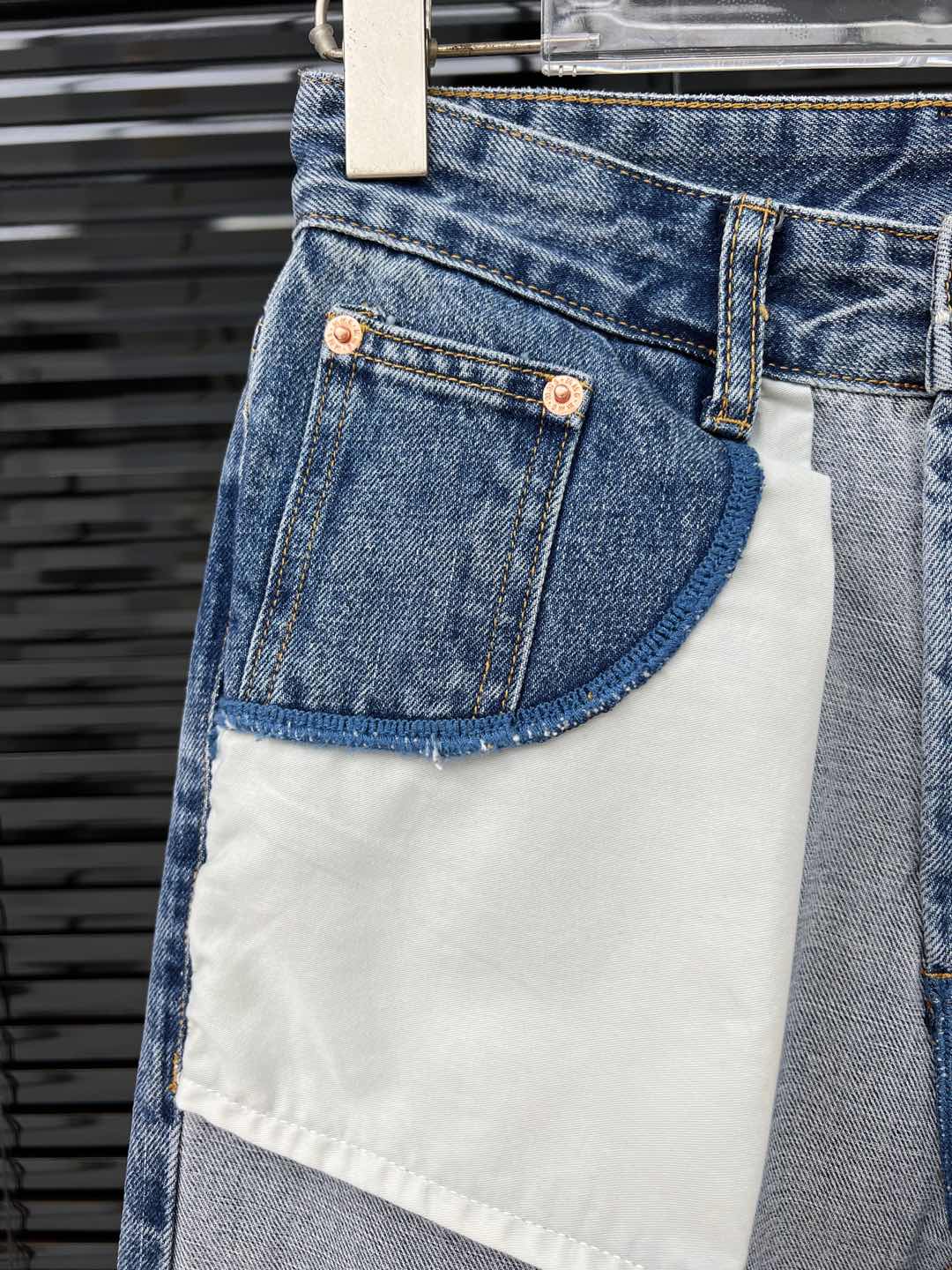 Elevate your style with MM6 Maison Margiela jeans, featuring a unique color block design and a flattering straight leg fit.