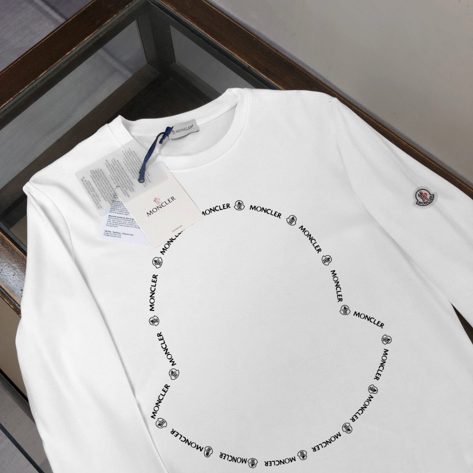 Moncler long sleeve T-shirt made from 240g breathable cotton. Soft, comfy, and durable - no shrinking or pilling. Great for layering or wearing on its own.