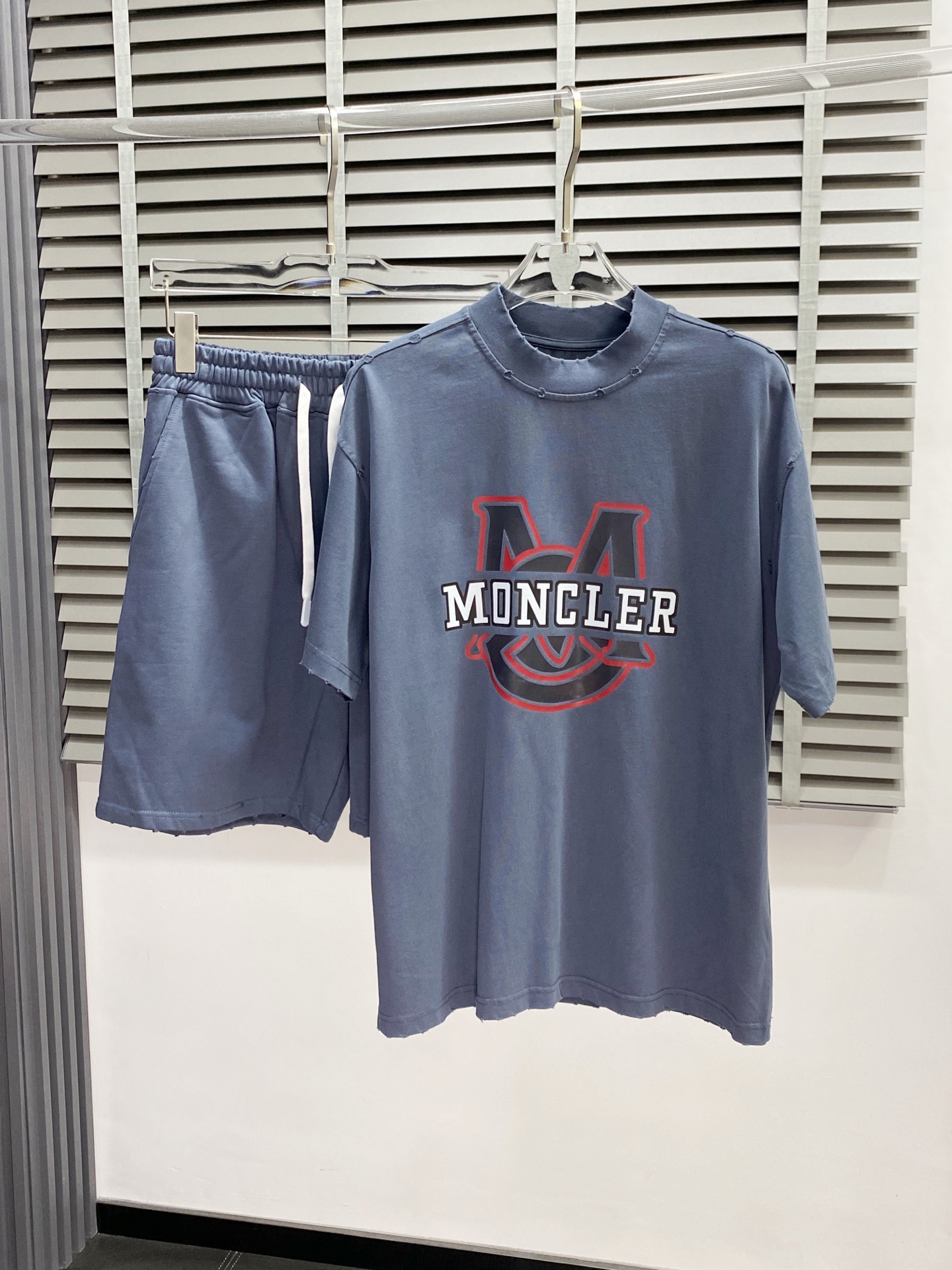 Elevate your style with this Moncler set. Crafted from premium fabric, this set includes a stylish t-shirt and shorts, perfect for a casual look.