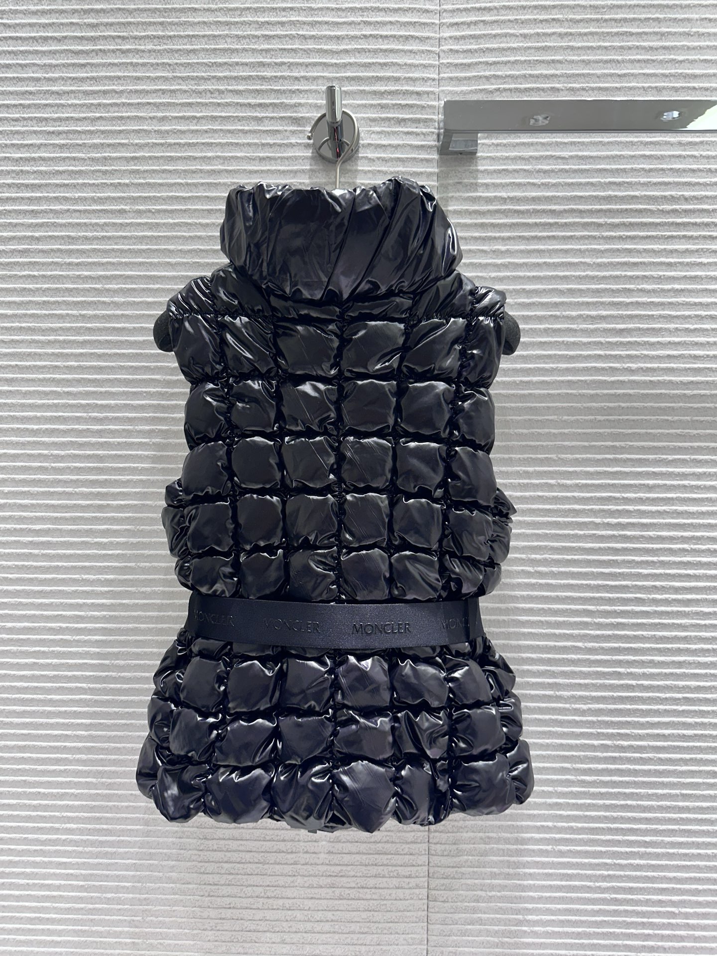 Moncler Women's Black Quilted Down Vest with Detachable Belt