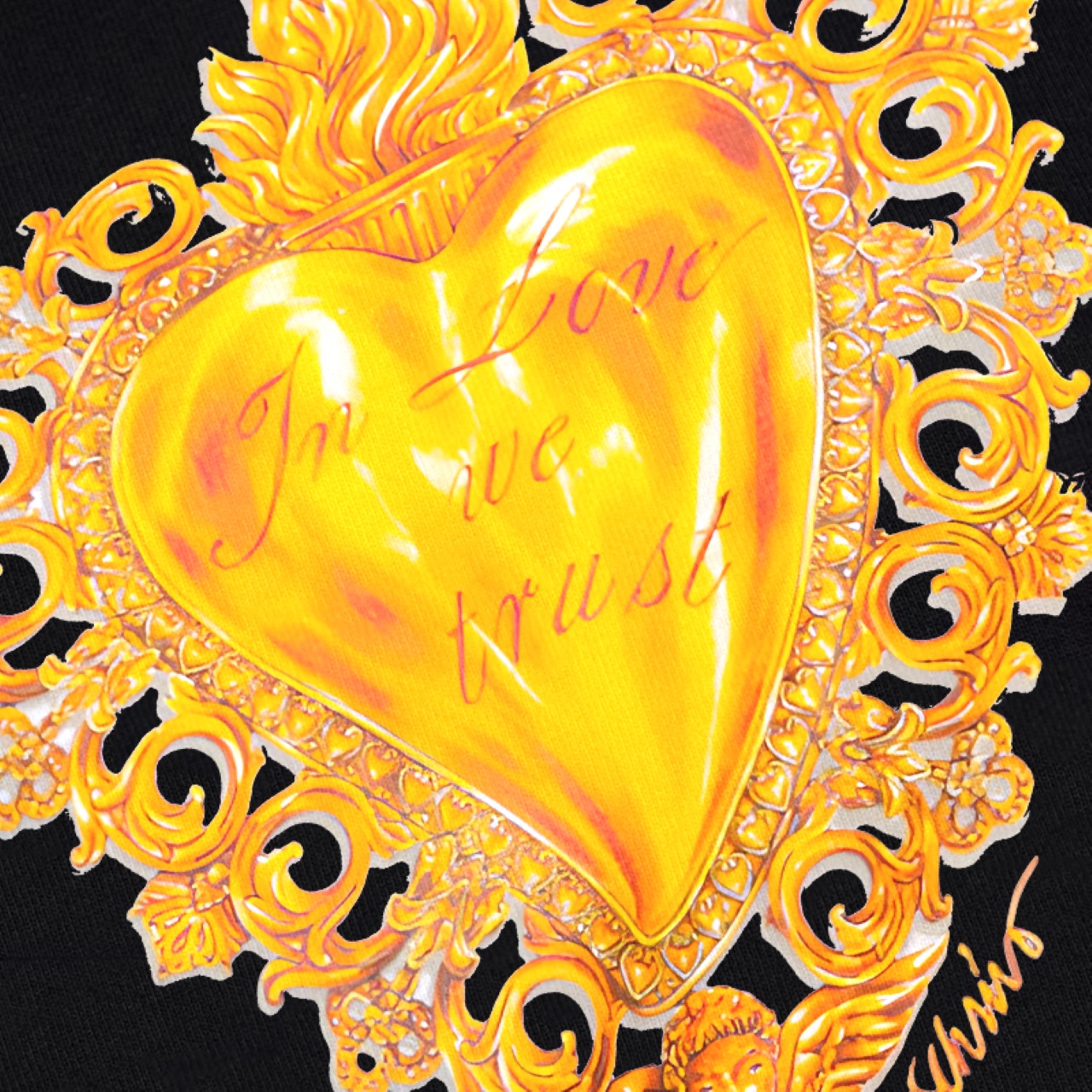 This Moschino sweatshirt combines comfort and style. It's designed with a classic round neck and features a distinctive heart graphic print that enhances its visual appeal.