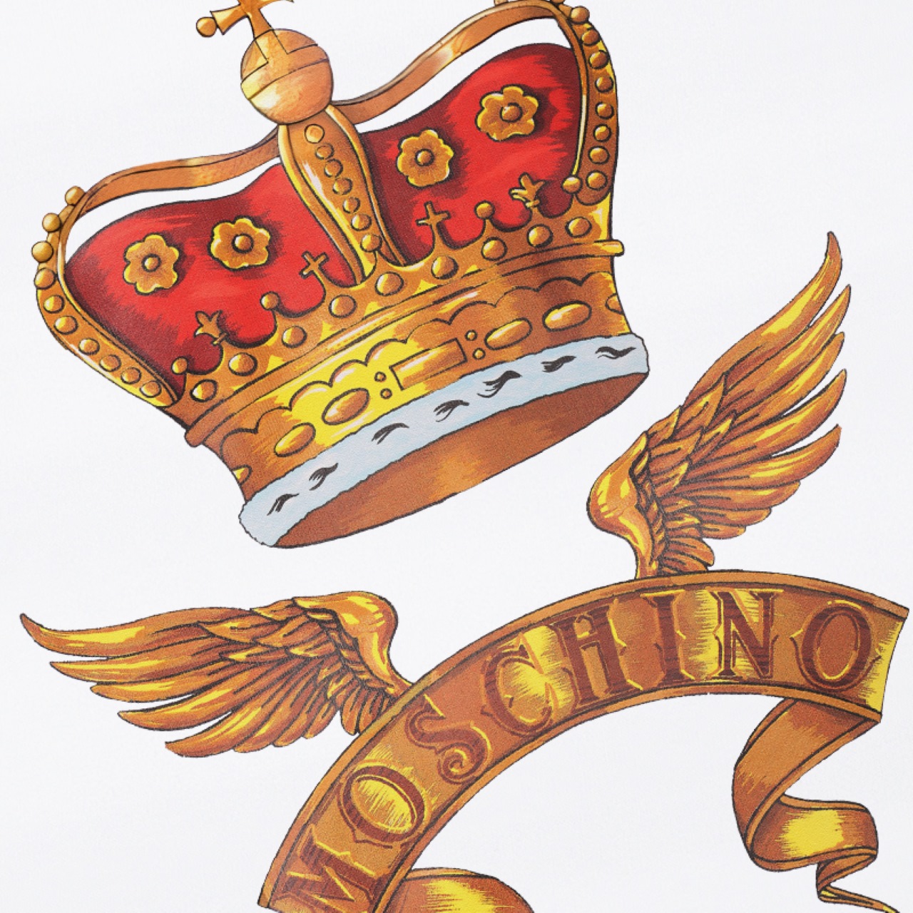 Experience luxury with this Moschino sweatshirt. Crafted from breathable cotton terry, it features a unique crown print and is designed for ultimate comfort.