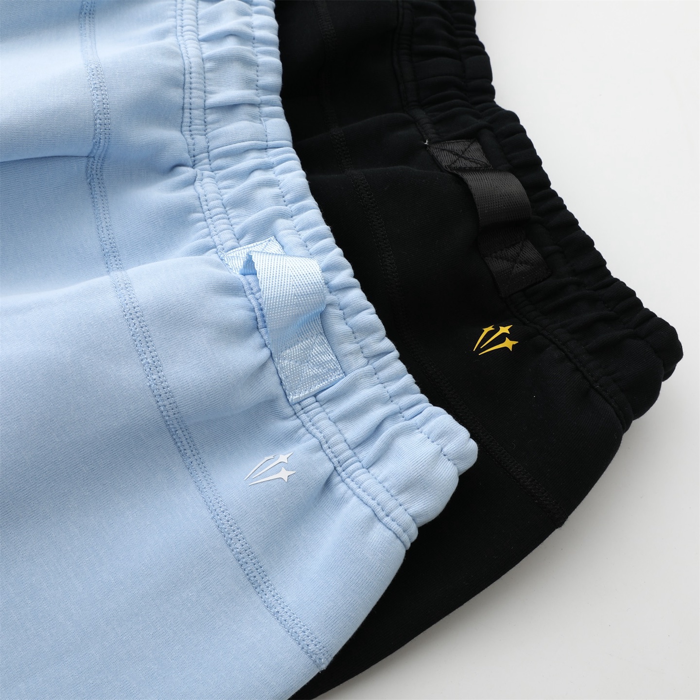 - Pants with an elastic waistband and adjustable drawstrings