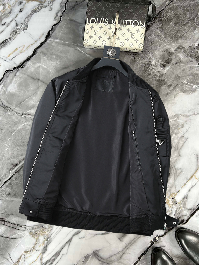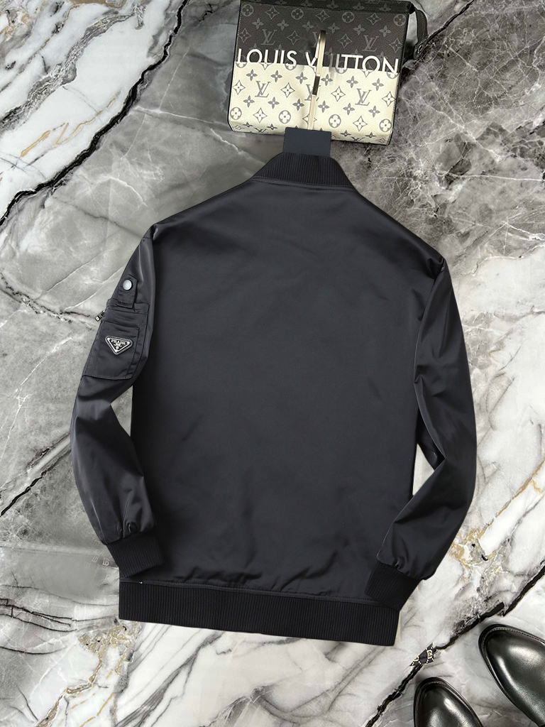 Elevate your style with this Prada 2025SS men's black jacket. Premium quality, breathable fabric, and impeccable detailing for a sophisticated look.