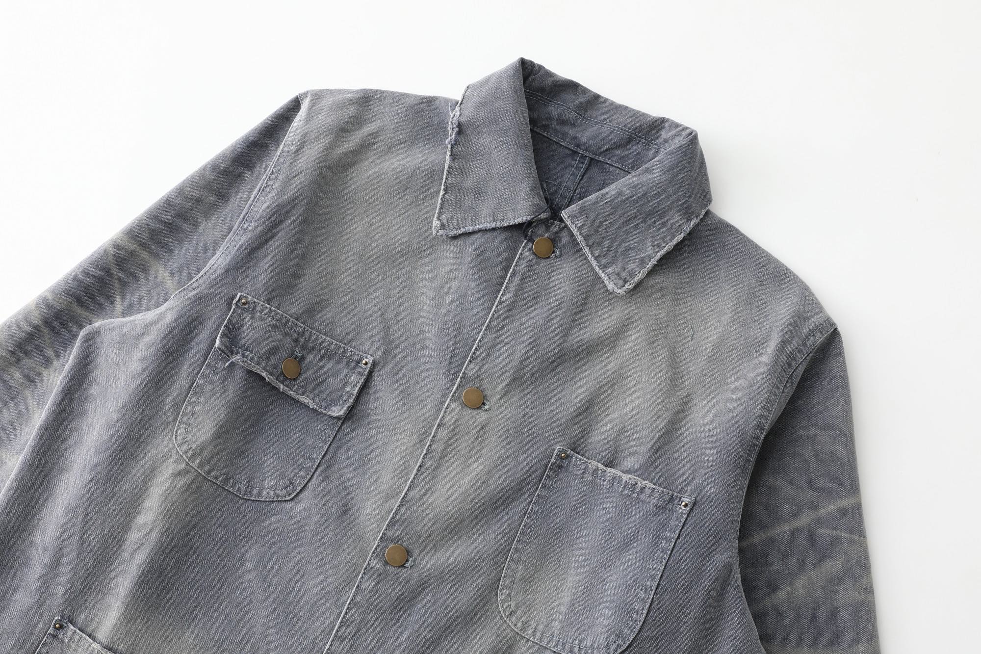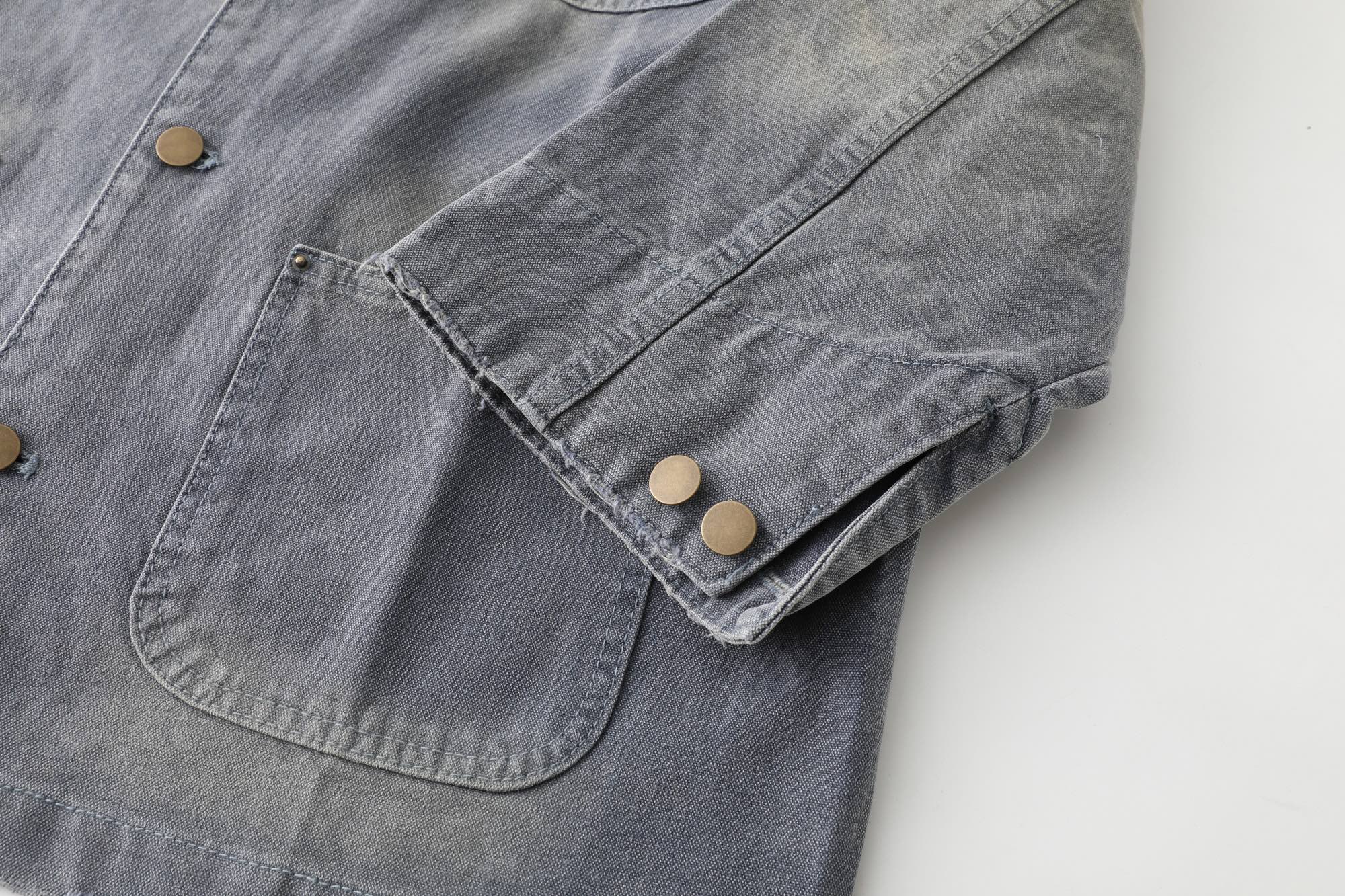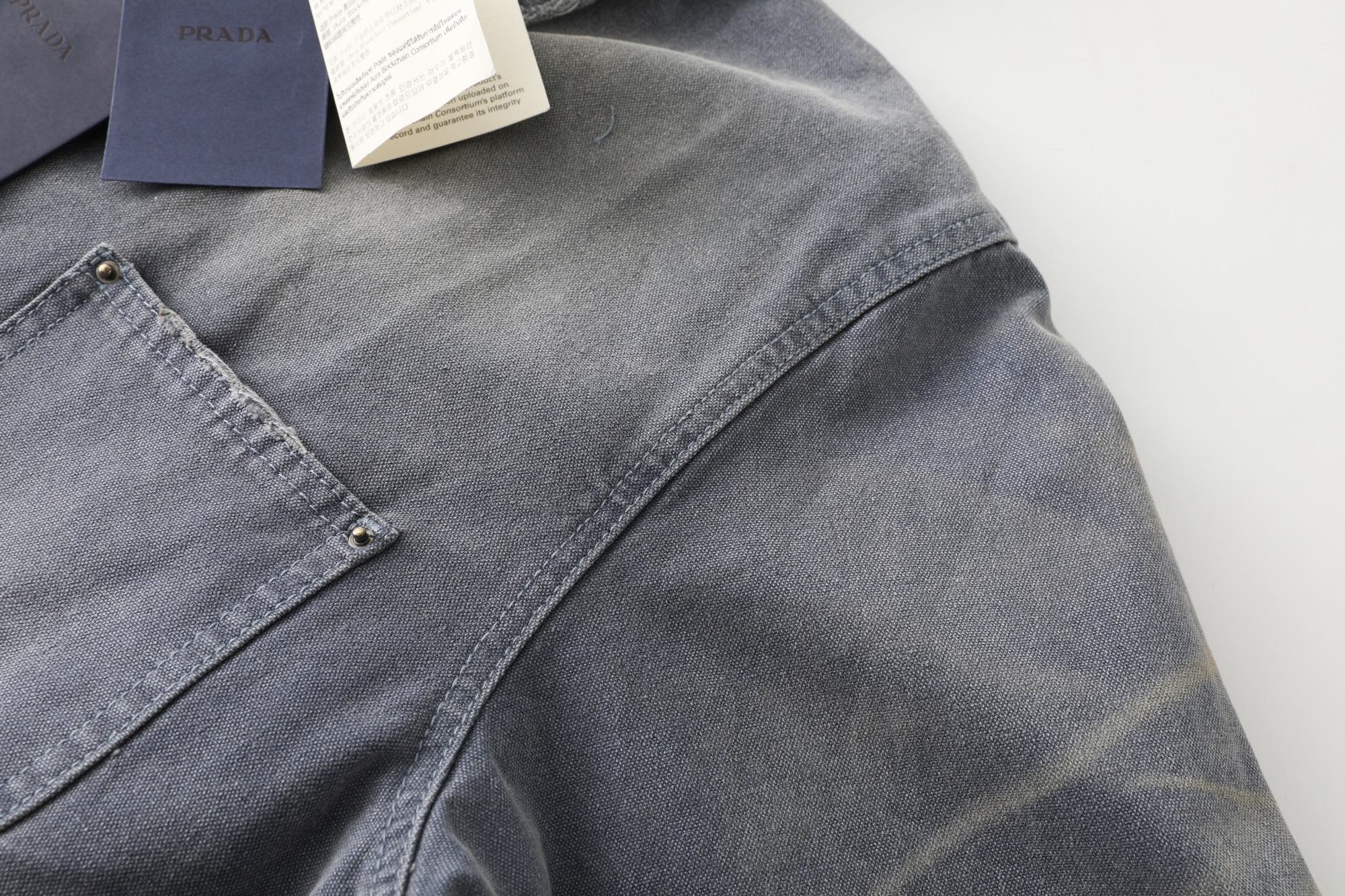 Prada Distressed Denim Workwear Jacket – Washed Canvas, Vintage Aesthetic