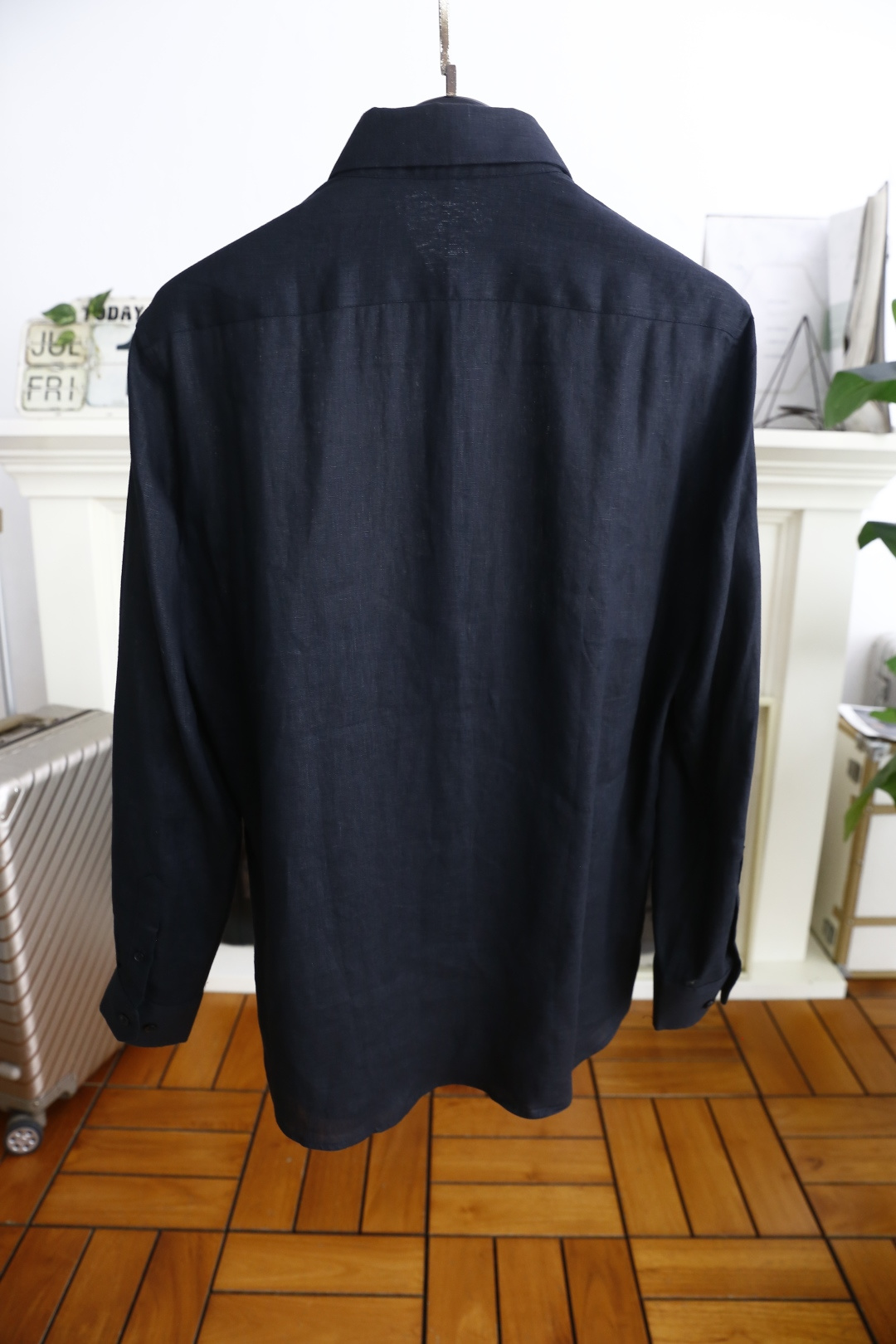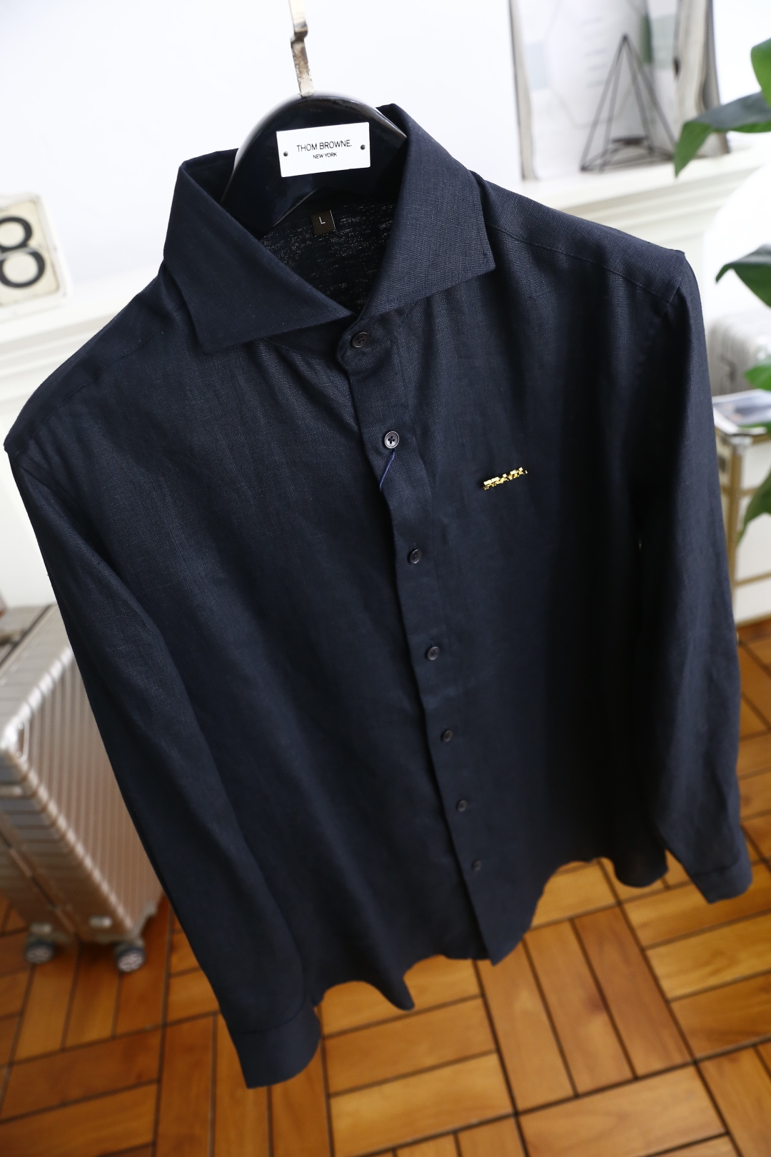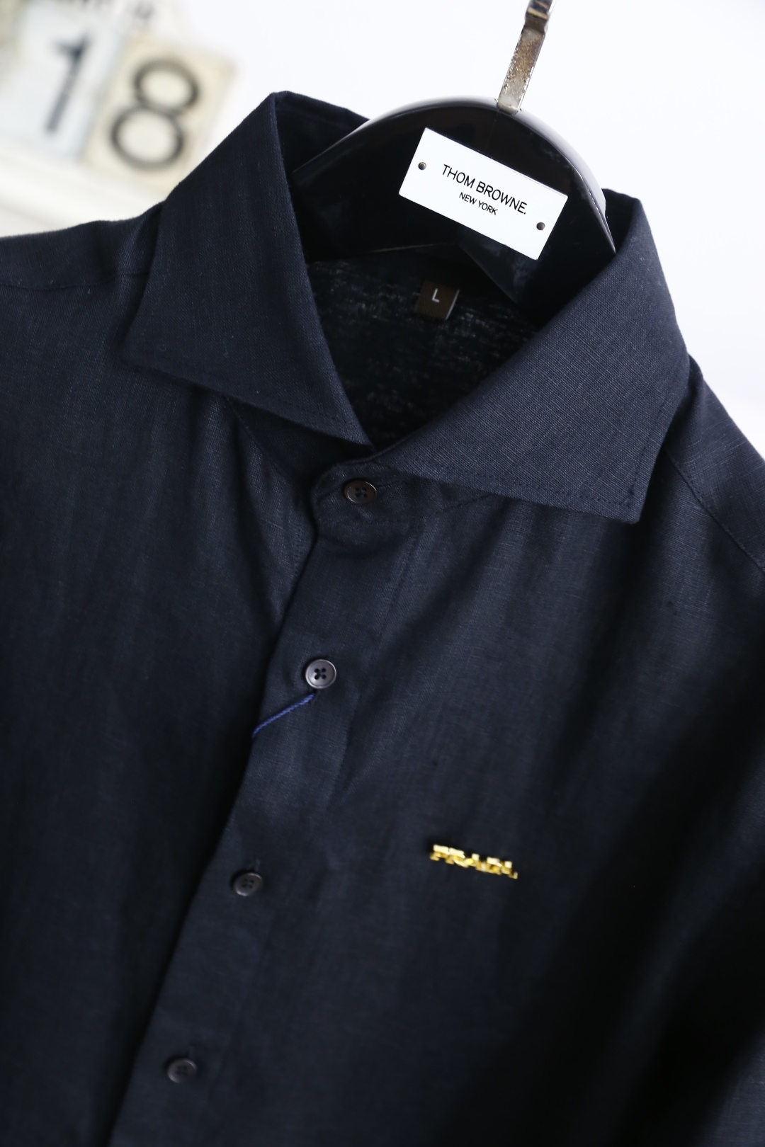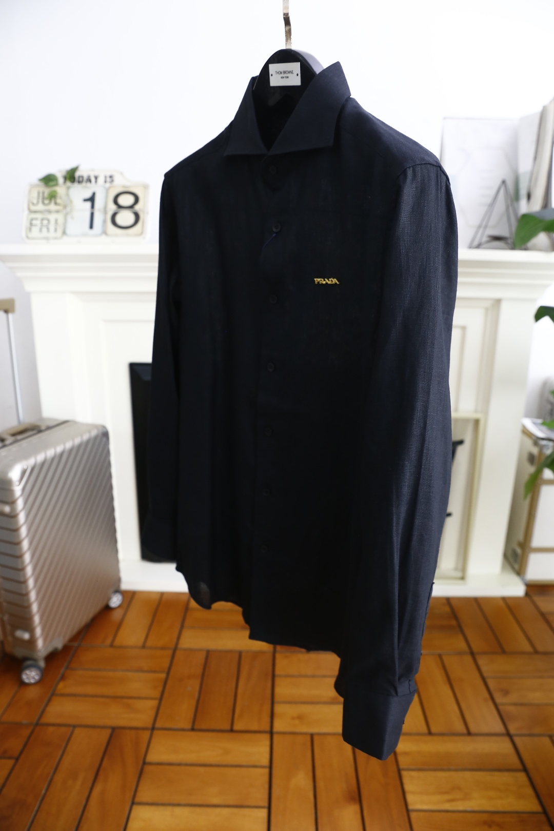 Elevate your style with this Prada men's long sleeve shirt. Crafted from comfortable cotton linen, perfect for business or casual wear.