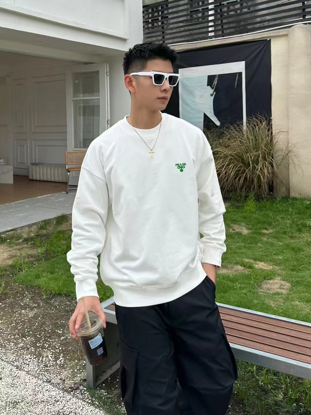 This premium Prada crewneck sweatshirt is the epitome of luxury casual wear. Made with meticulous attention to detail, this piece offers both comfort and high fashion appeal.