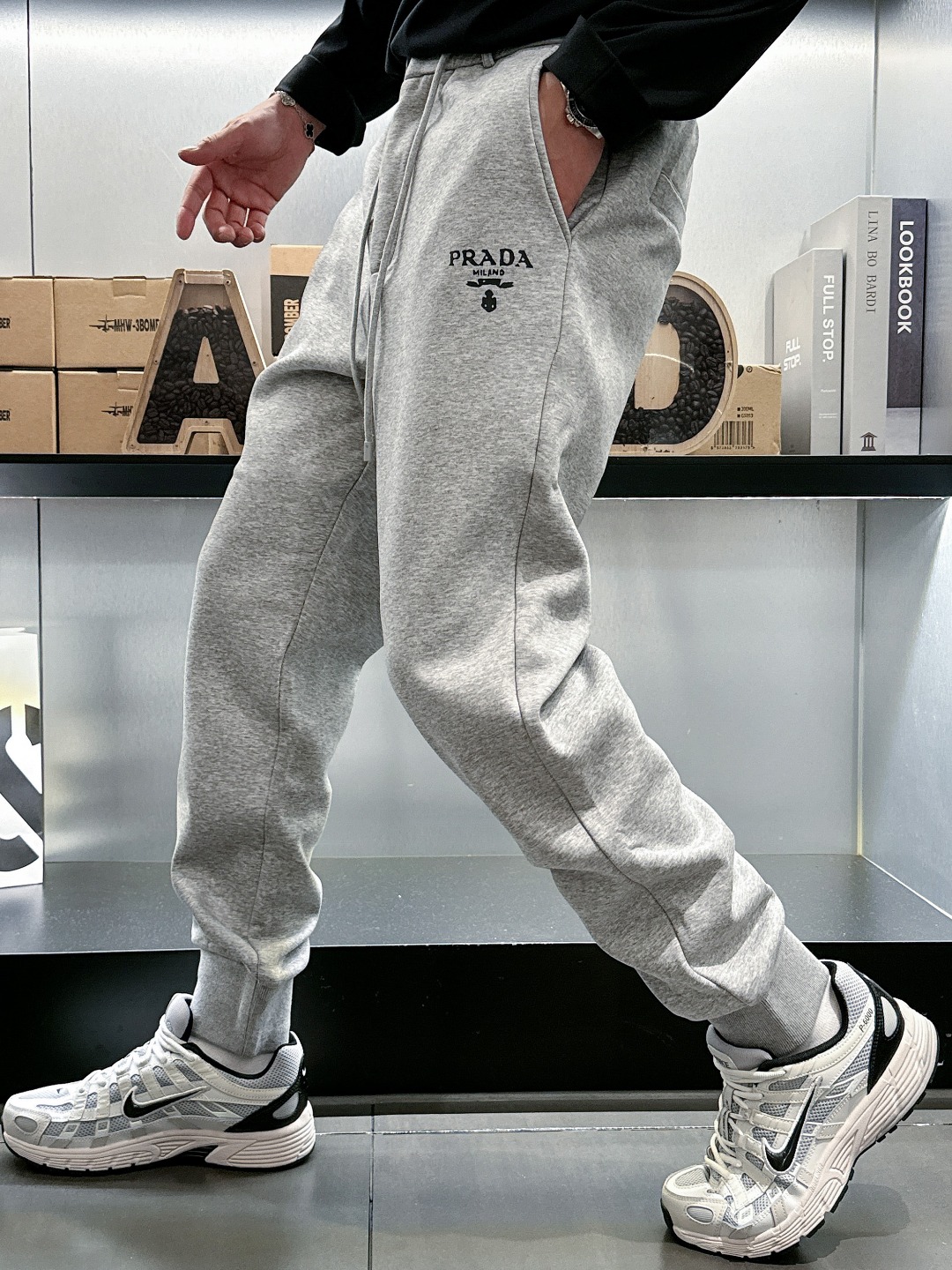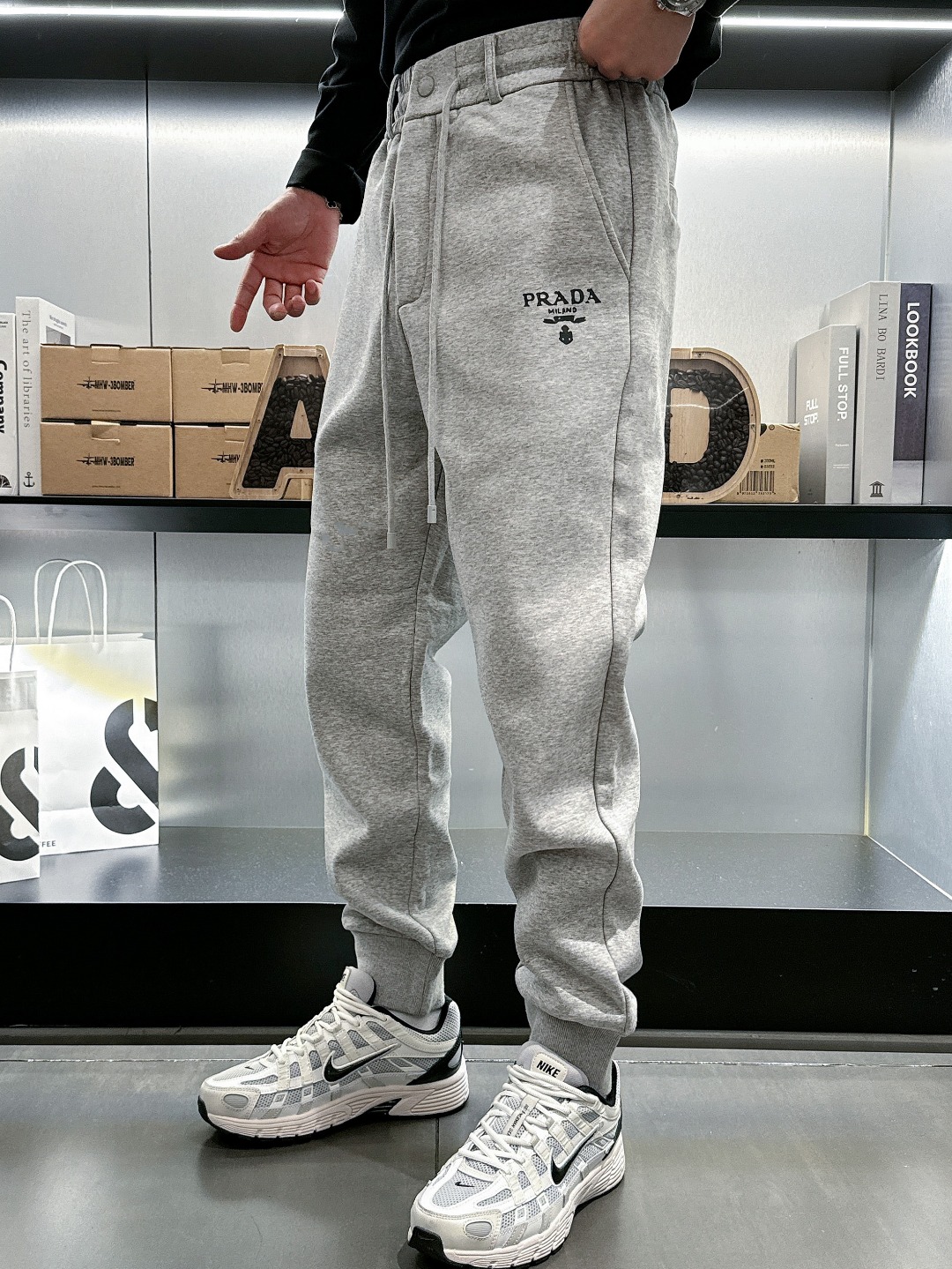 Prada Milano Grey Fleece Lined Joggers | Drawstring Waist | Slim Fit