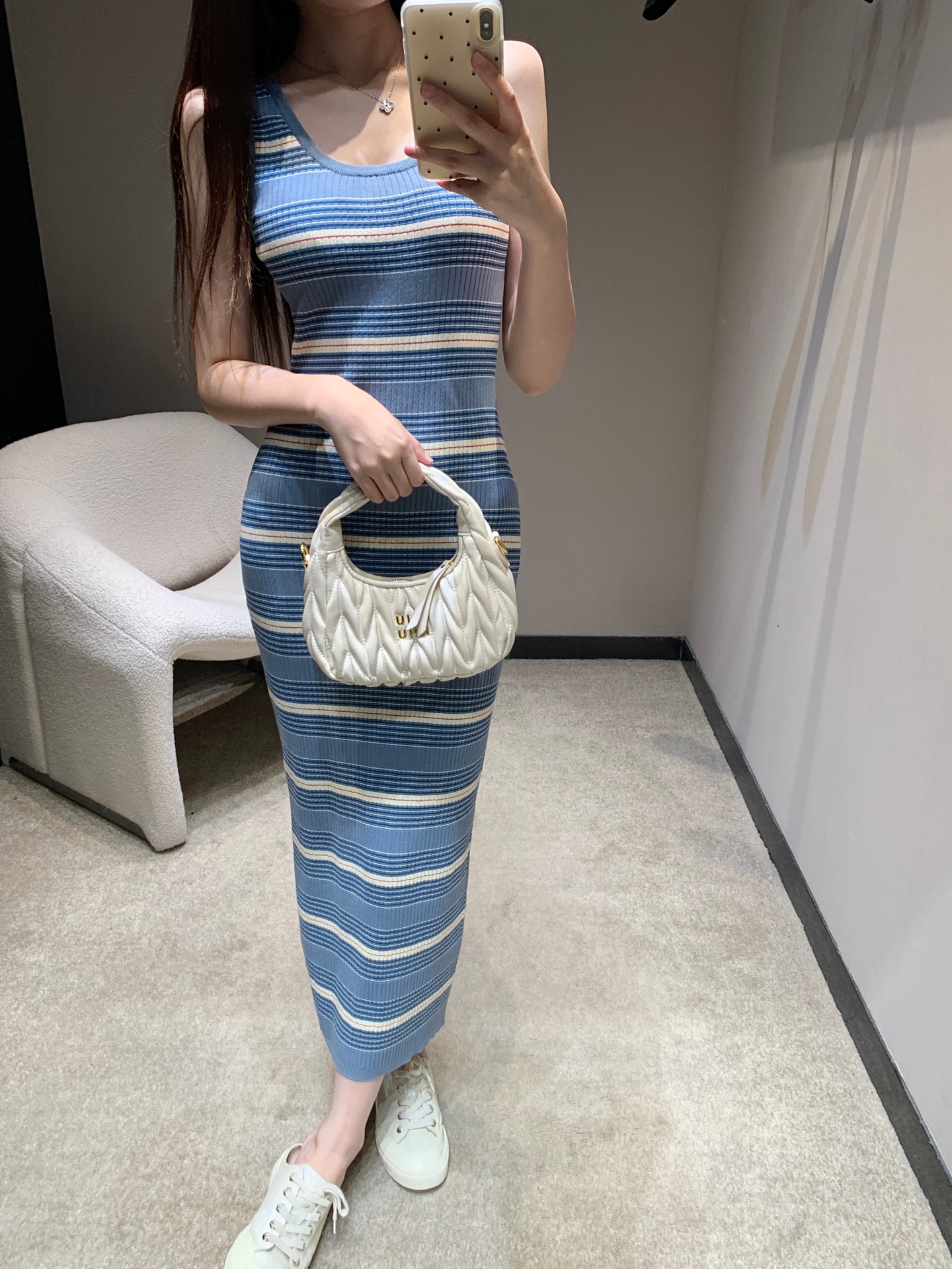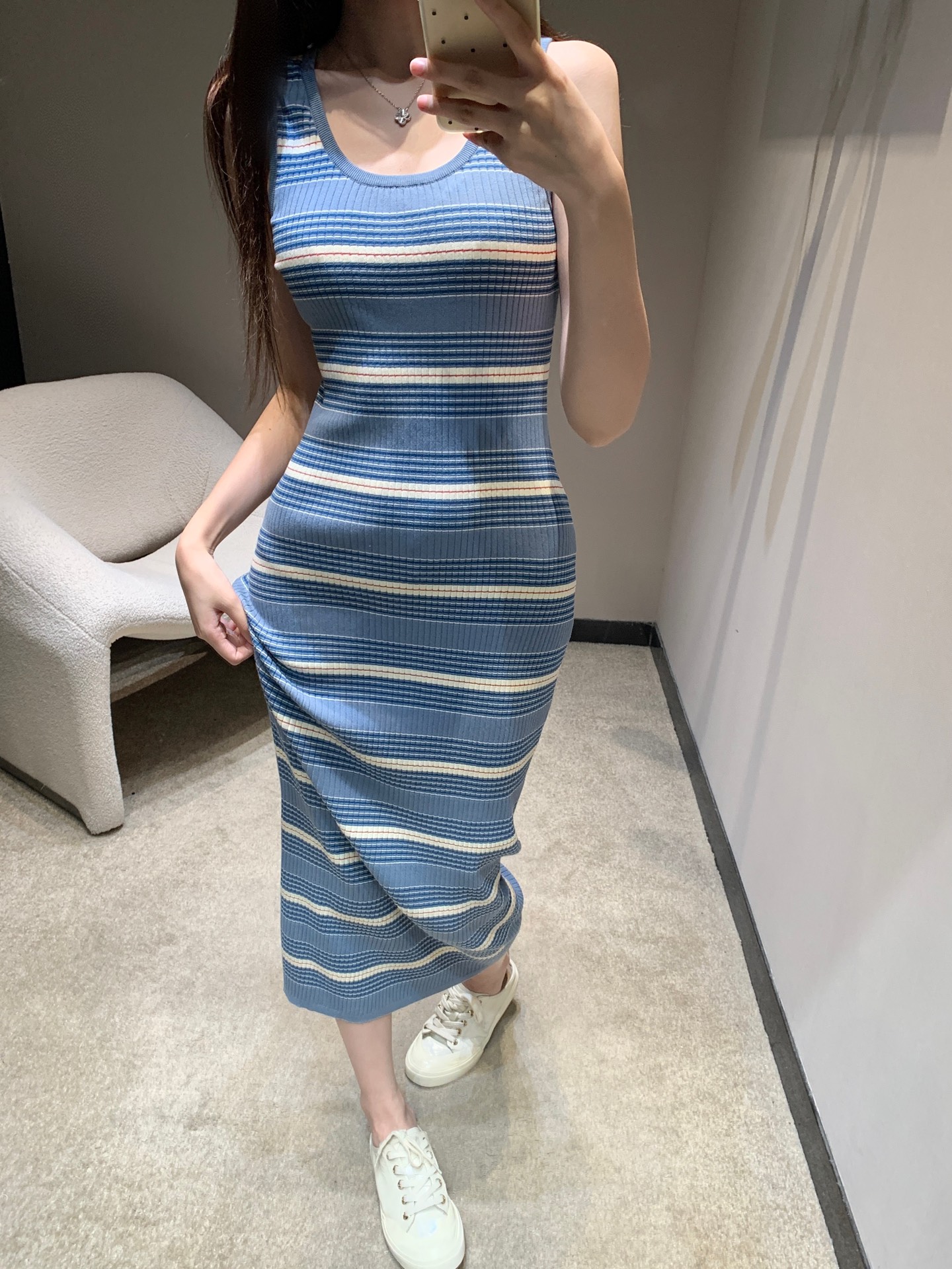 Prada Striped Ribbed Knit Sleeveless Midi Dress | Summer Essential