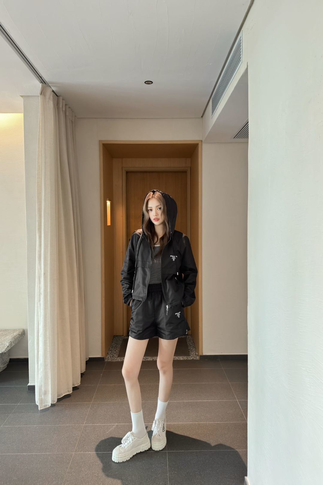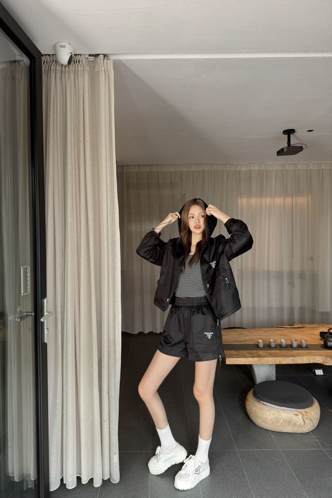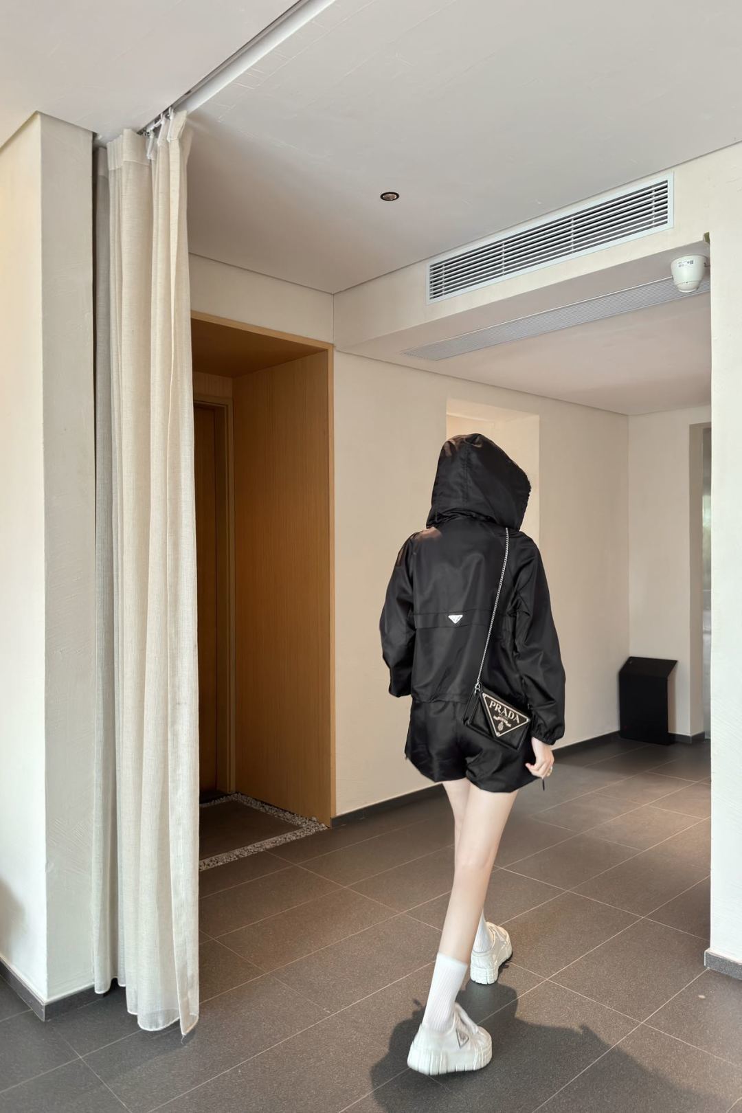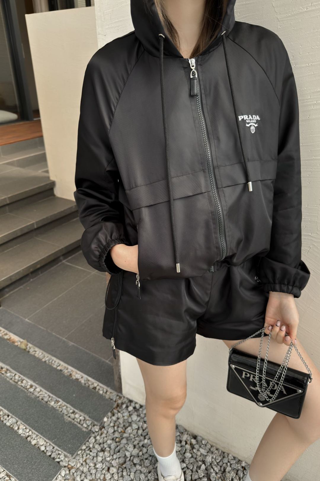 Prada Women's Nylon Hooded Jacket and Shorts Set - Comfortable and Stylish