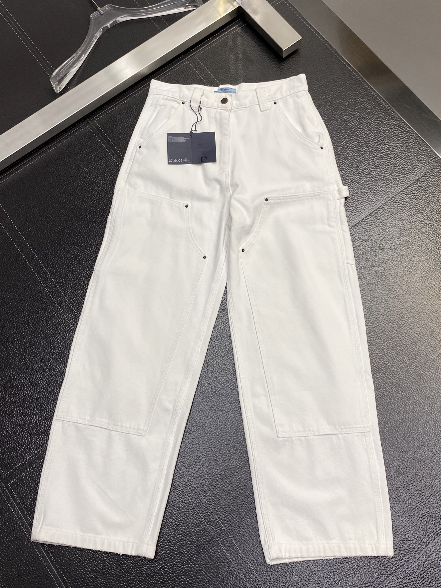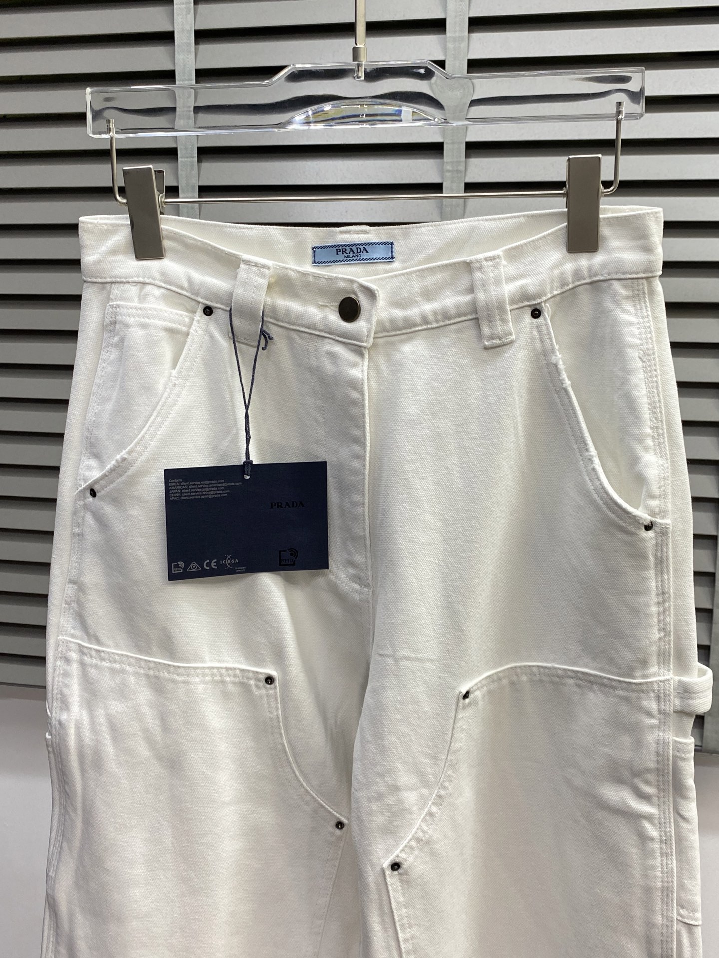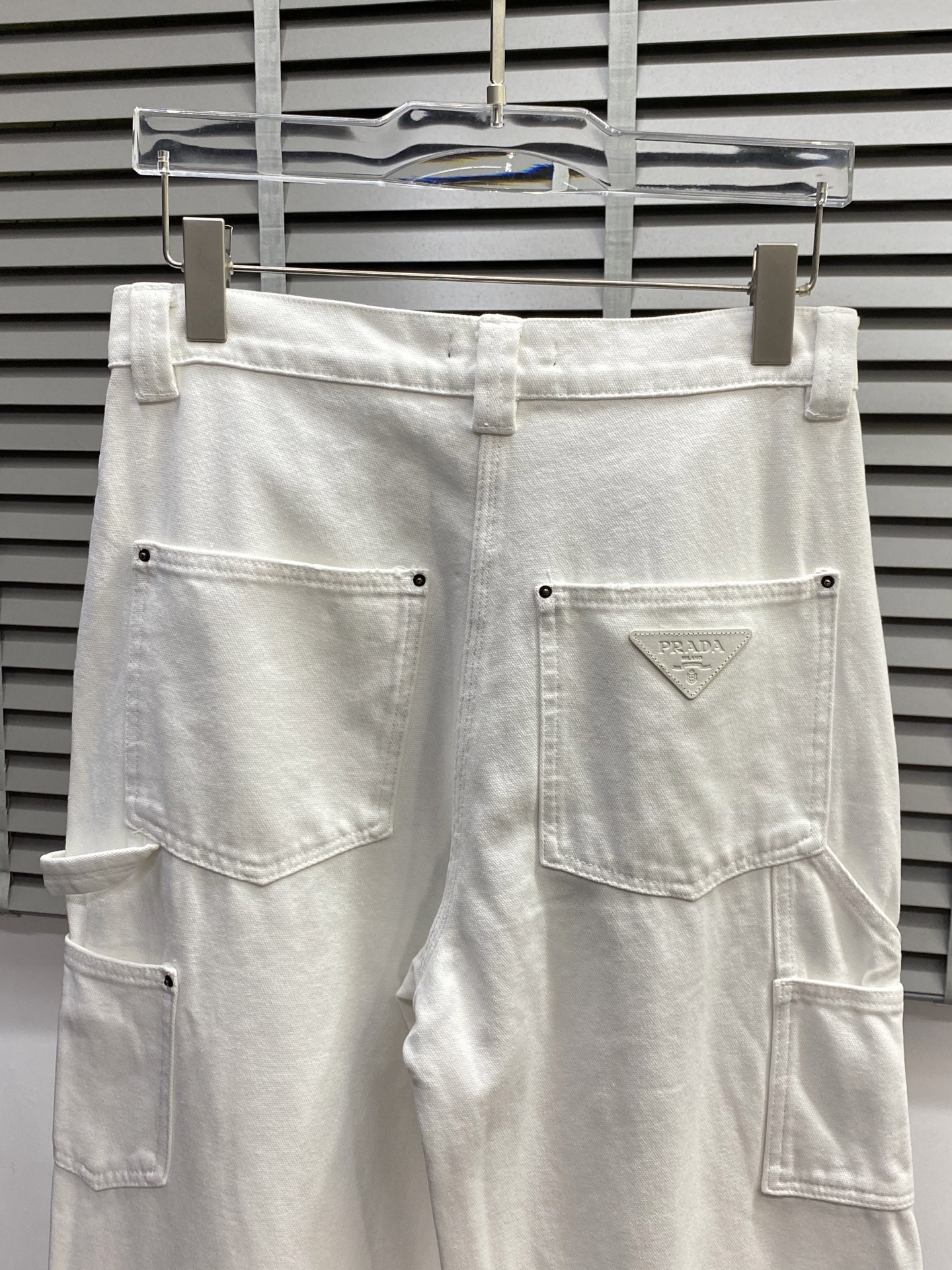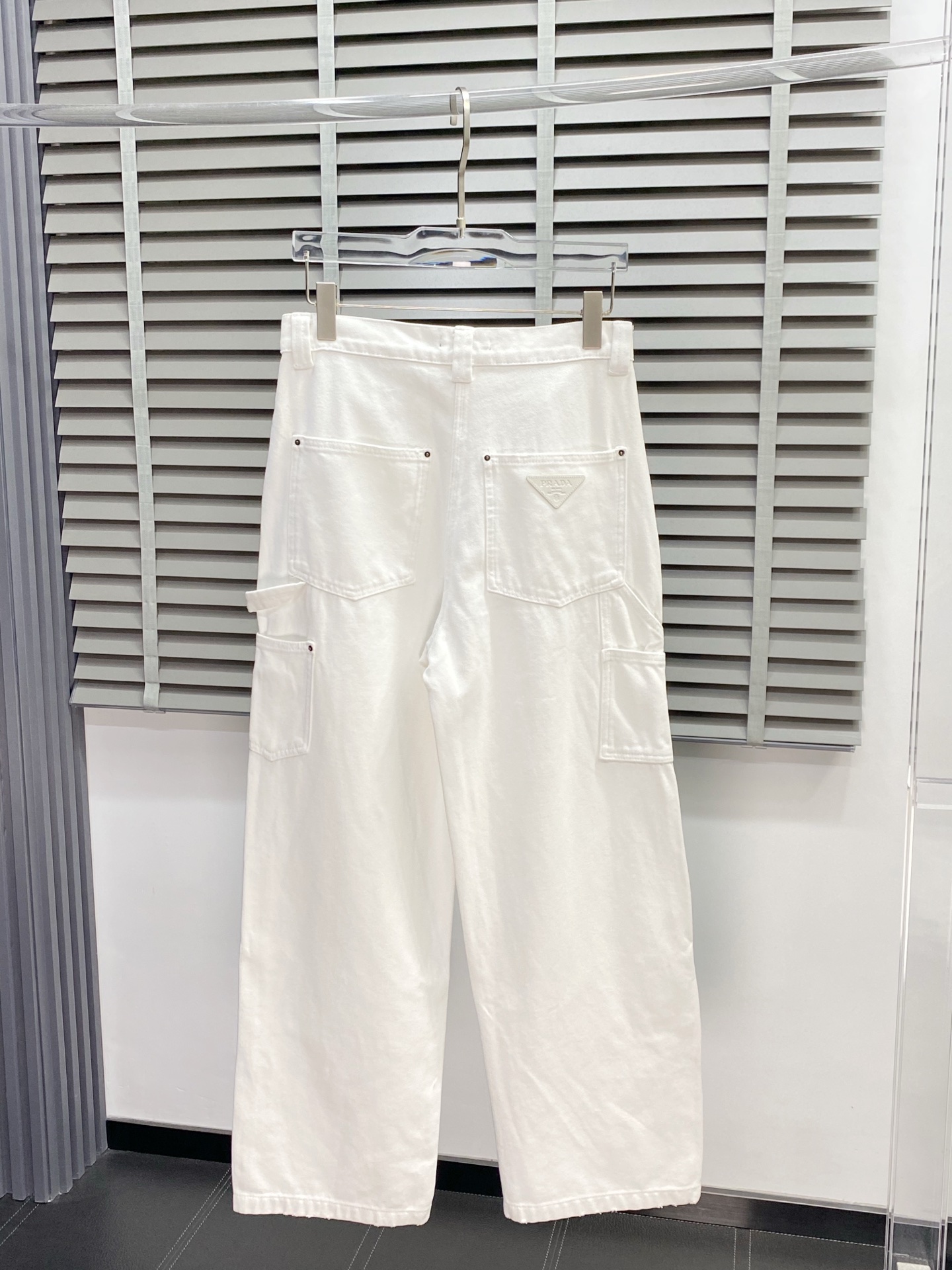 Prada Women's White Wide Leg Denim Jeans High-End Quality & Comfortable