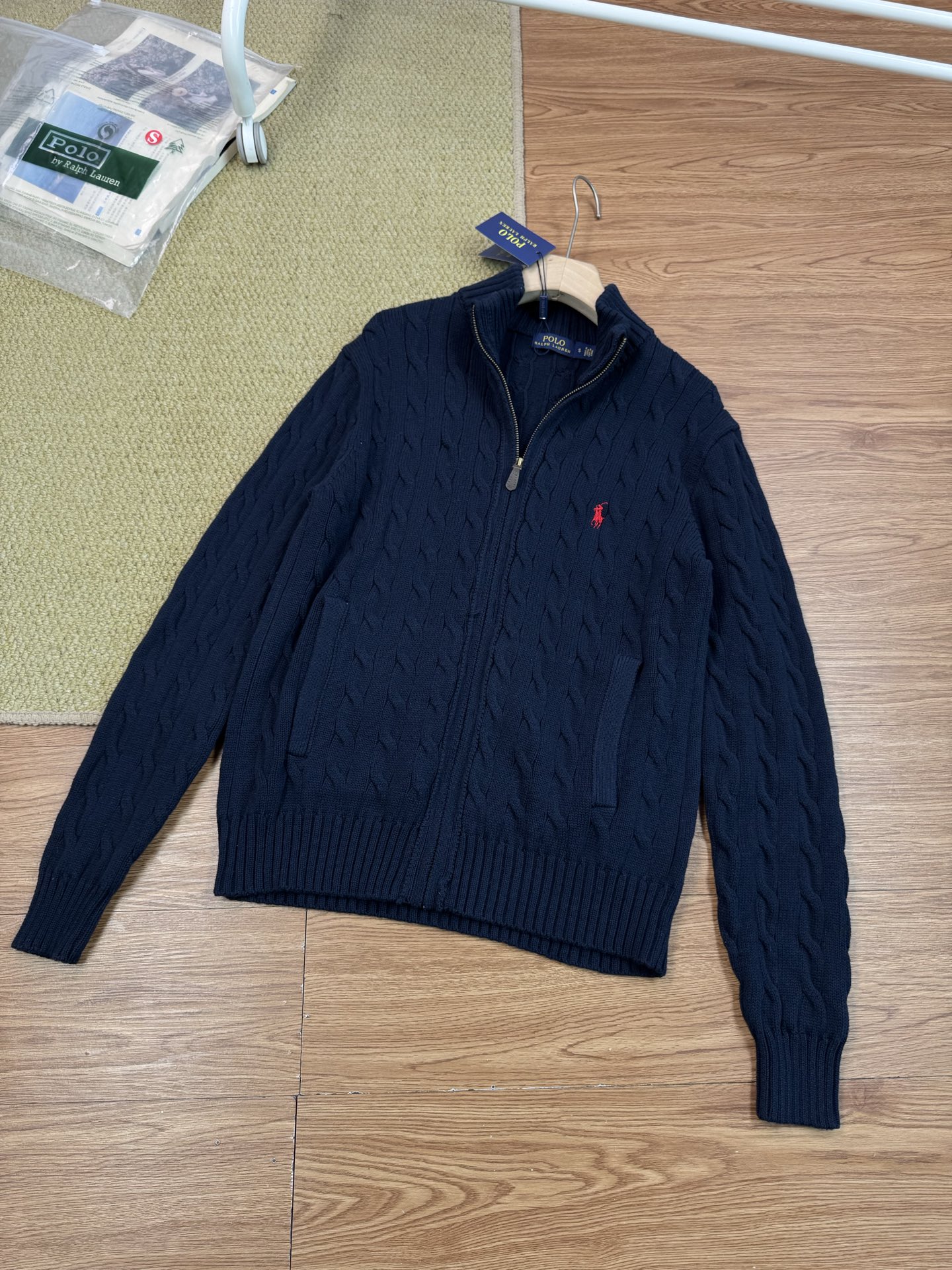 Experience timeless style with this Ralph Lauren cable-knit zip-up sweater. Perfect for layering, it blends comfort and sophistication effortlessly. A wardrobe essential!