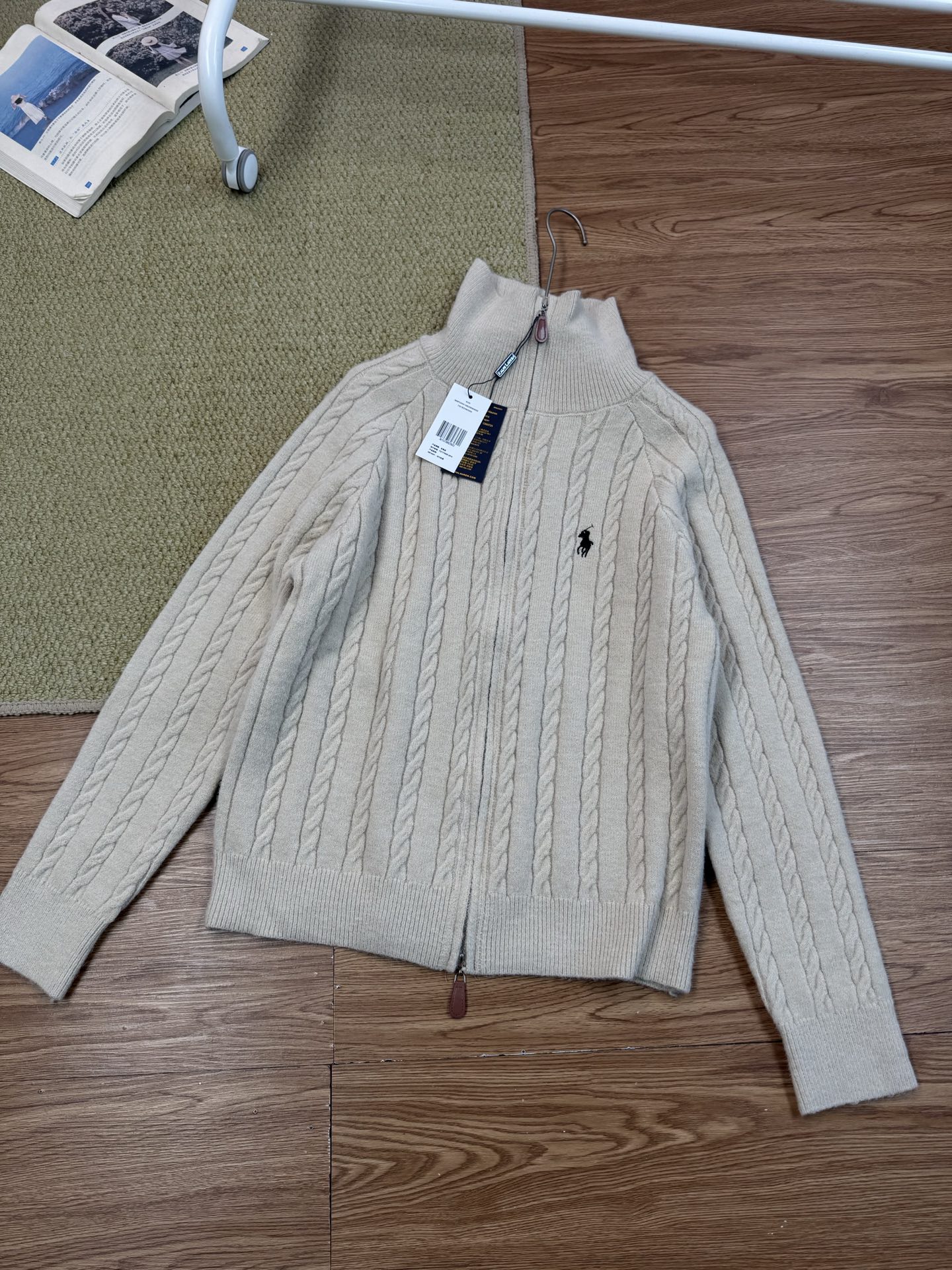 Ralph Lauren Classic Cable-Knit Wool-Blend Full-Zip Sweater Casual Fit
