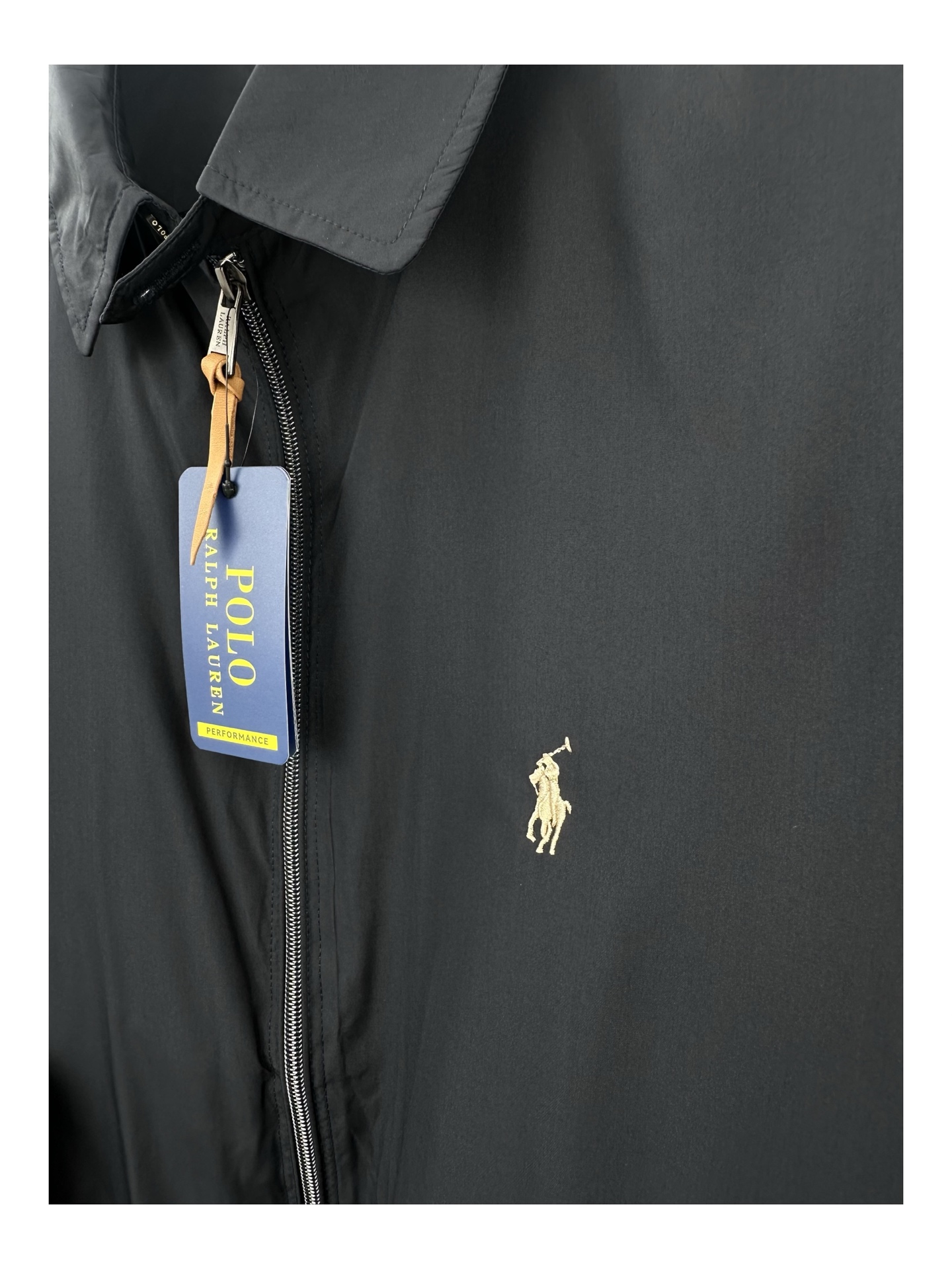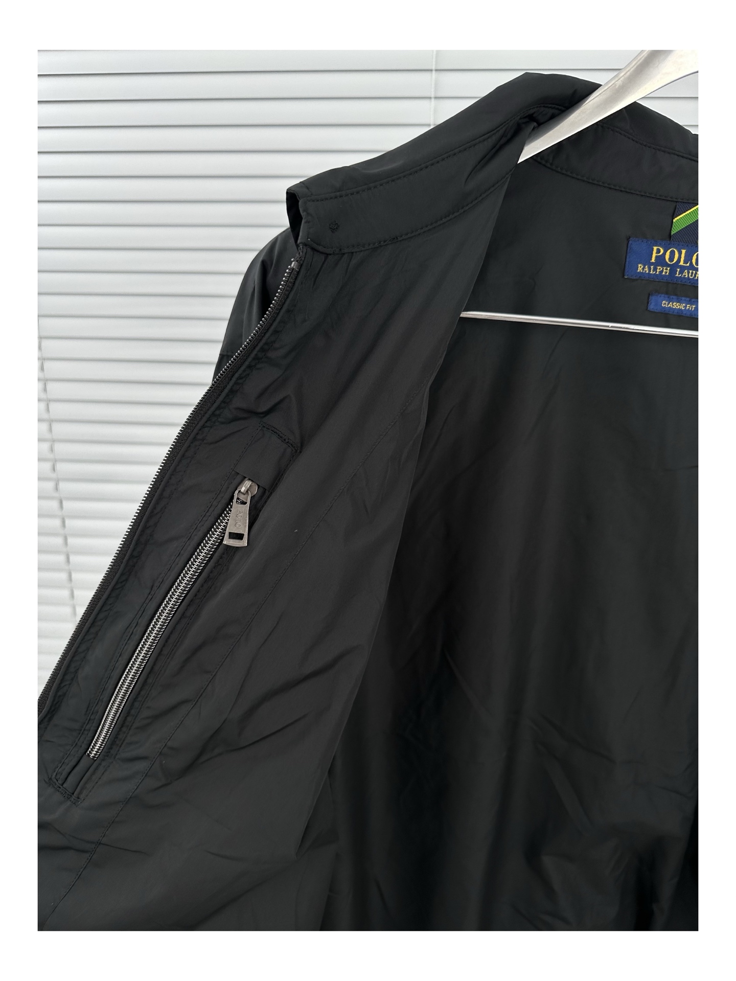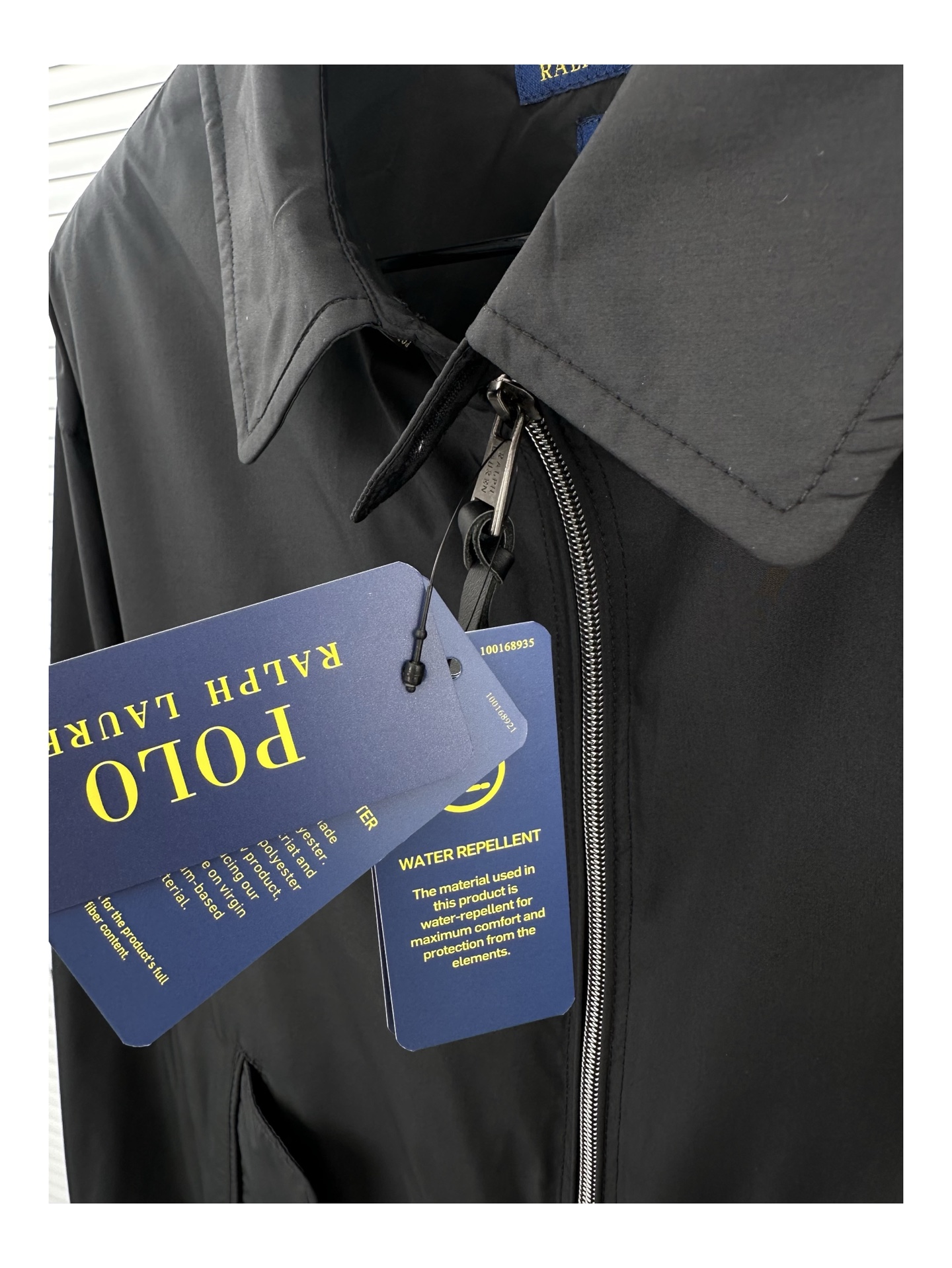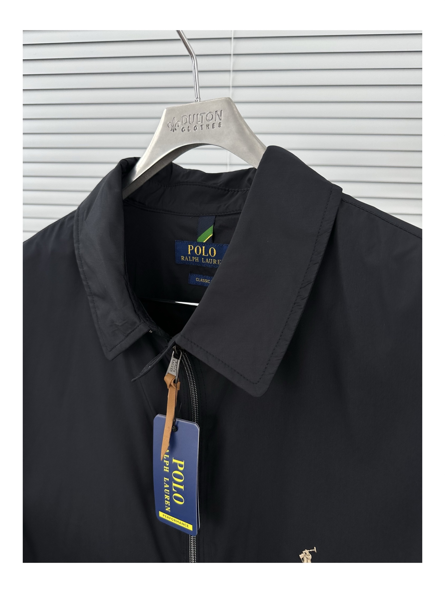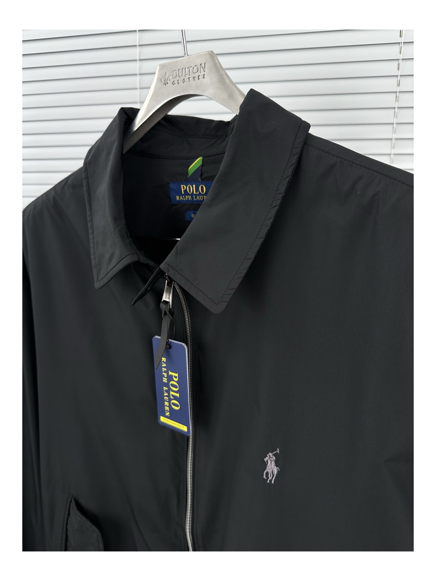 Classic Ralph Lauren jacket with embroidered logo, windproof, water-repellent, and stain-resistant. Available in Black and Navy Blue.
