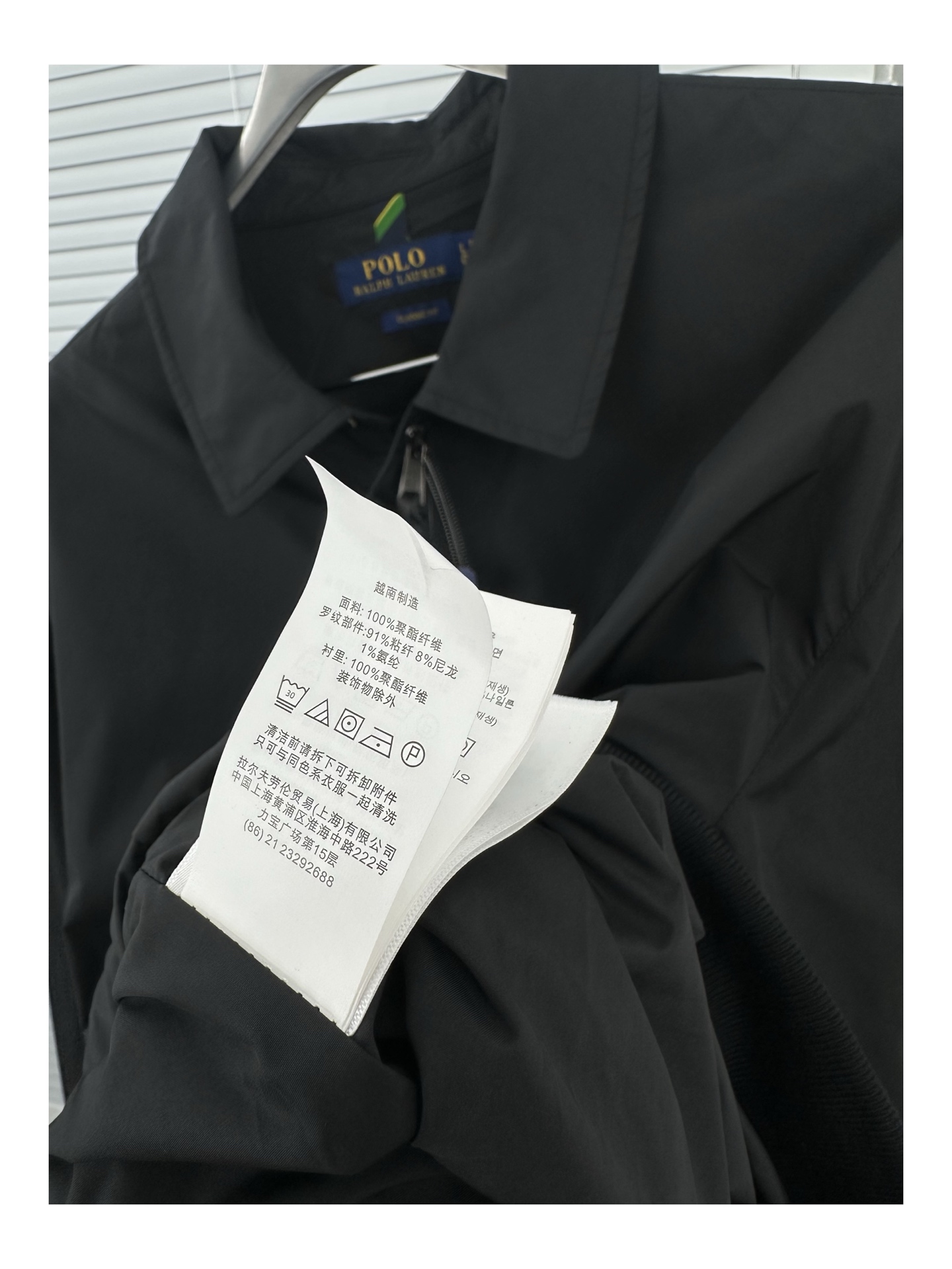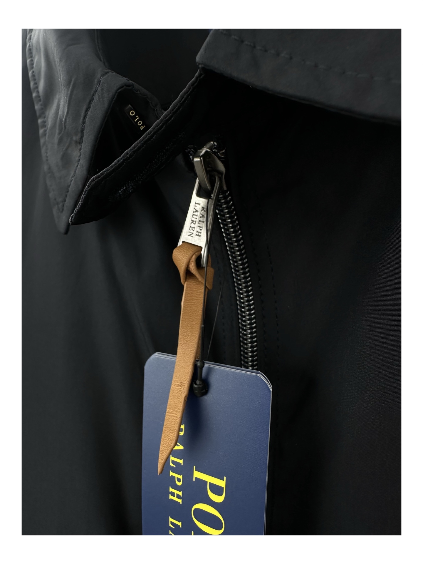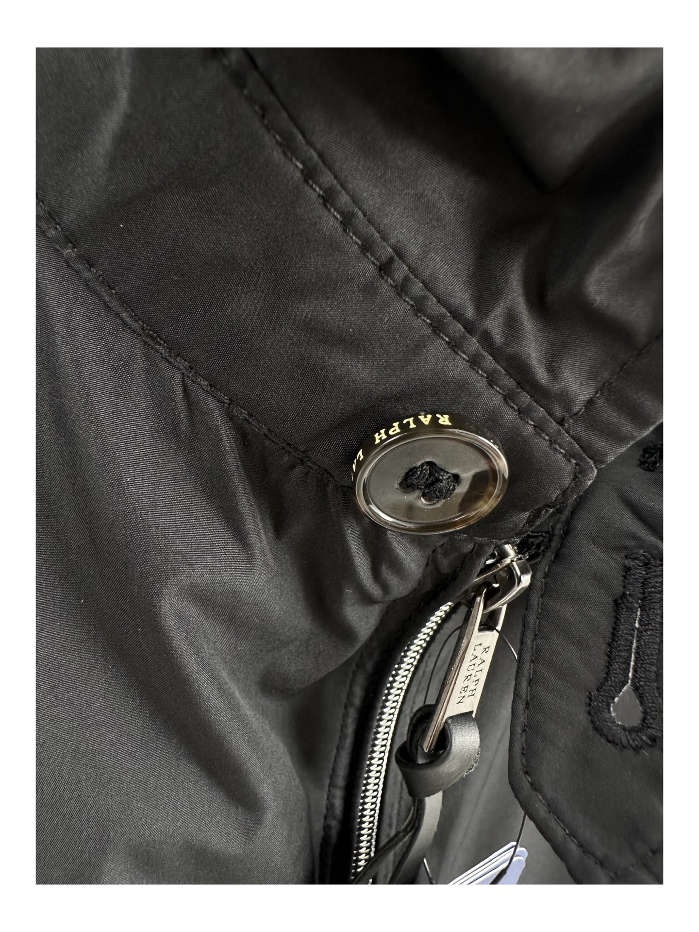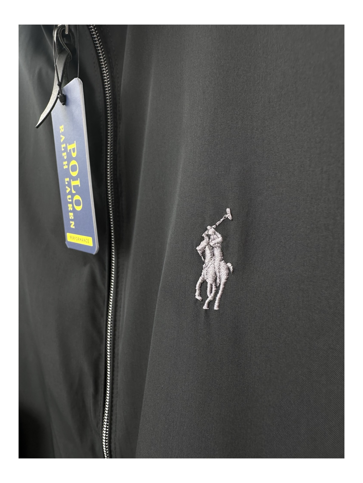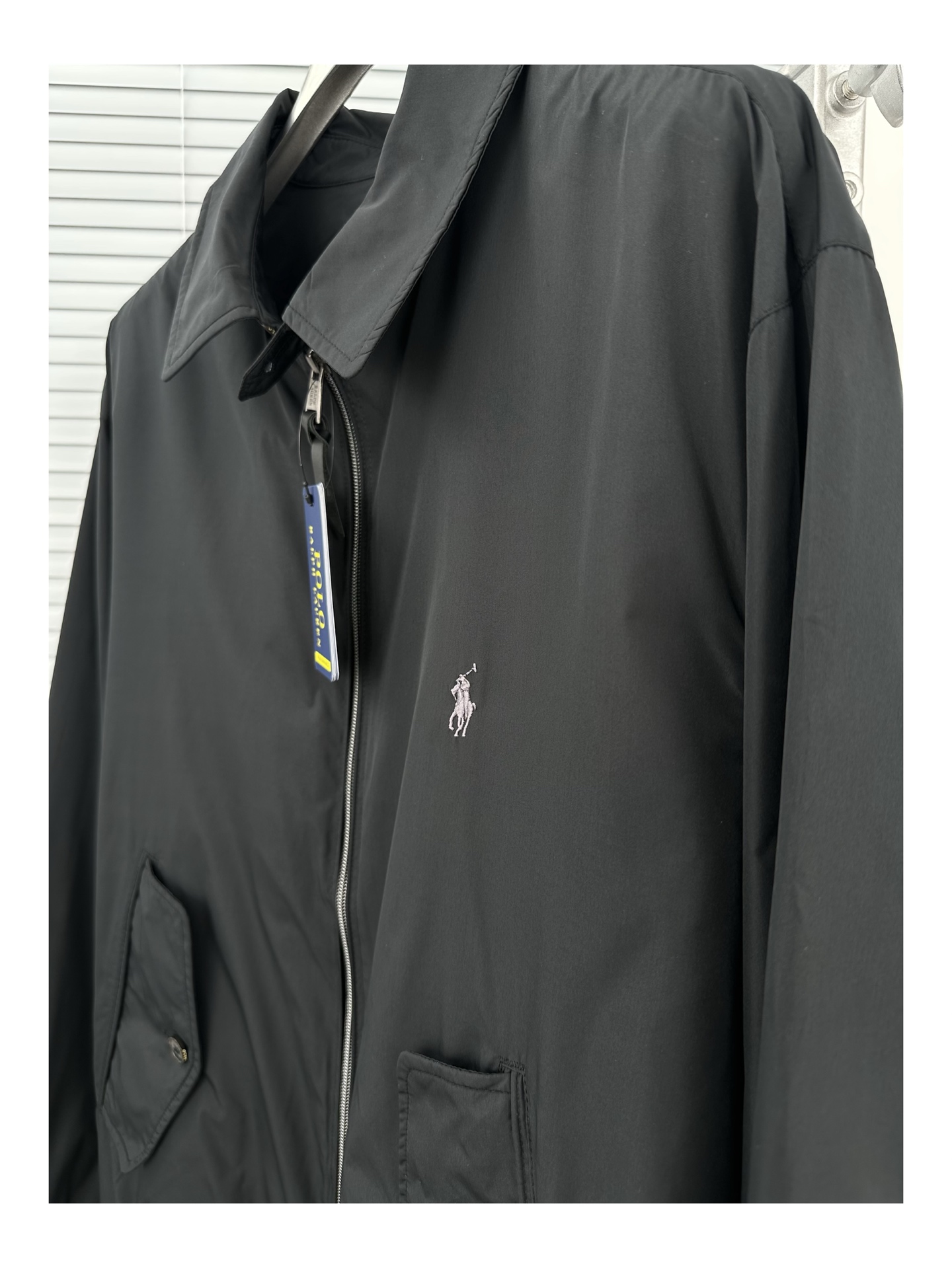 Classic Ralph Lauren jacket with embroidered logo, windproof, water-repellent, and stain-resistant. Available in Black and Navy Blue.
