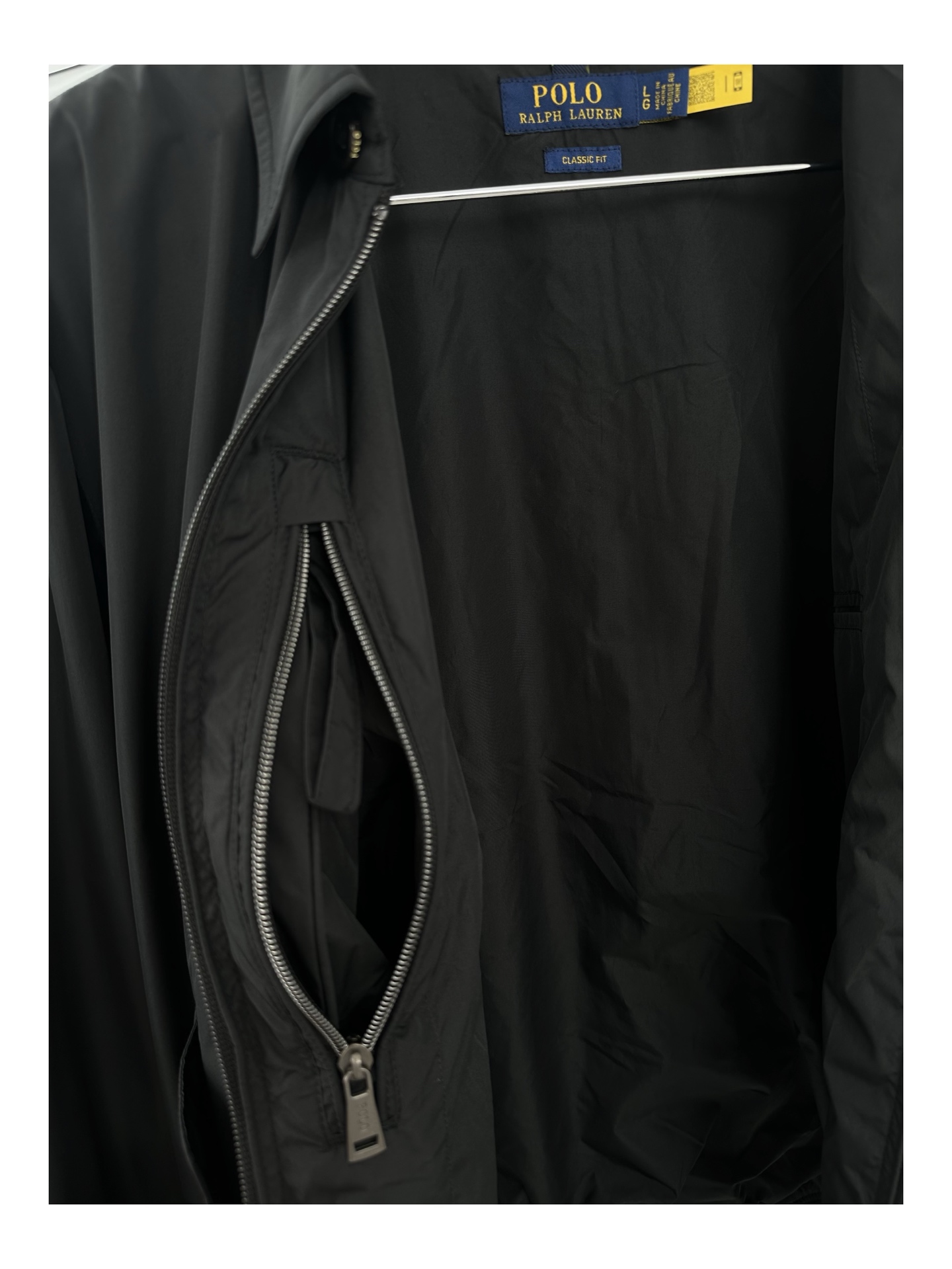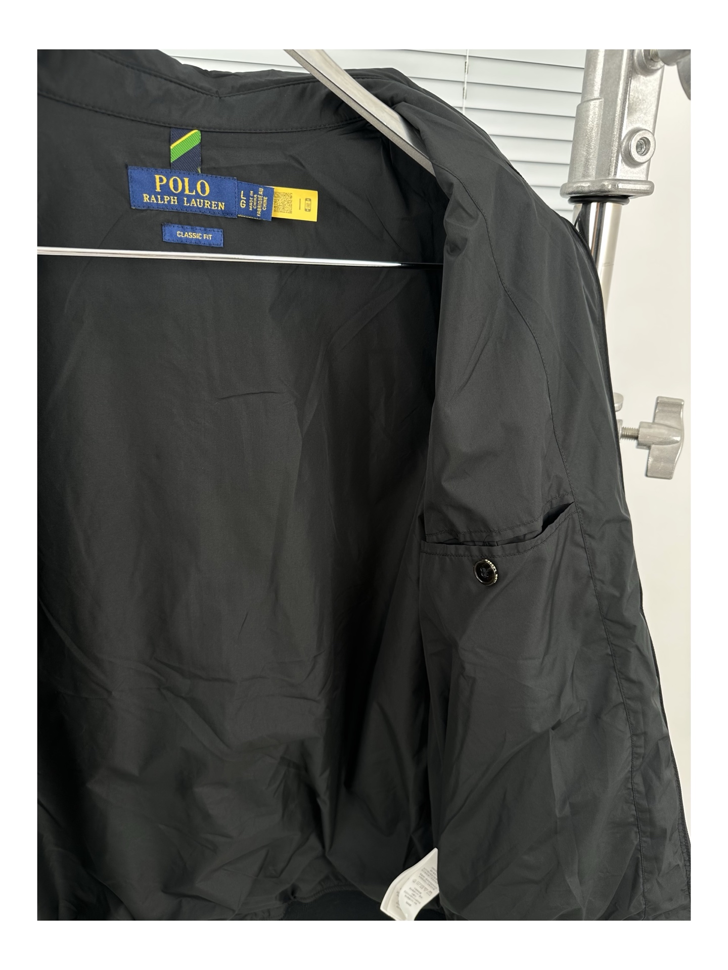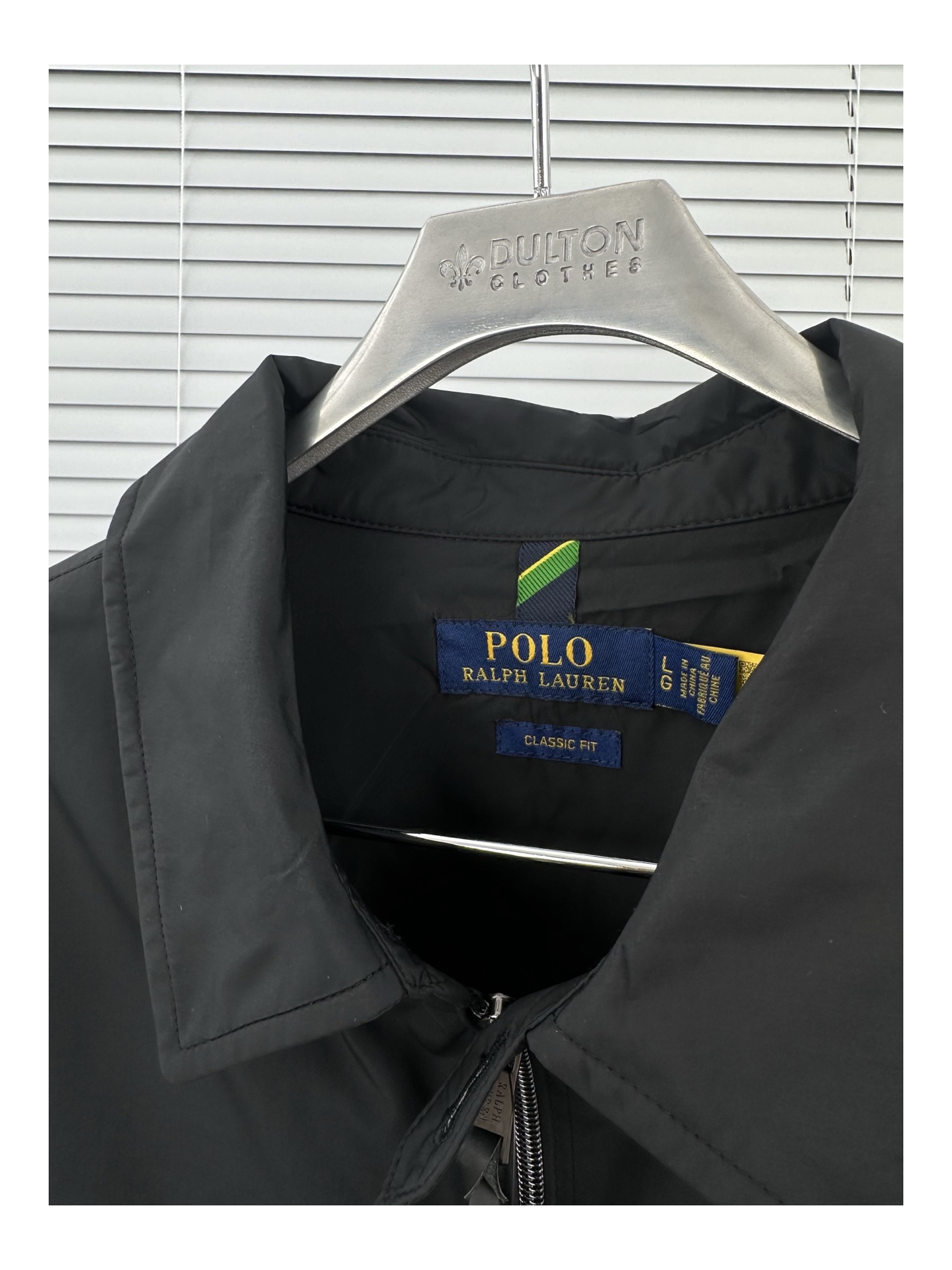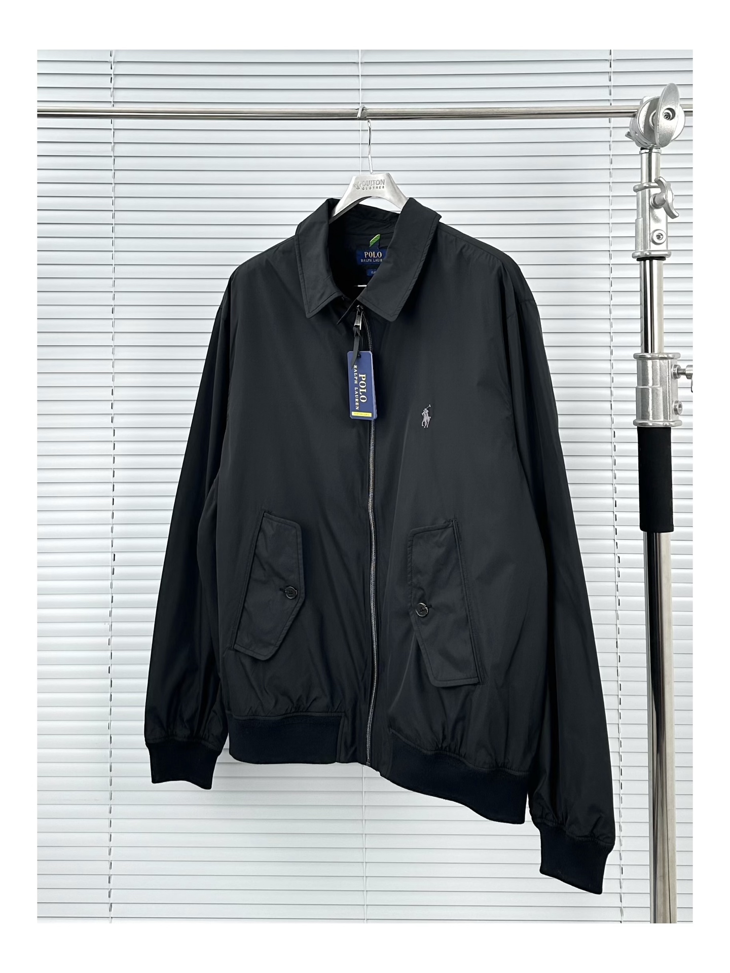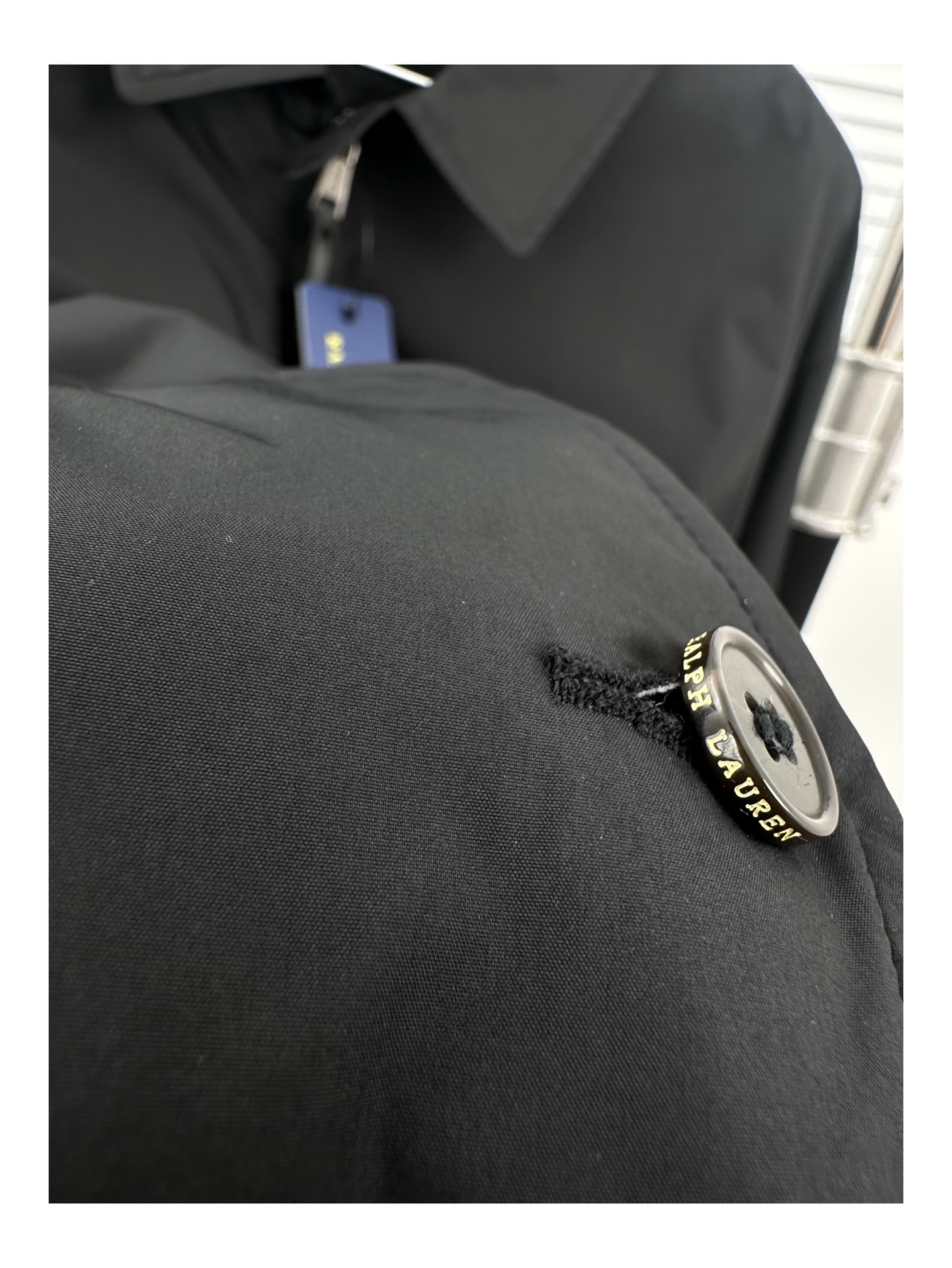 Classic Ralph Lauren jacket with embroidered logo, windproof, water-repellent, and stain-resistant. Available in Black and Navy Blue.