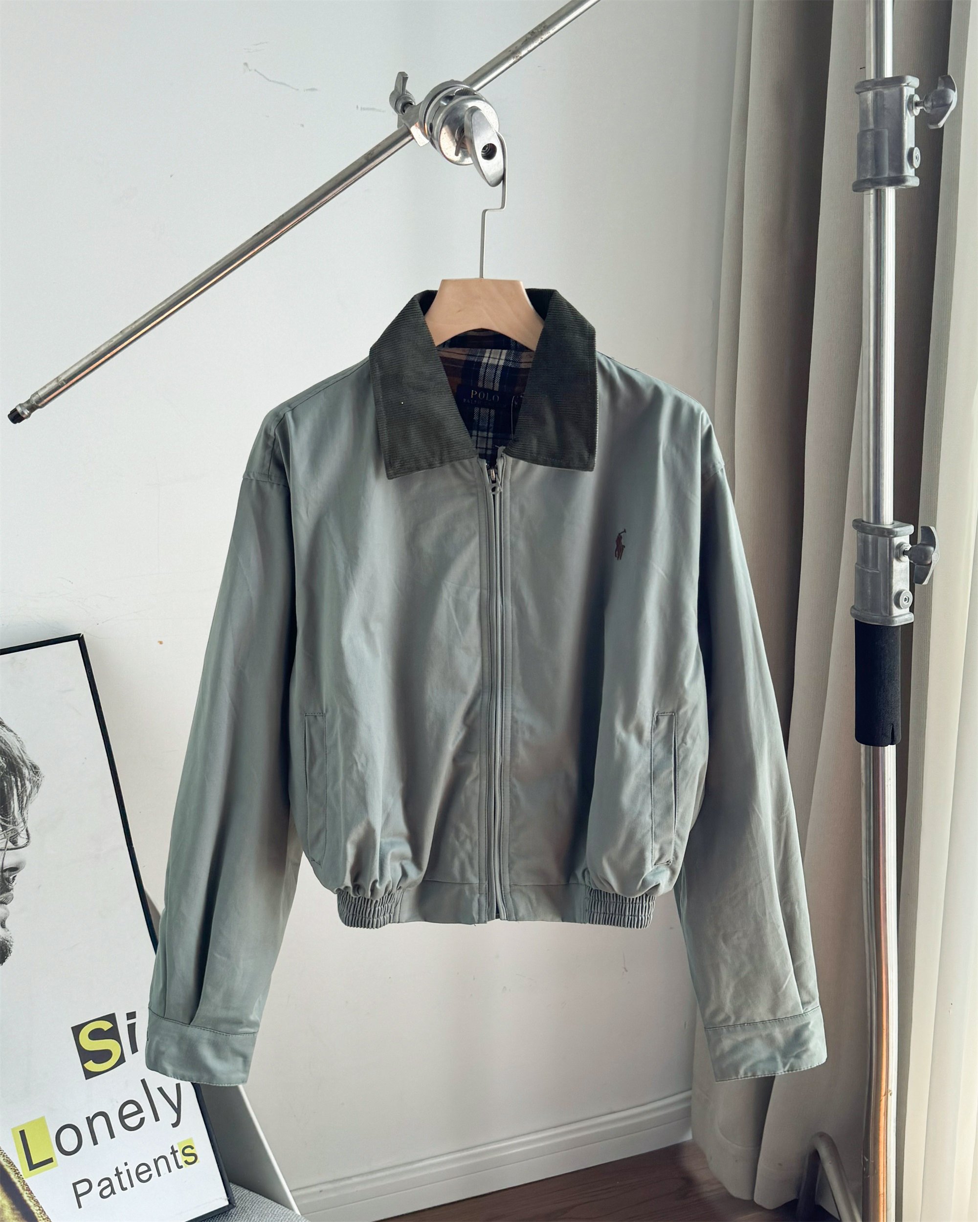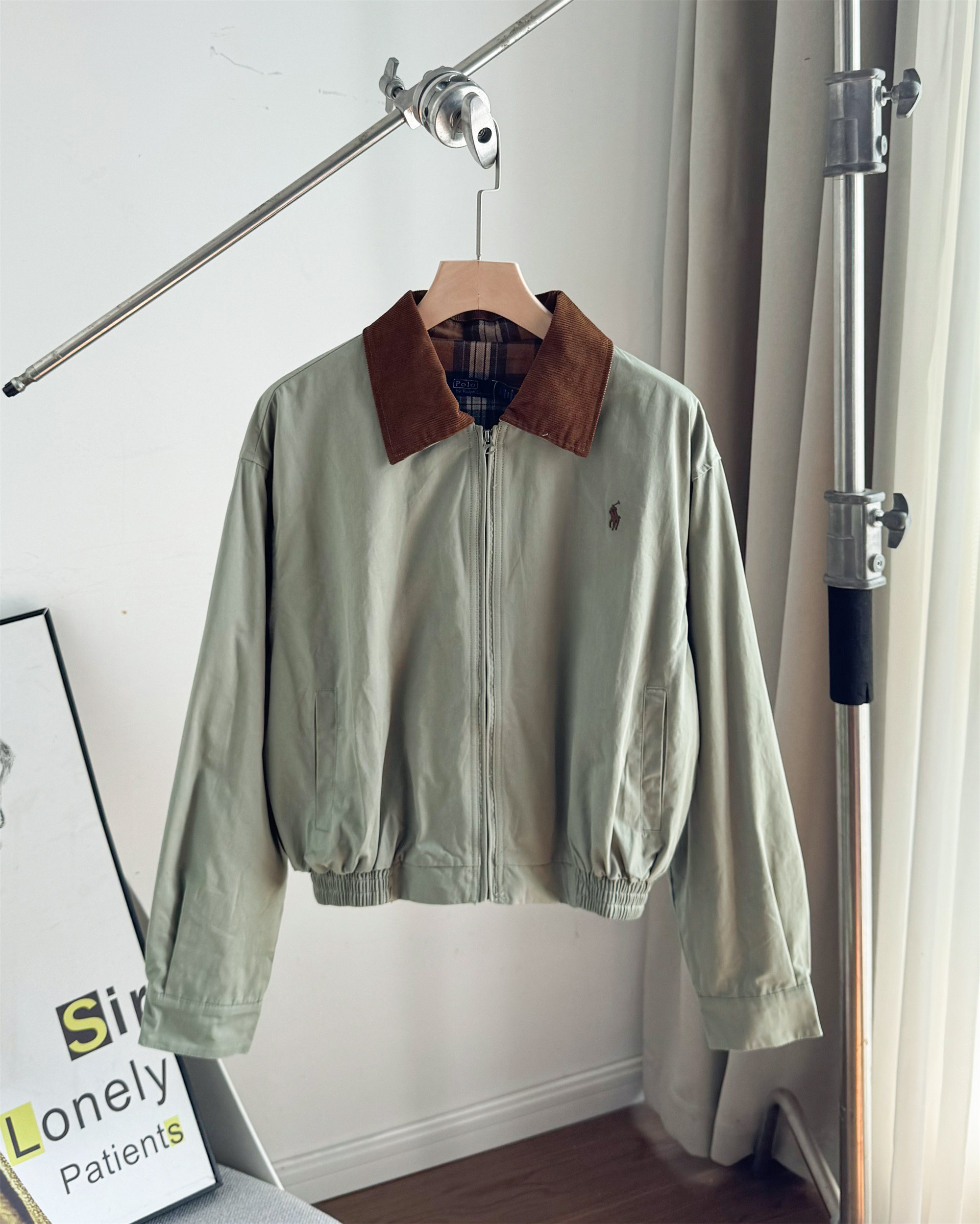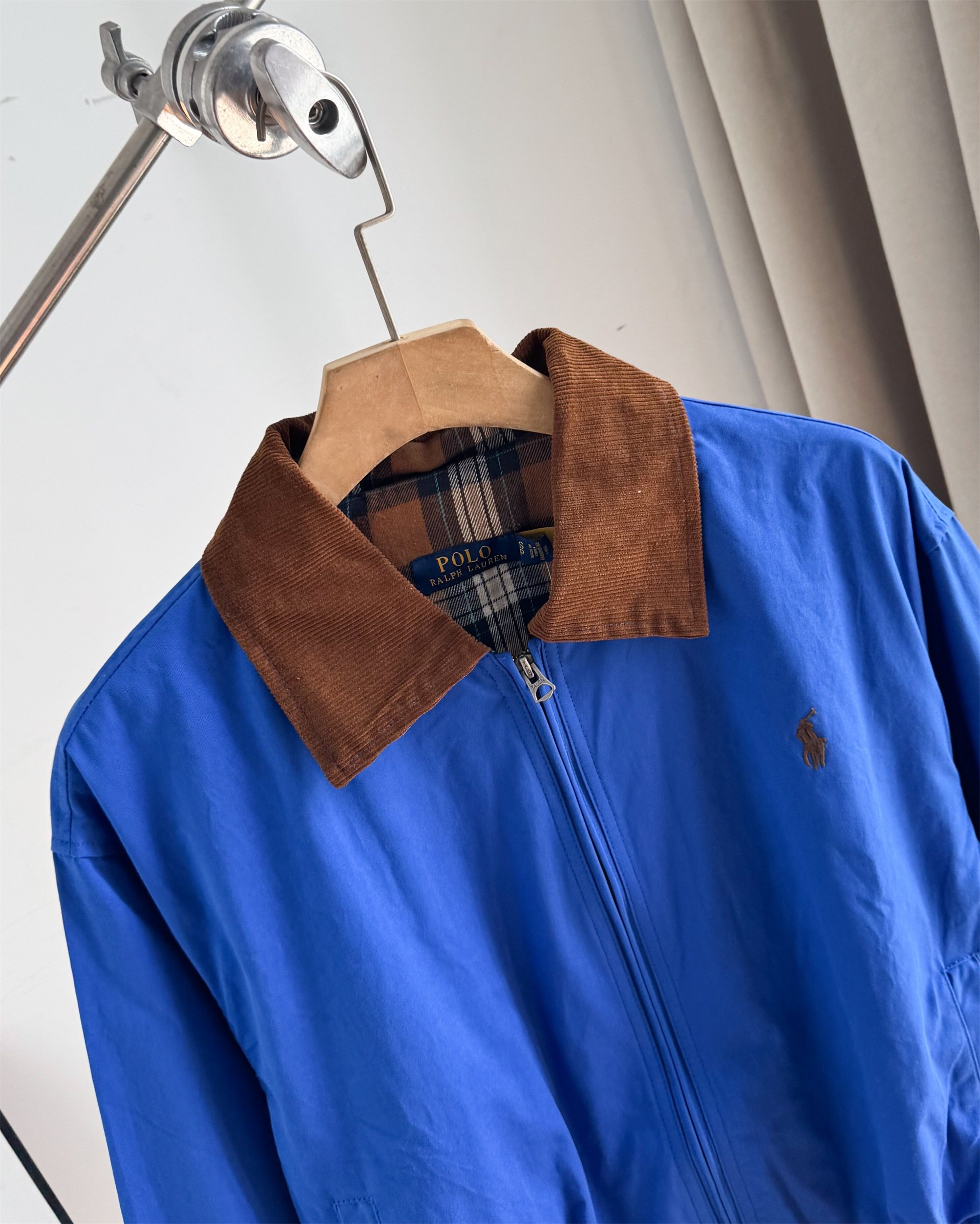 The Ralph Lauren Four-Color Campus Style Lapel Jacket is a blend of classic design and modern style. This American retro outerwear piece features a unique combination of collegiate charm and vintage appeal.