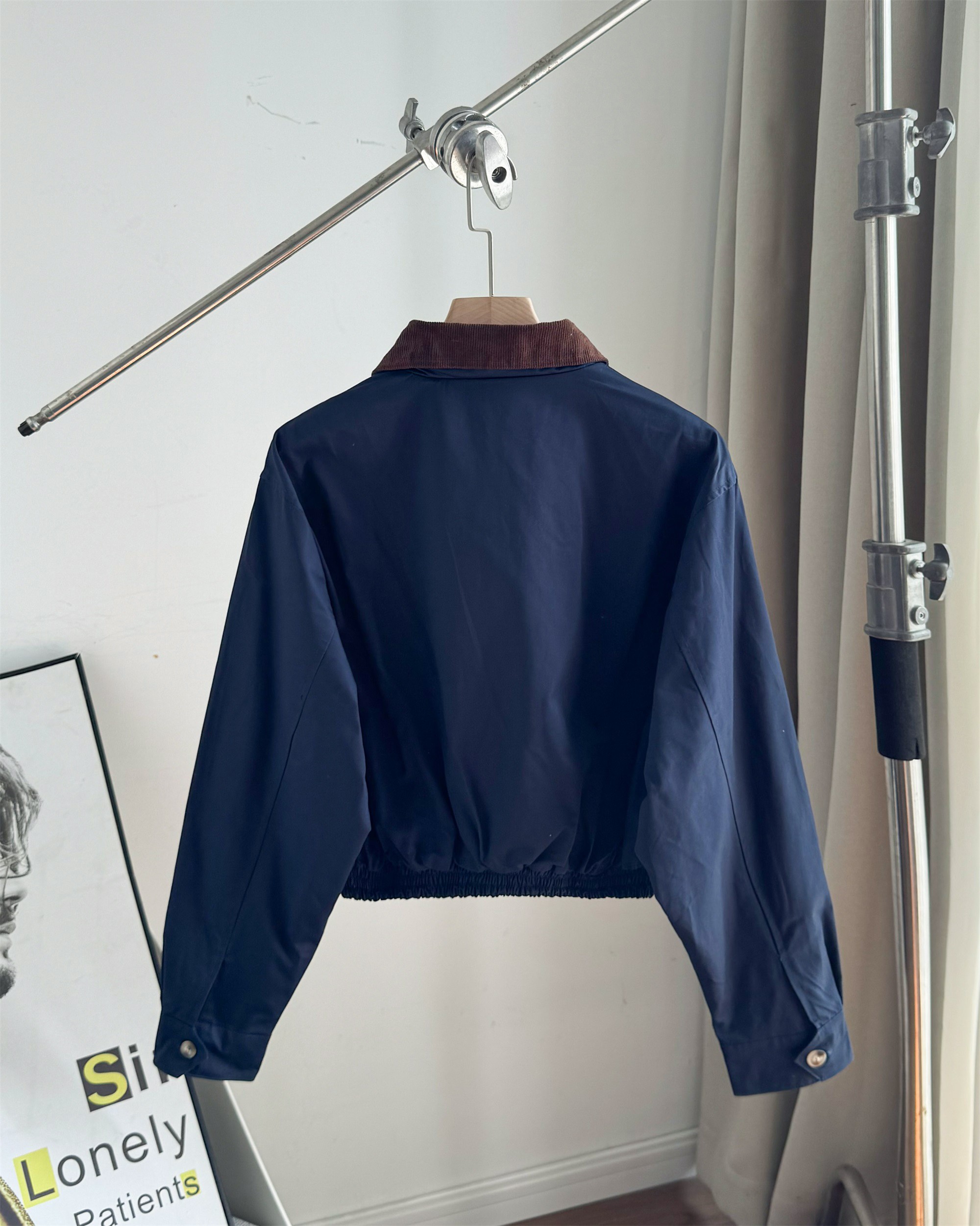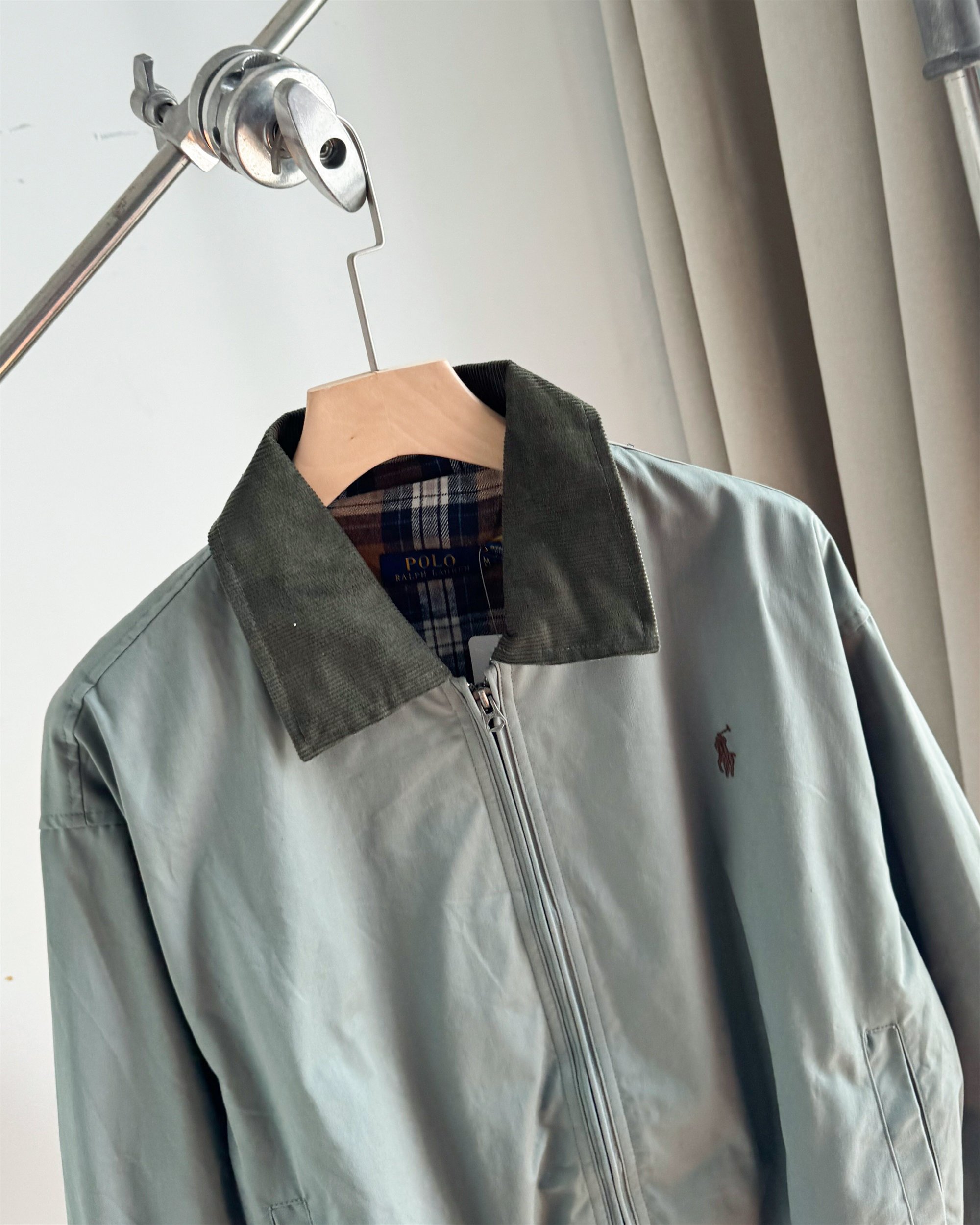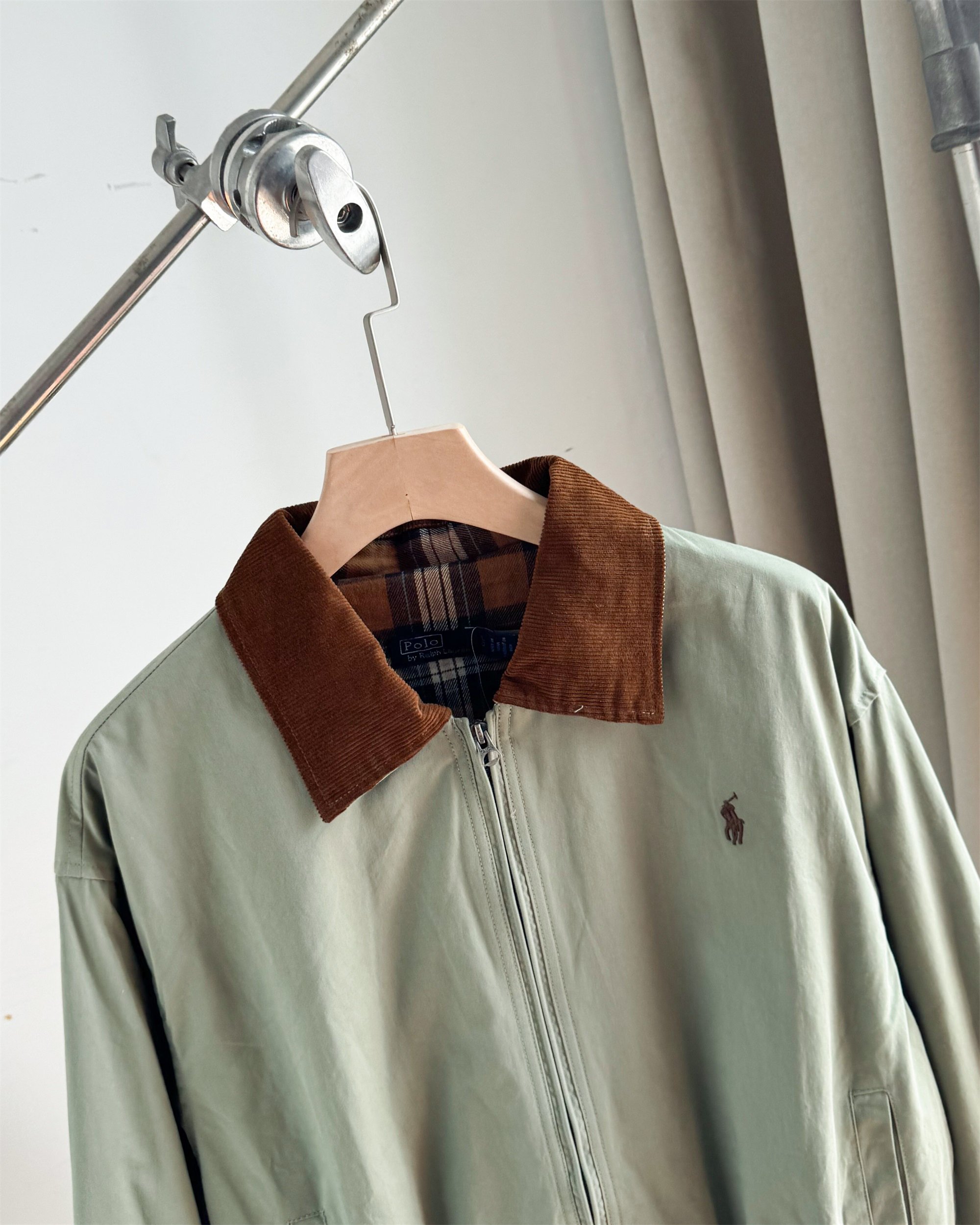 The Ralph Lauren Four-Color Campus Style Lapel Jacket is a blend of classic design and modern style. This American retro outerwear piece features a unique combination of collegiate charm and vintage appeal.