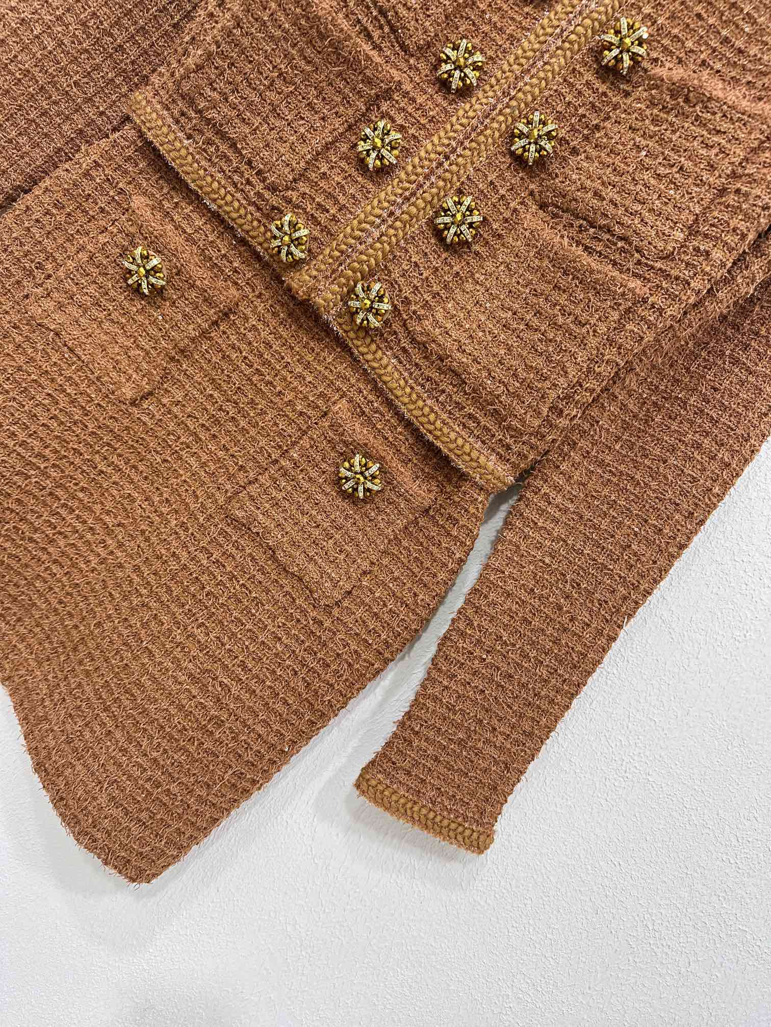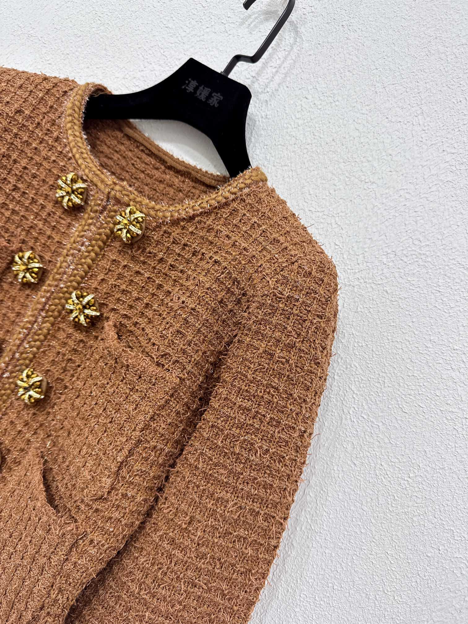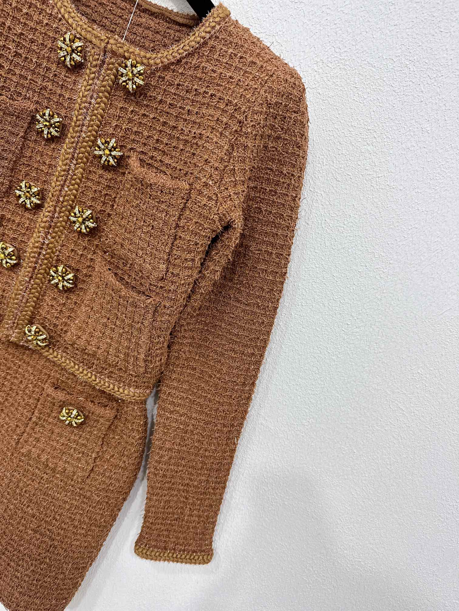 This knit cardigan and skirt set offers a blend of classic design and contemporary style. Inspired by high-fashion aesthetics, this two-piece outfit is perfect for those seeking a refined and polished look.