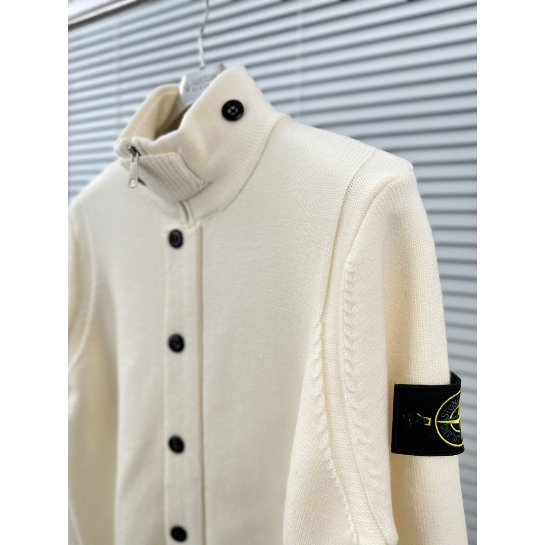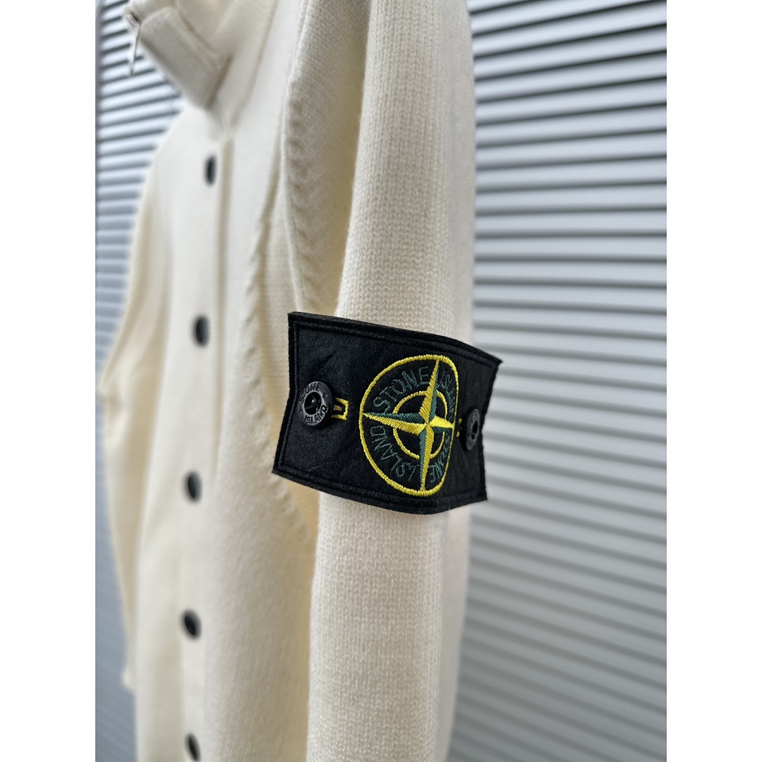 This Stone Island knit cardigan is a must-have for your wardrobe, combining style, comfort, and high-quality craftsmanship.