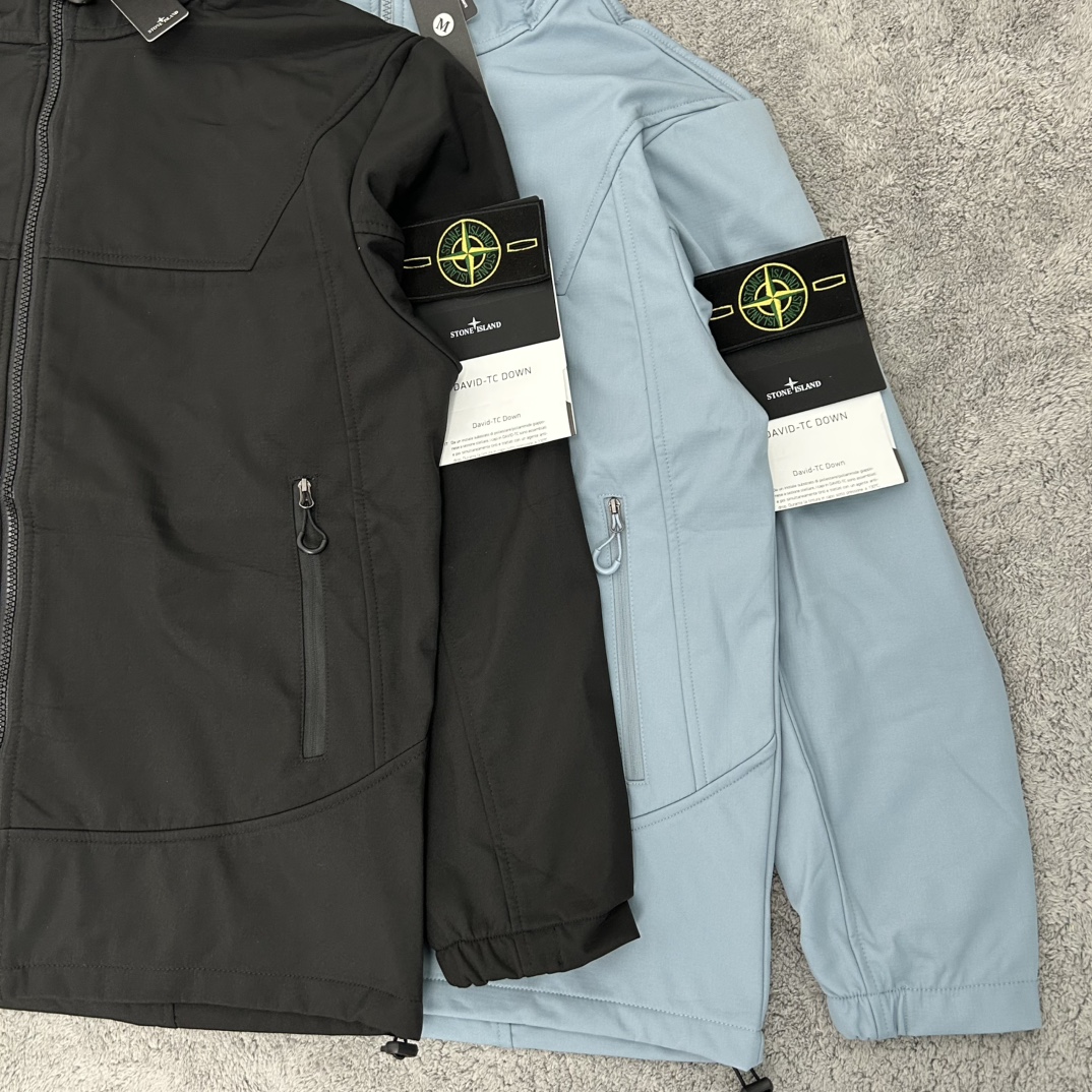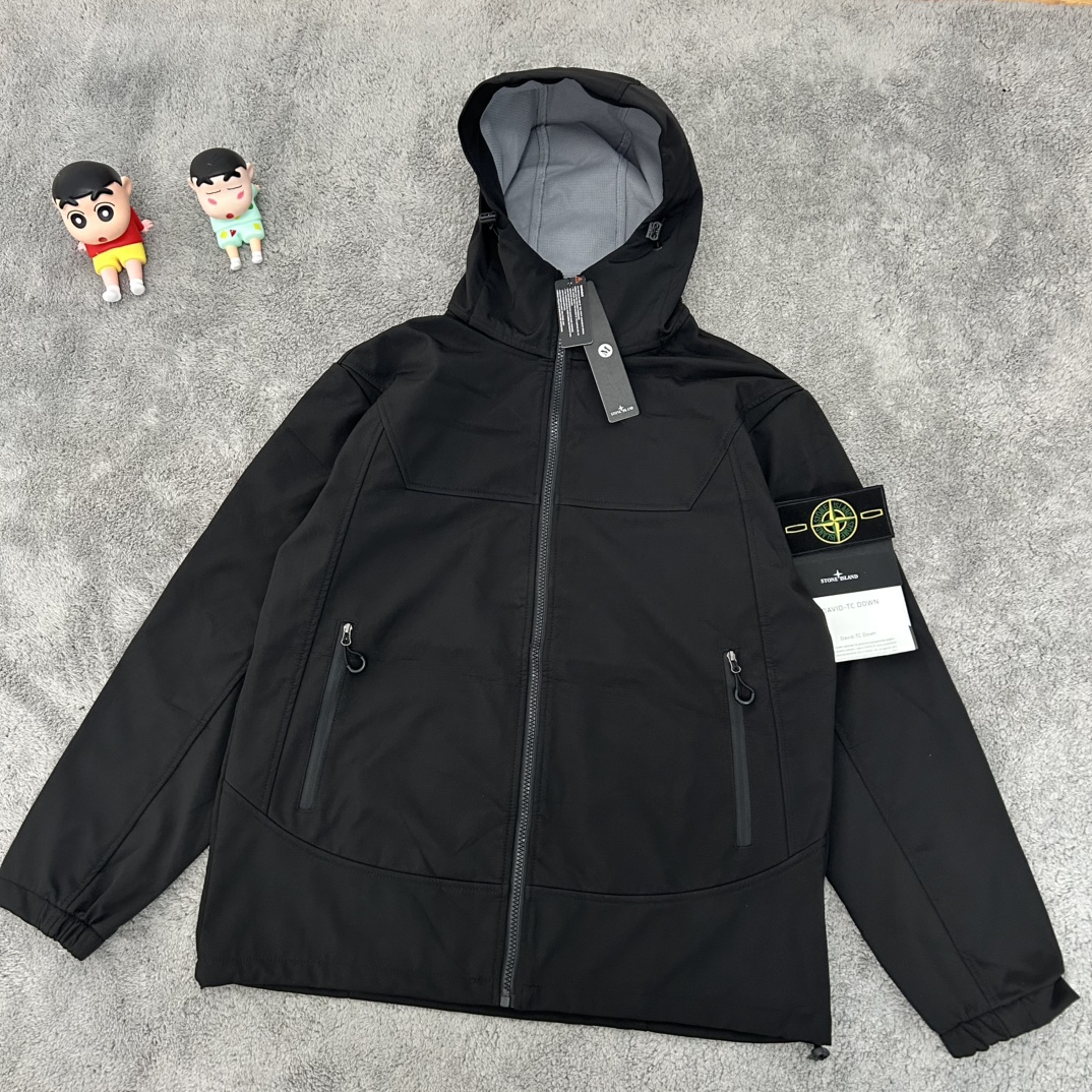 Stay stylish and protected with this Stone Island softshell jacket, featuring windproof, waterproof fabric and a functional design.