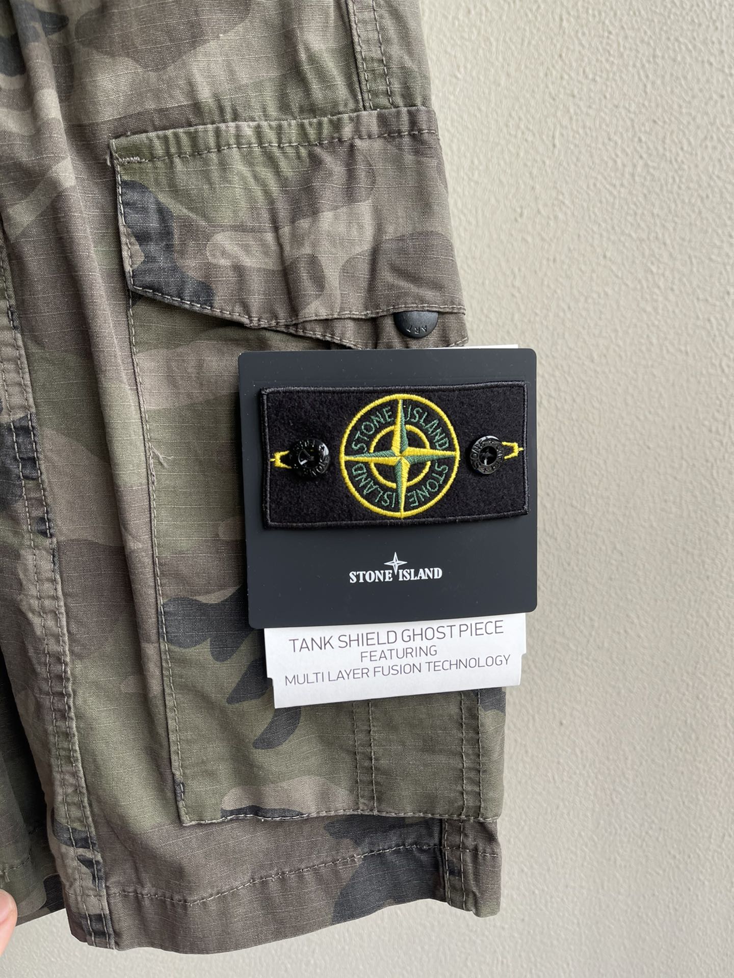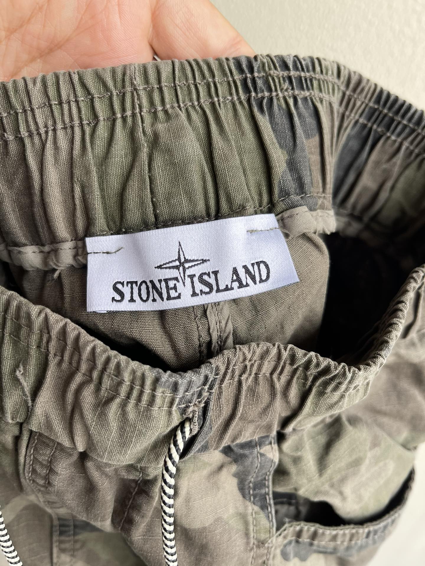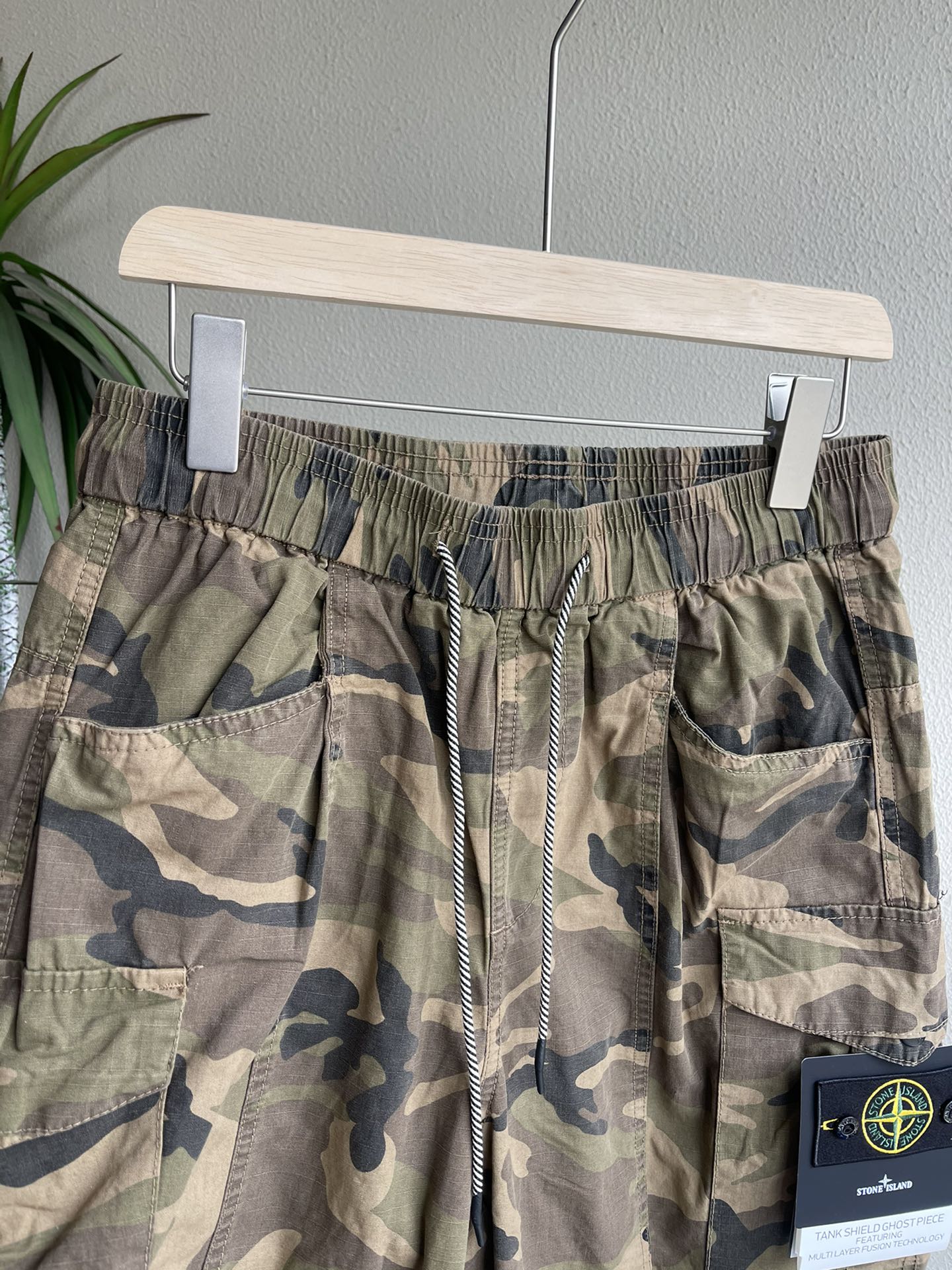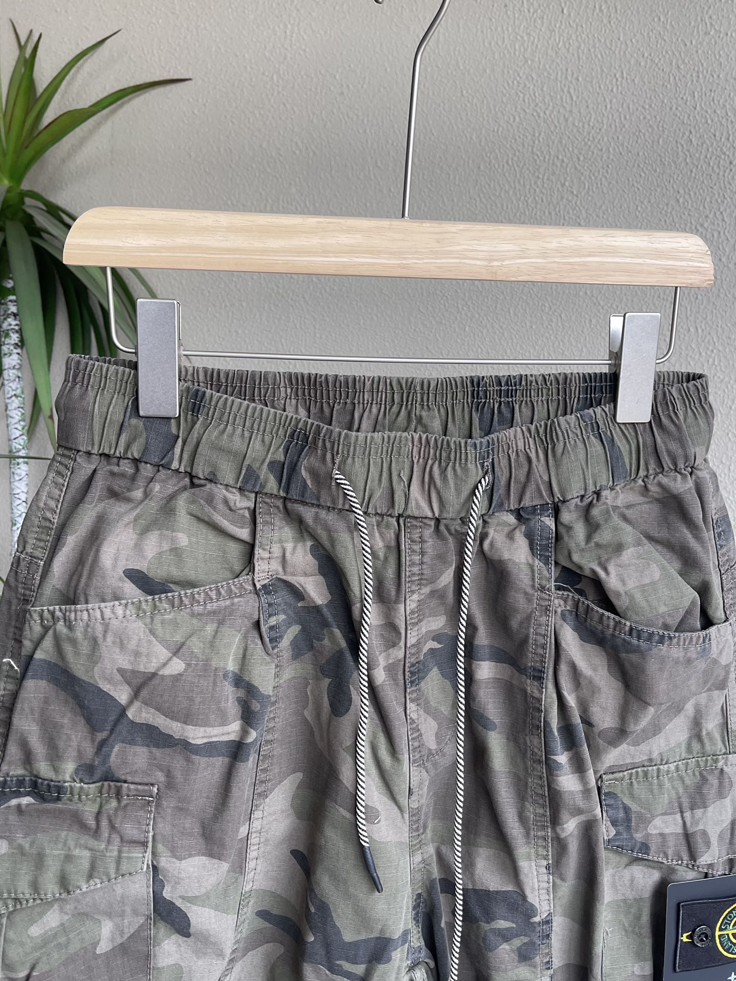 Stone Island Men's Camo Cargo Shorts Drawstring Vintage Washed Summer