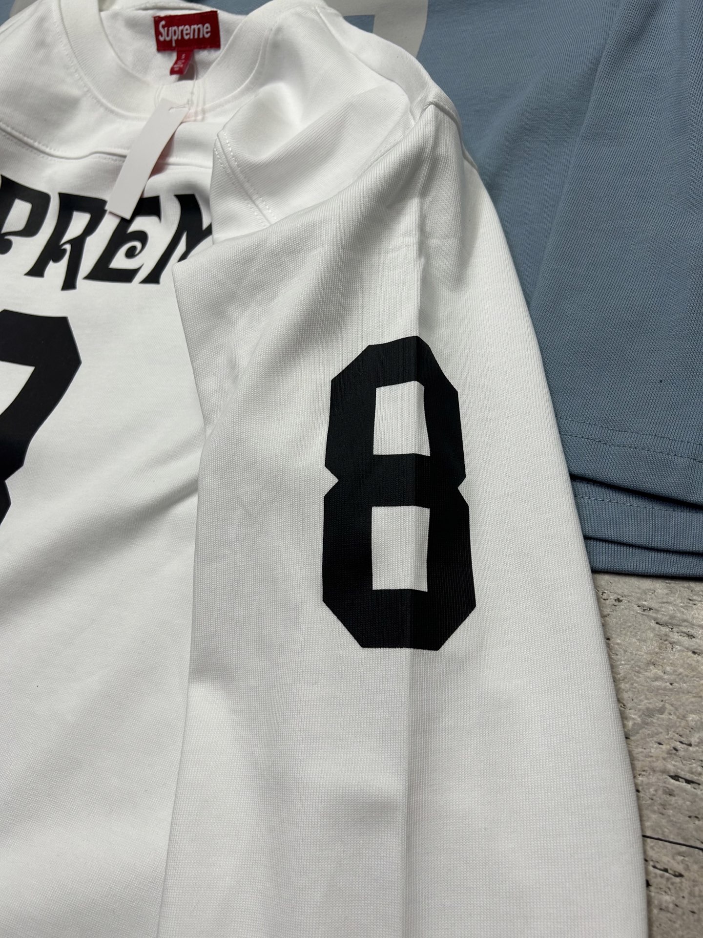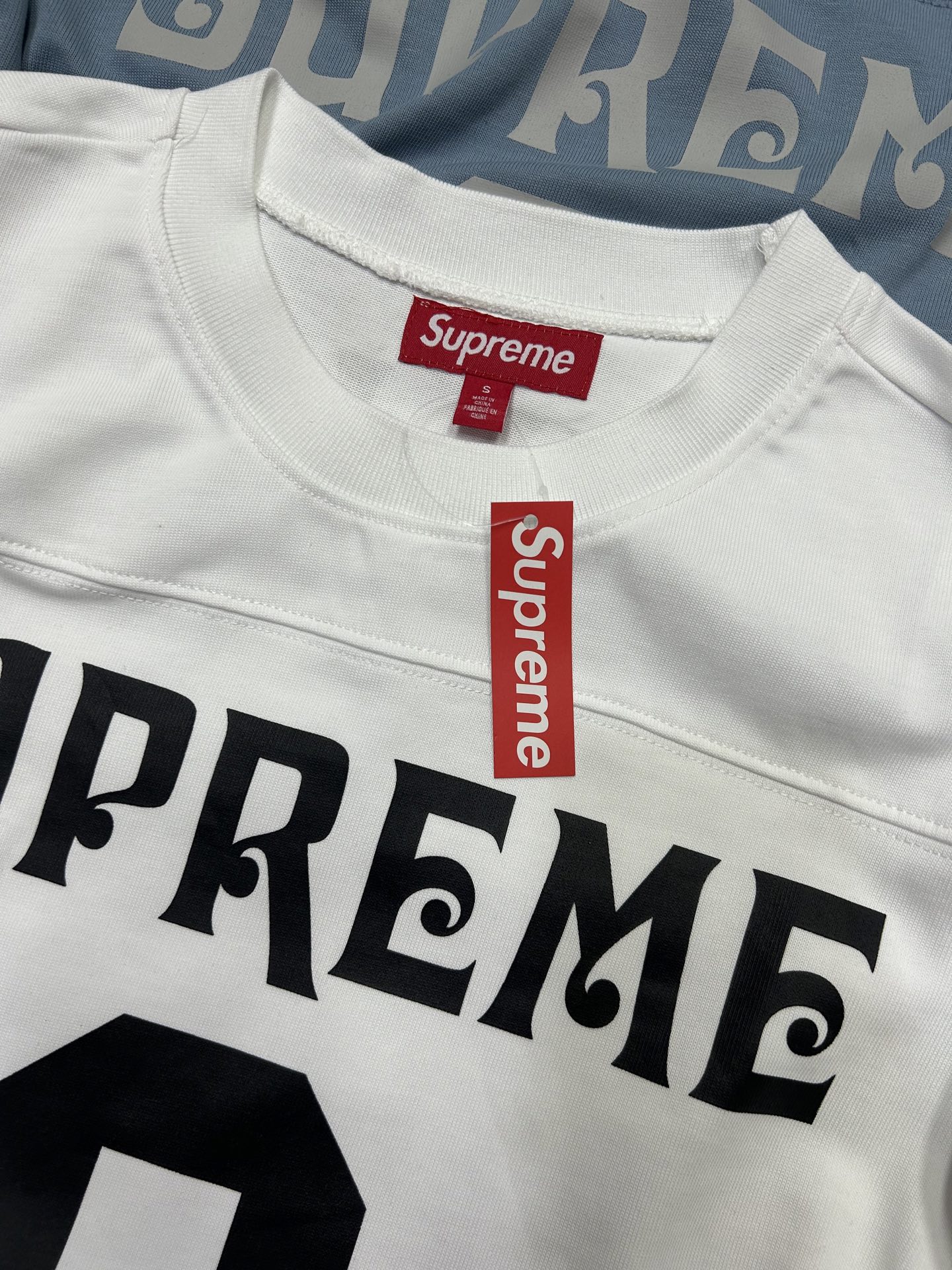 Elevate your style with the Supreme SS25 Football Top. This long-sleeve T-shirt features a unique design and comfortable knit fabric, perfect for casual wear.
