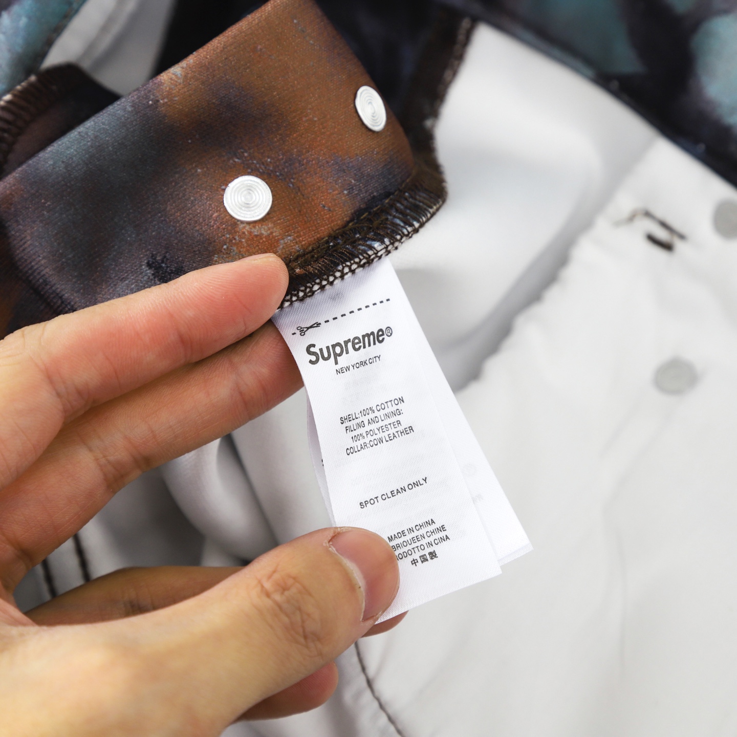 The Supreme x Frank Frazetta collaboration presents a unique blend of streetwear and iconic fantasy art. These rider denim pants feature bold graphics from the legendary artist Frank Frazetta, making them a standout piece in any wardrobe.