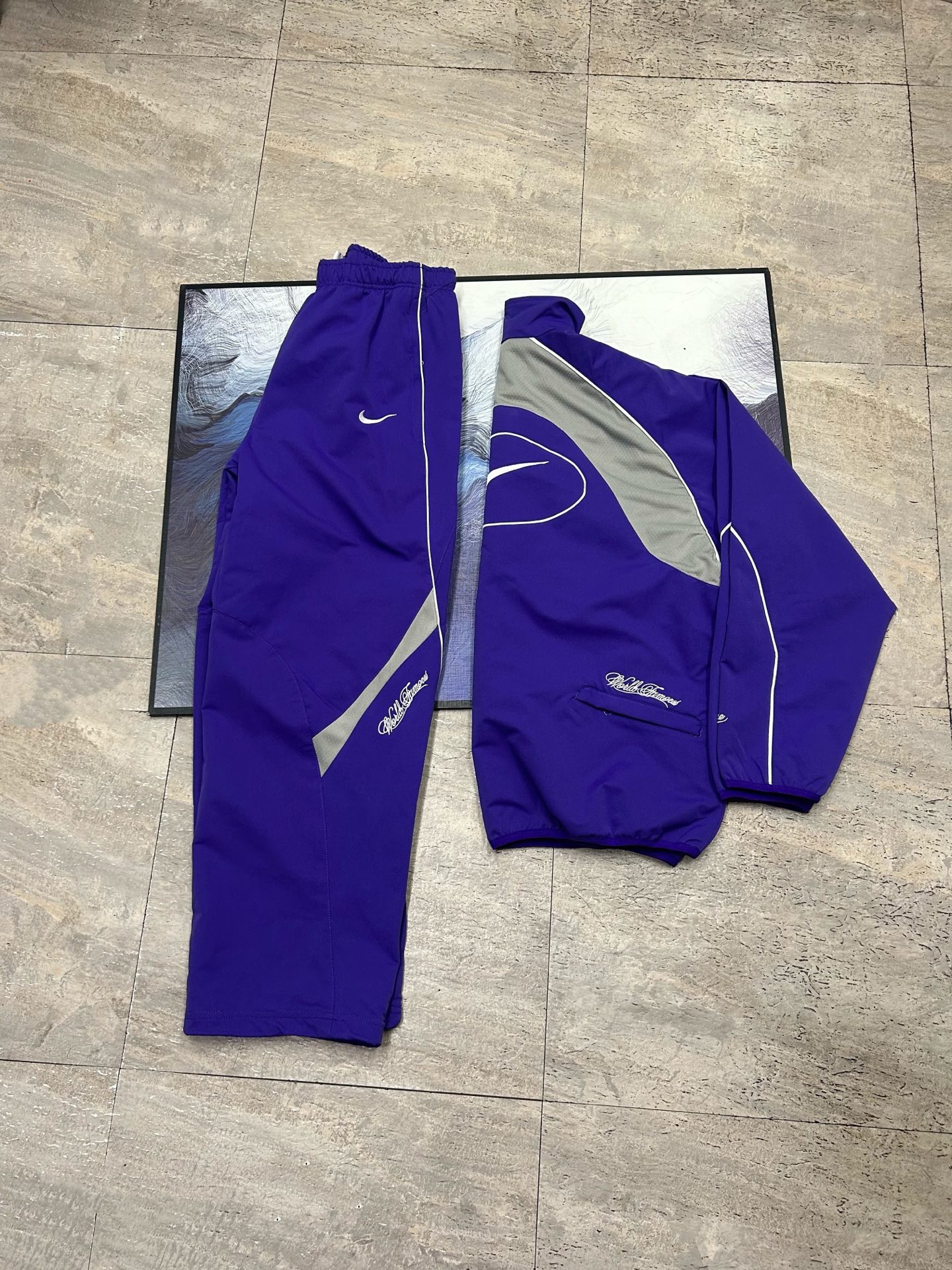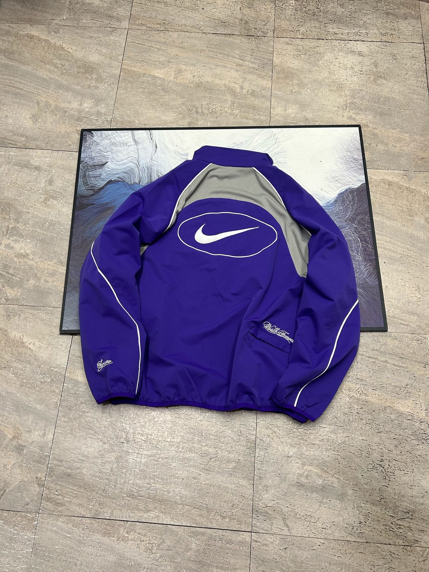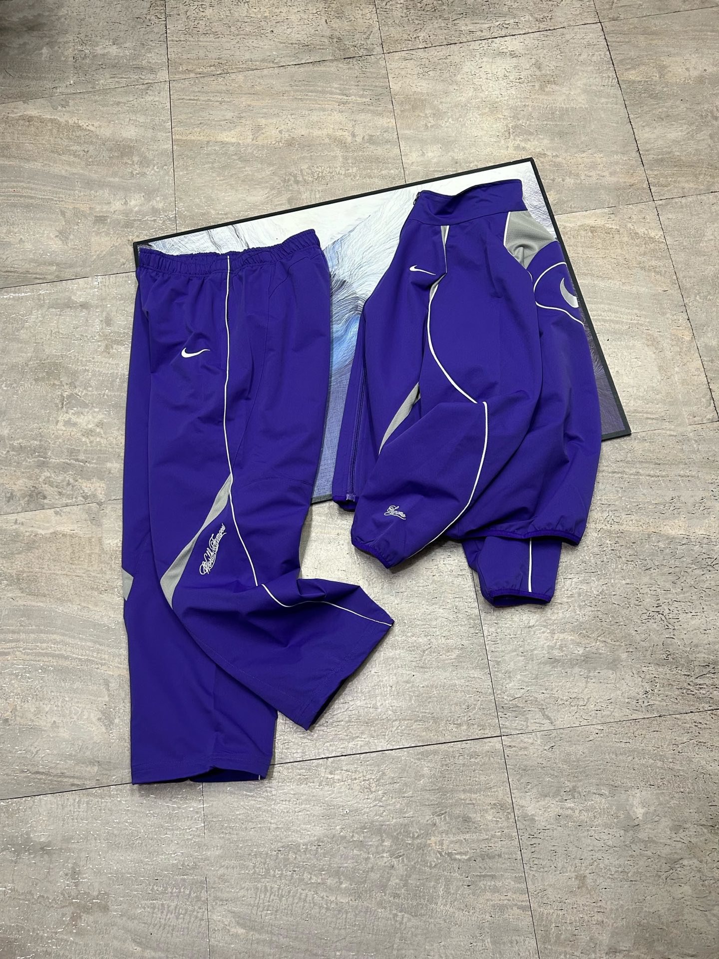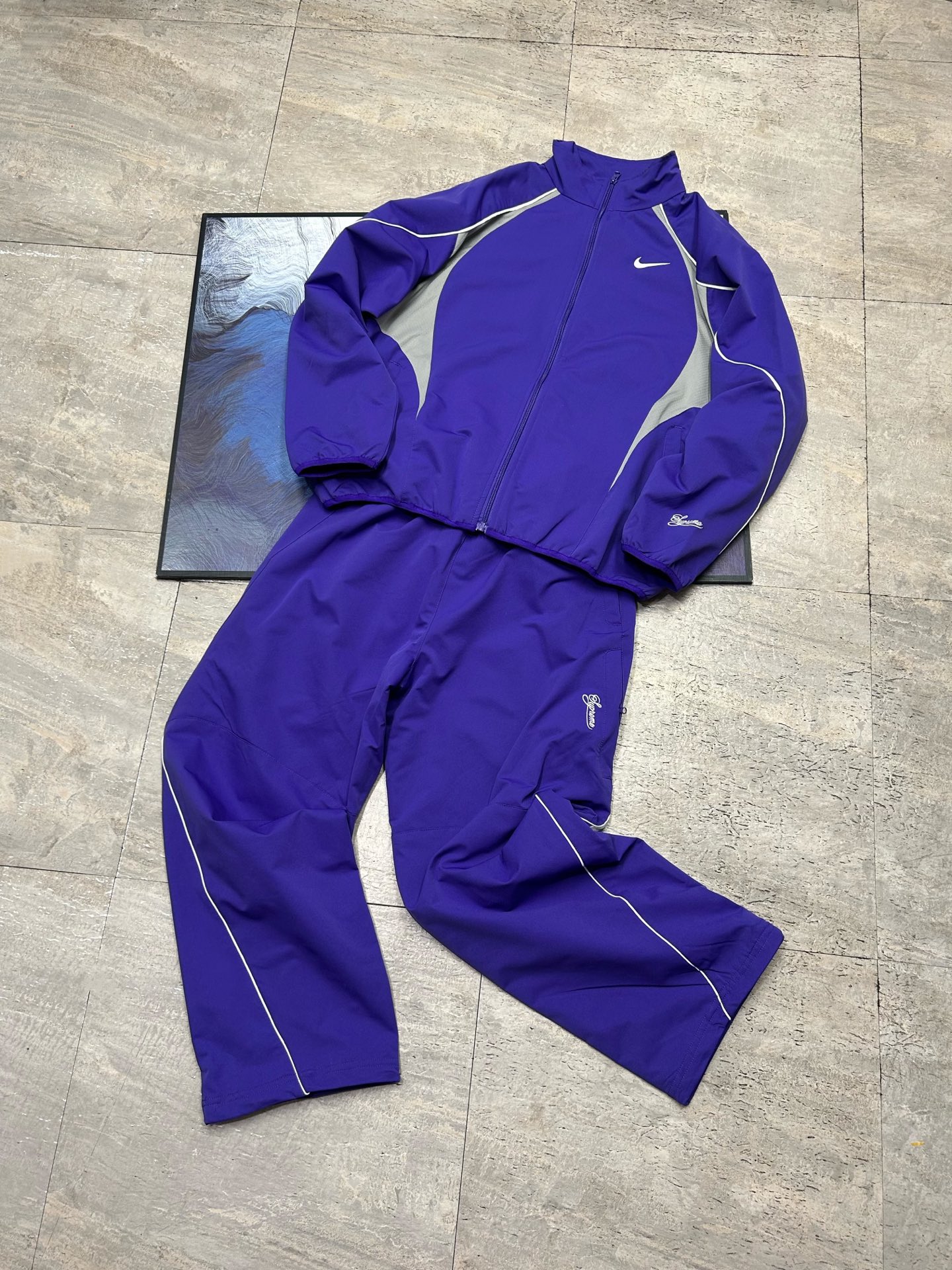 Elevate your streetwear with this Supreme x Nike track jacket. Features include embroidered logo, zip closure, and a comfortable fit. Perfect for any wardrobe.