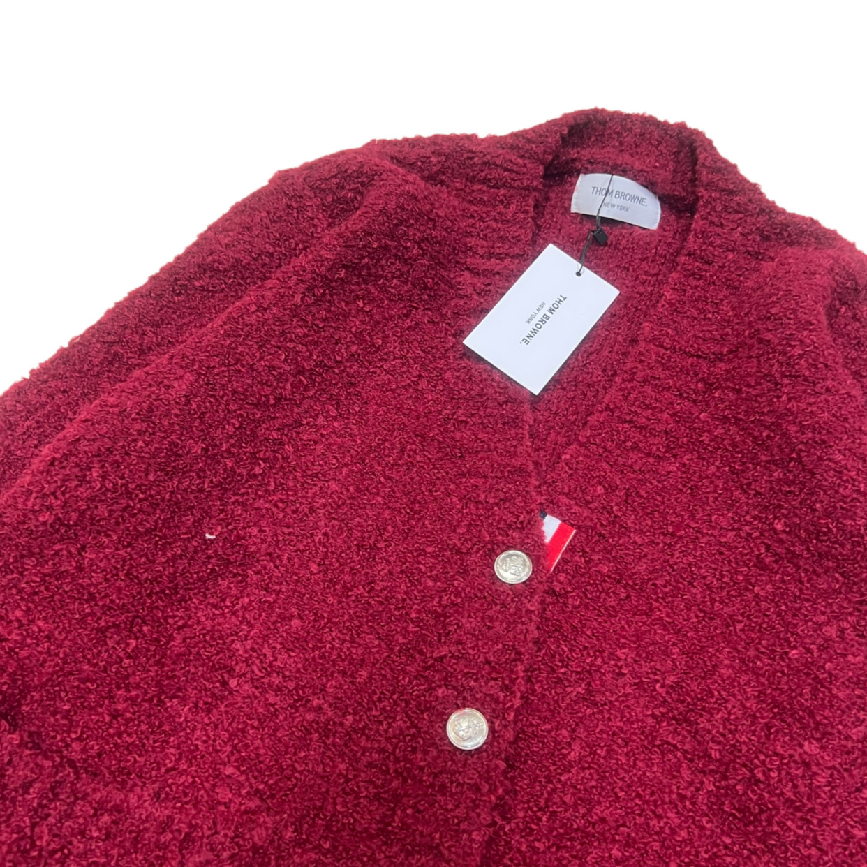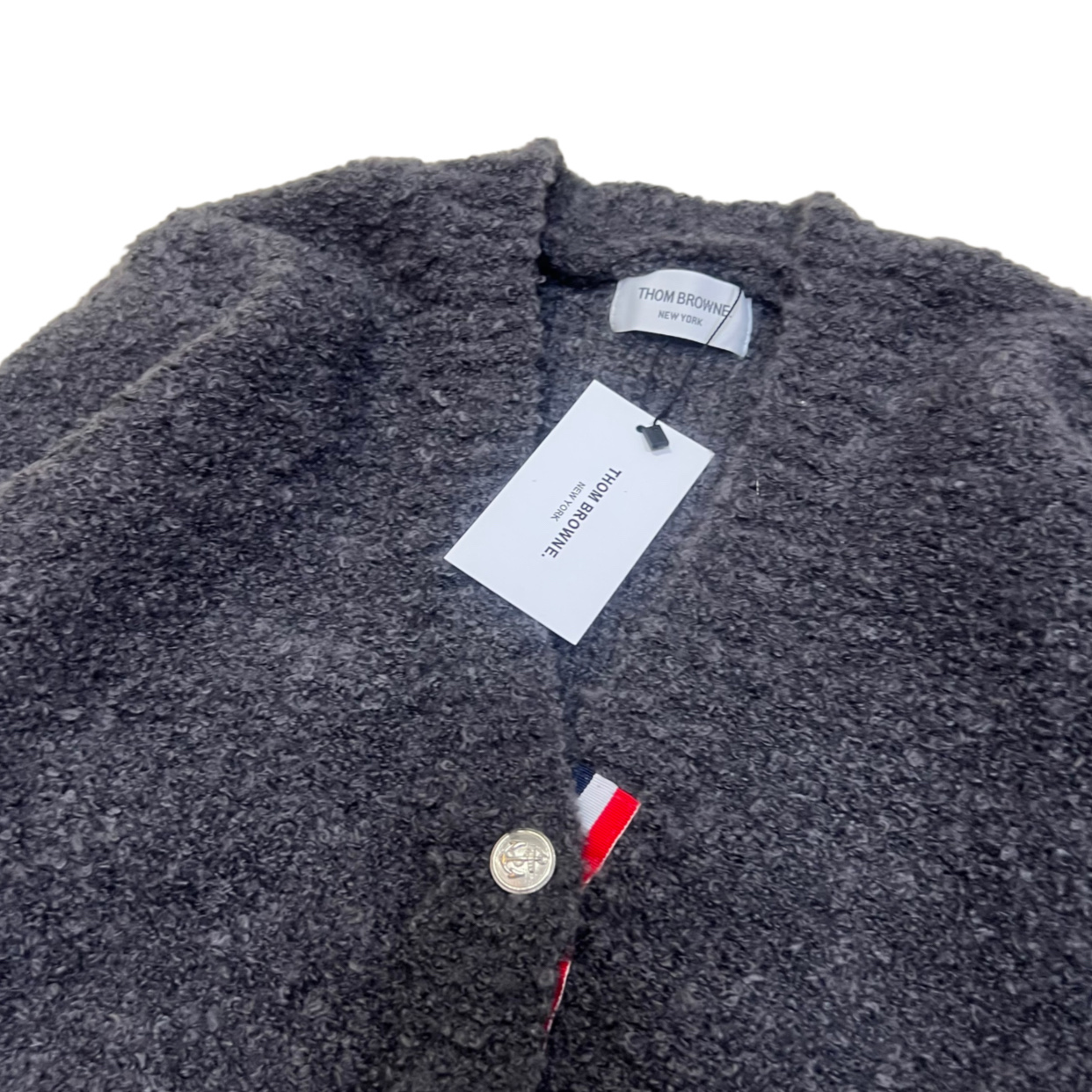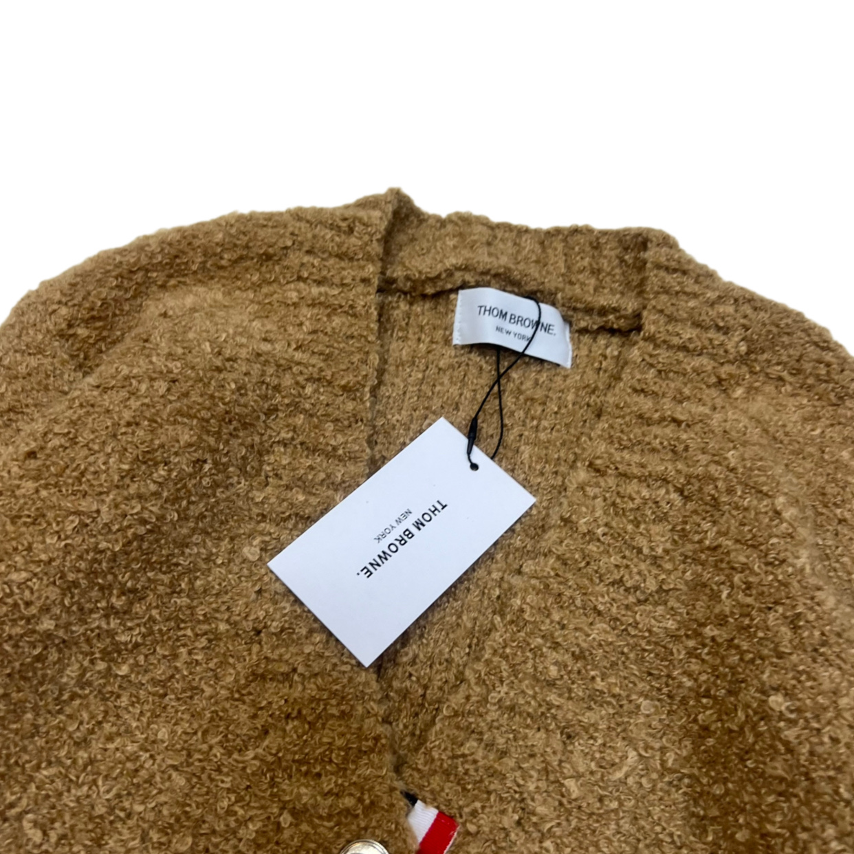 Experience the comfort and style of this Thom Browne cardigan. Expertly crafted with loop knit fabric, this V-neck cardigan is a wardrobe essential.