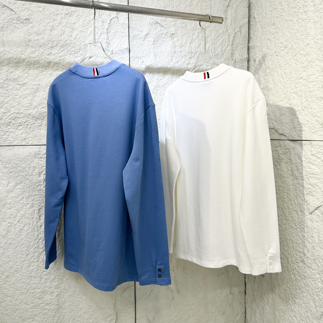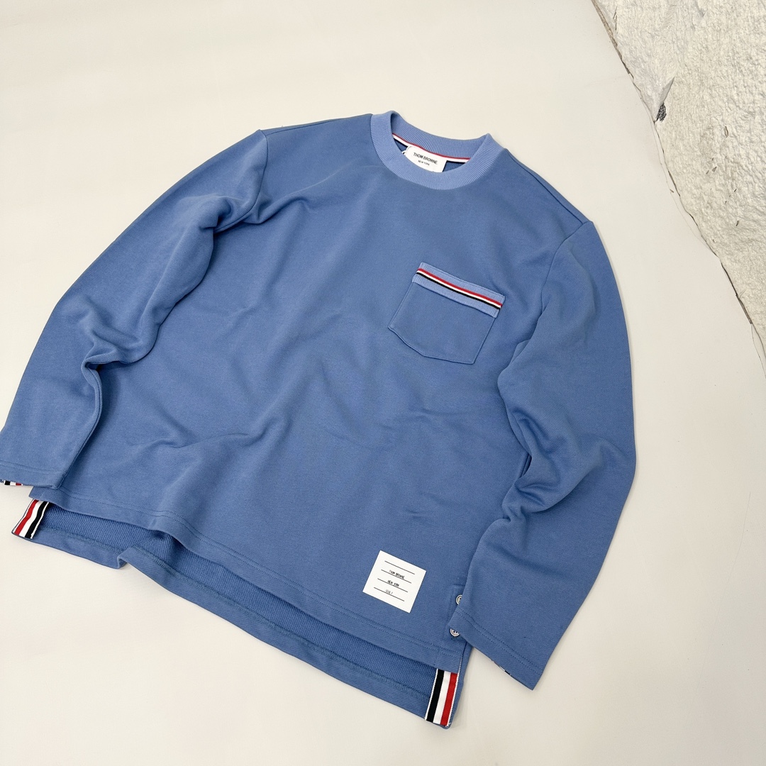 Thom Browne Cotton Long Sleeve T-Shirt with Pocket - Blue and White