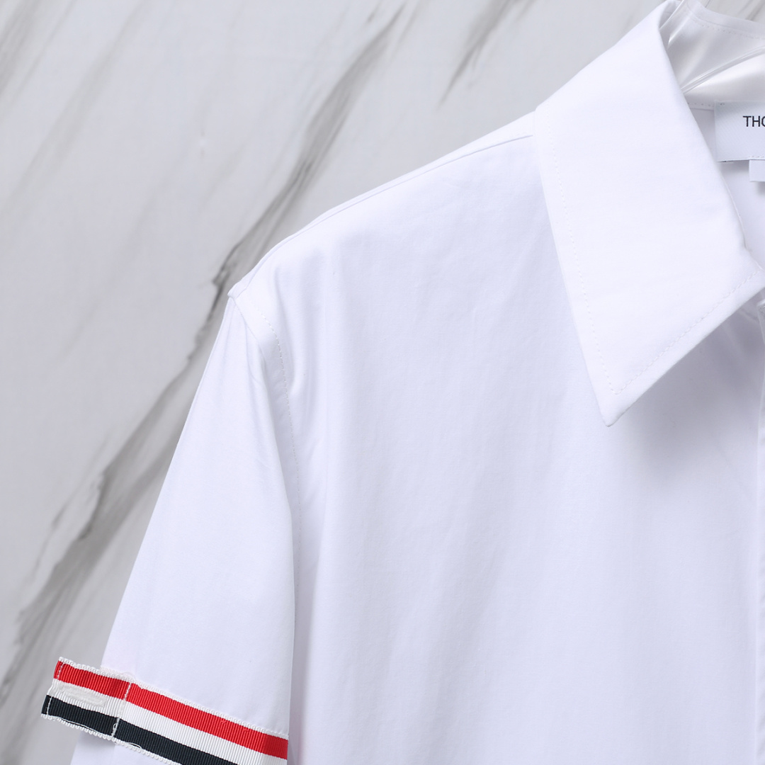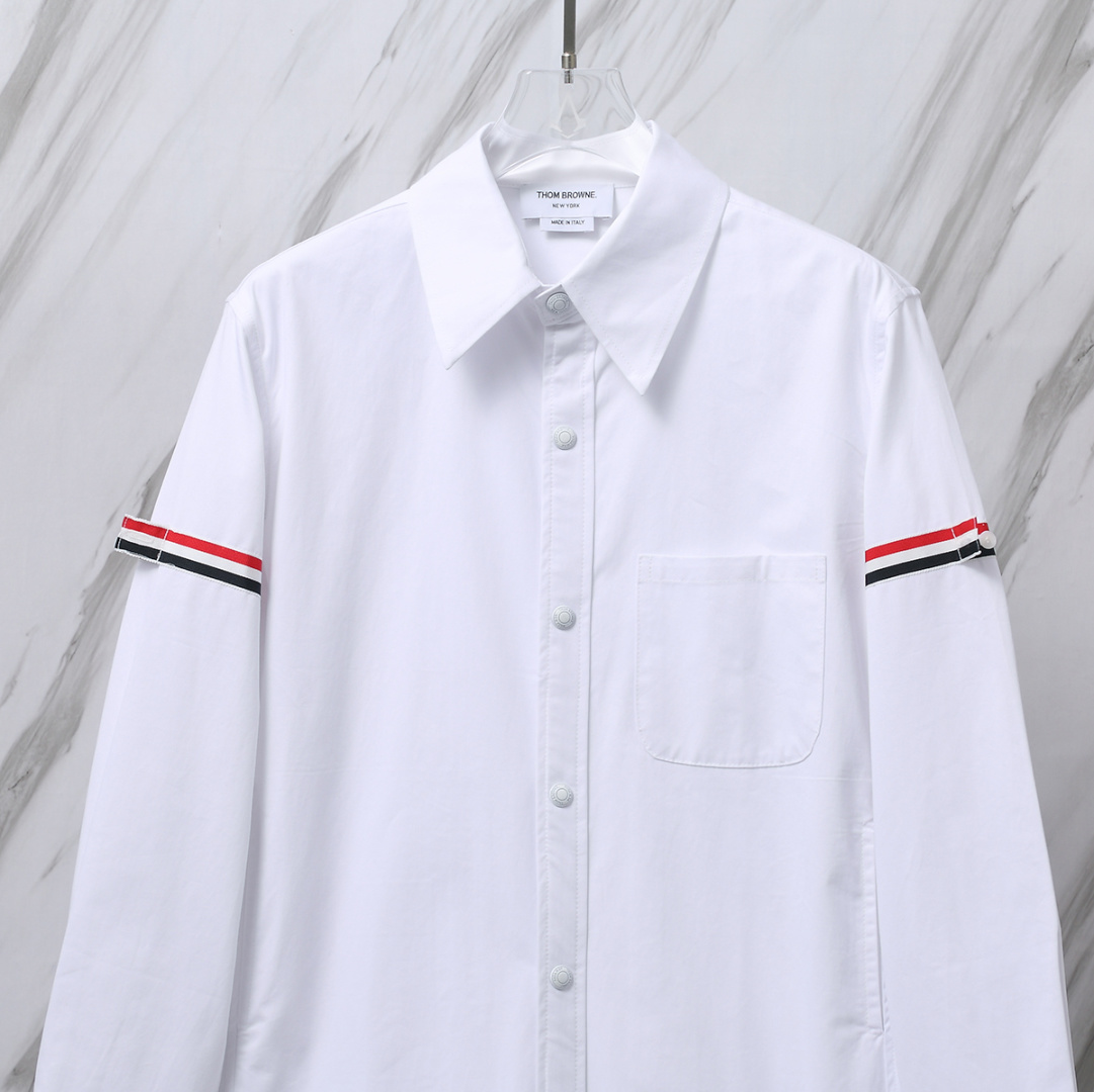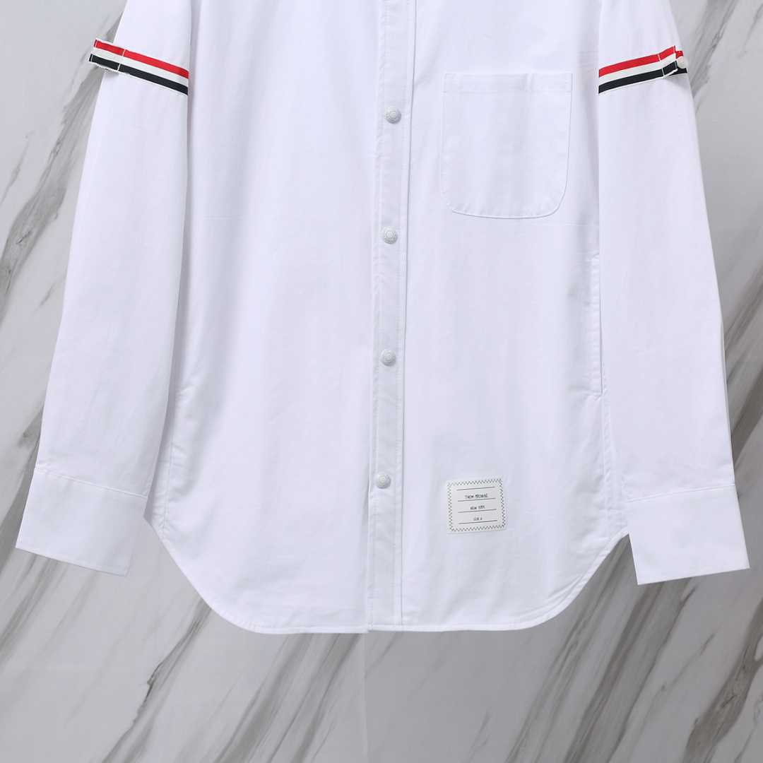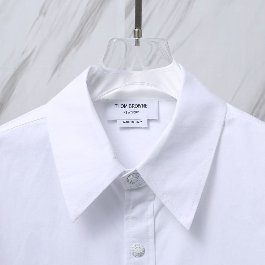 This Thom Browne jacket shirt exemplifies the brand's commitment to quality and distinctive design. Crafted from premium cotton twill and featuring the iconic striped detail, this piece is a versatile addition to any discerning wardrobe.