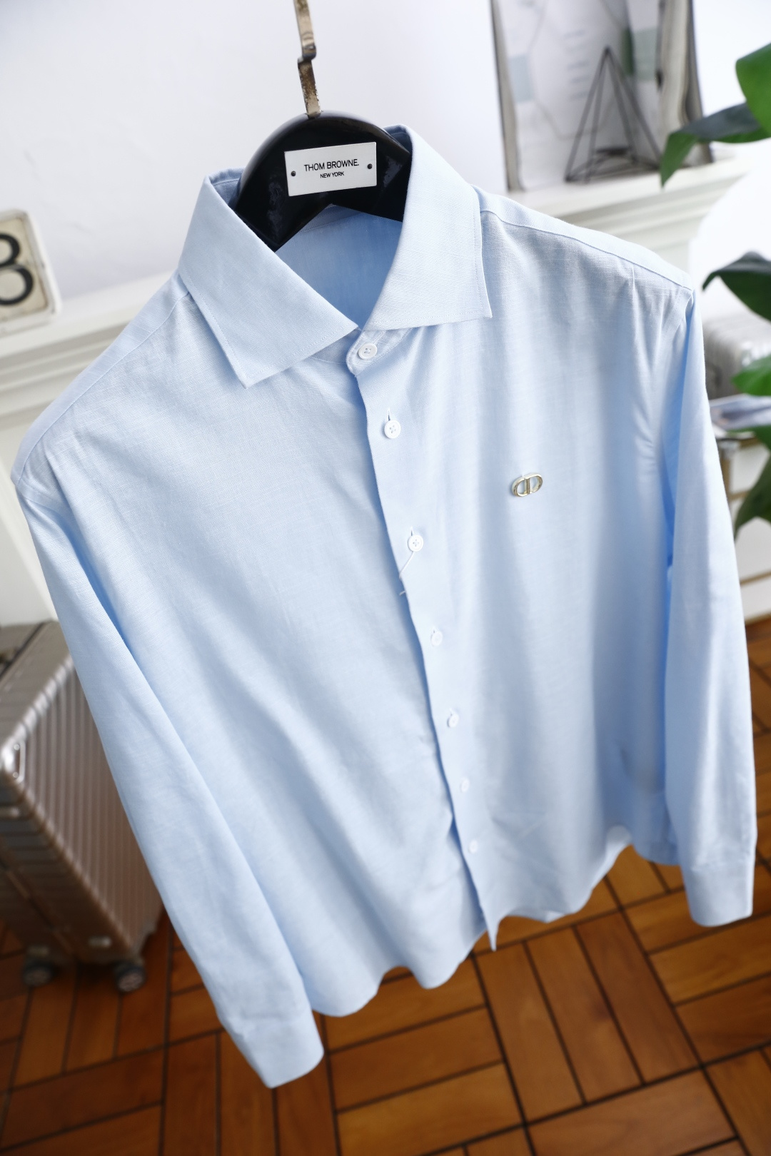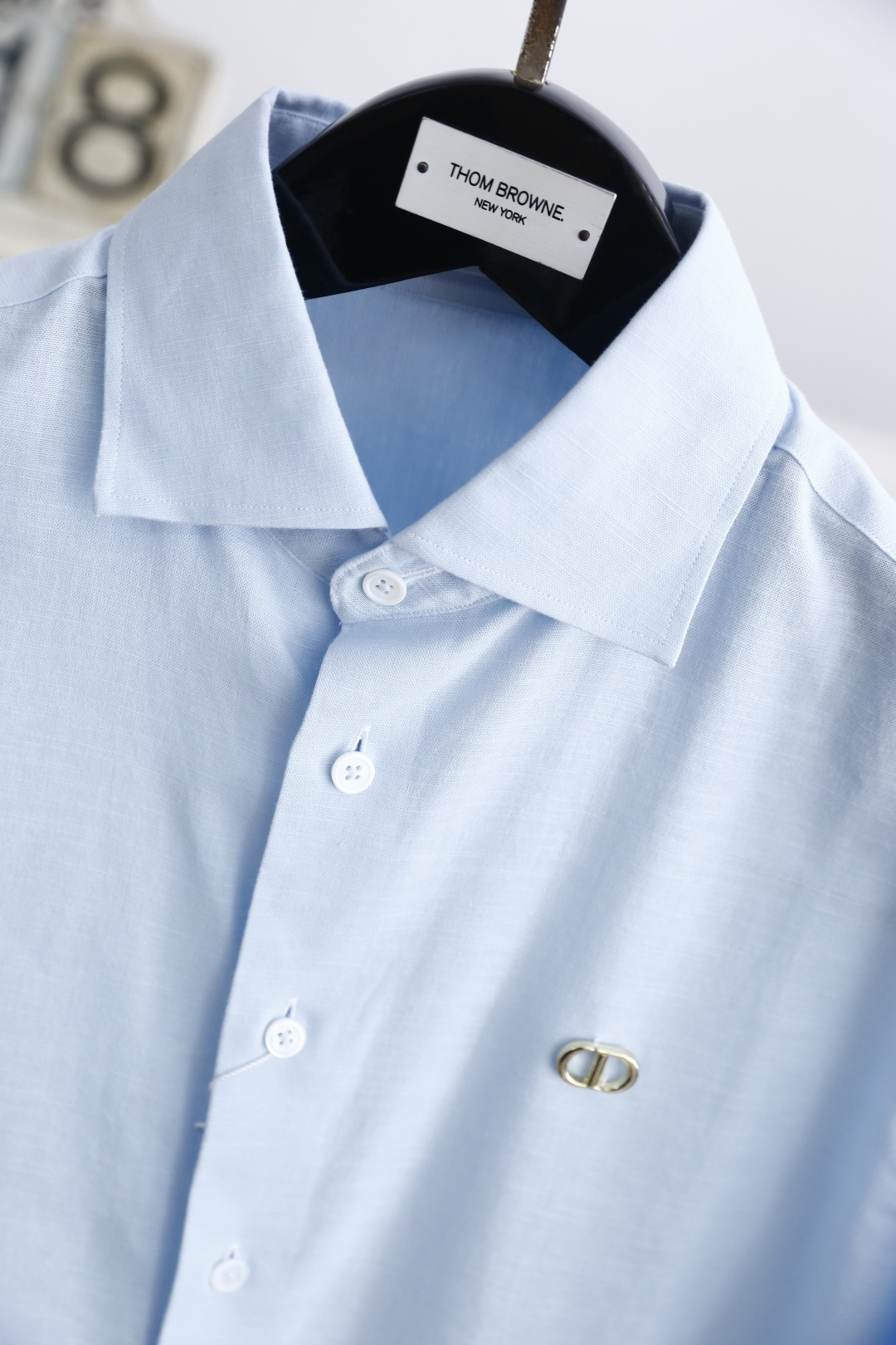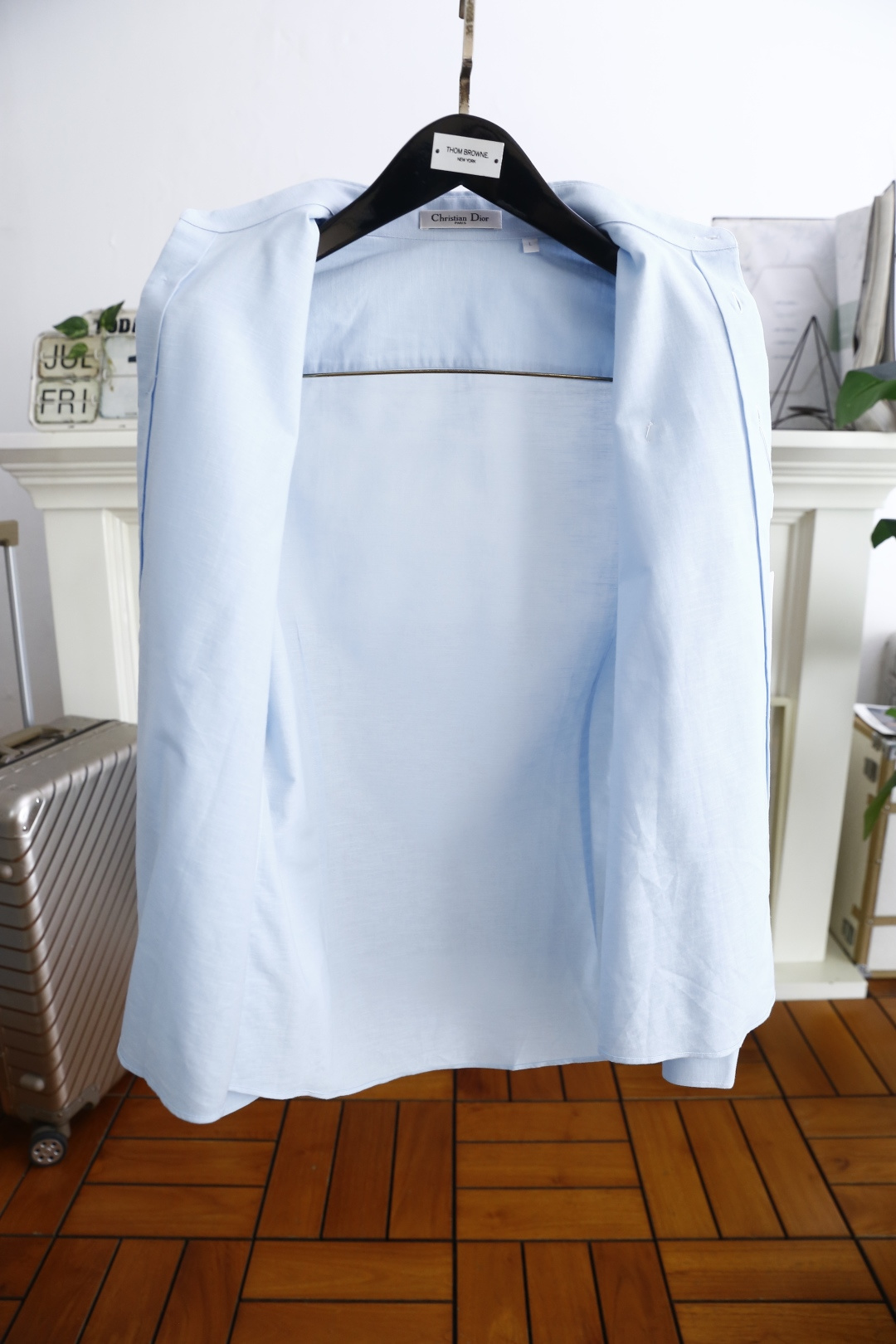 Thom Browne Men's Light Blue Long Sleeve Shirt with Signature Logo