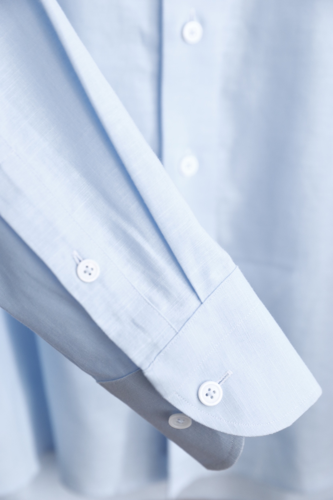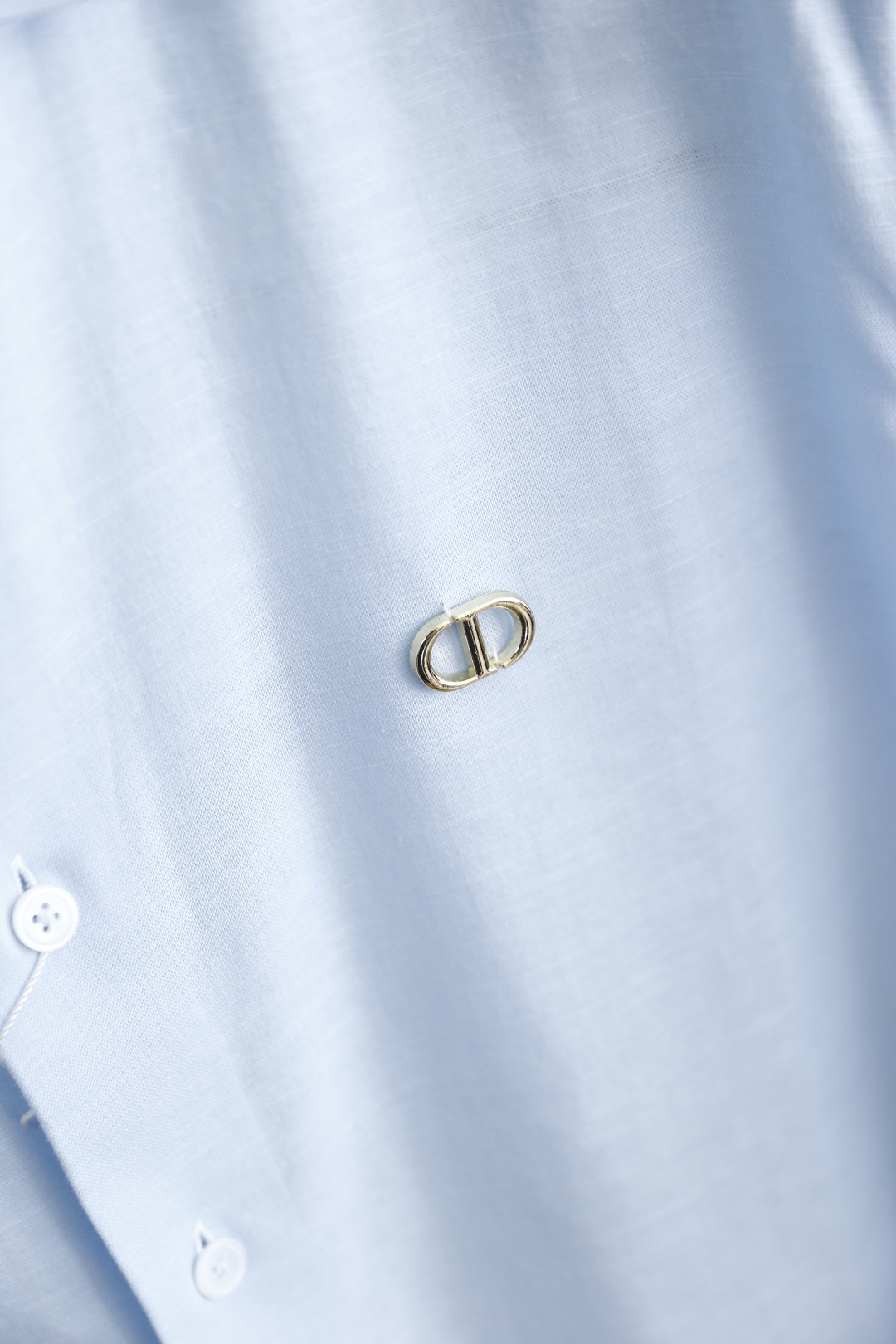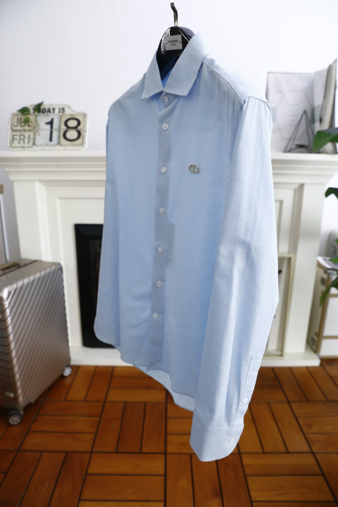 Thom Browne Men's Light Blue Long Sleeve Shirt with Signature Logo