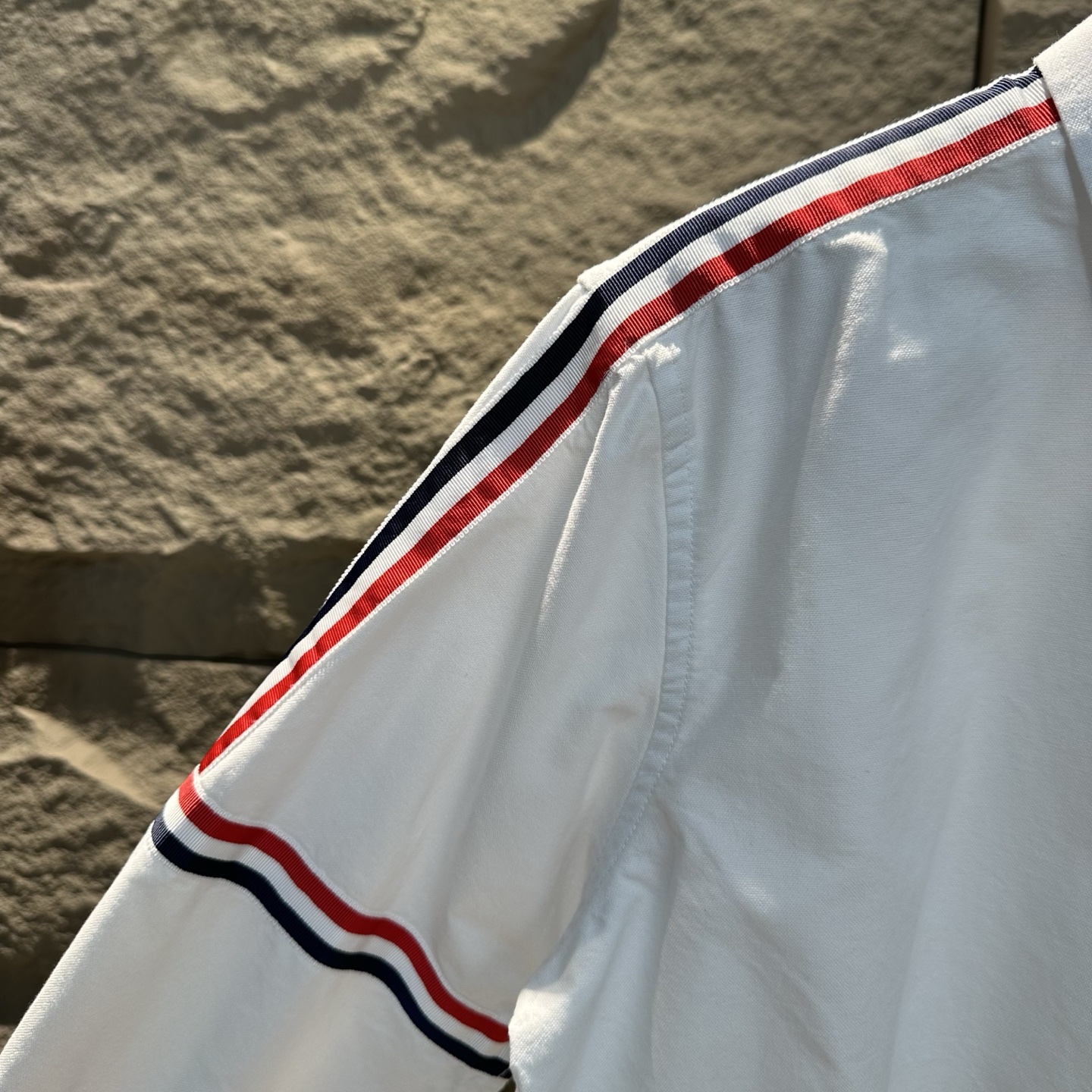Thom Browne Men's White Long Sleeve Oxford Shirt with Signature Arm Stripes