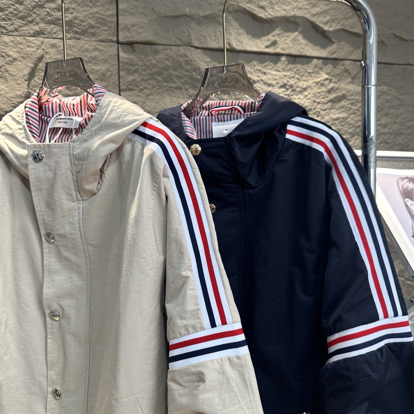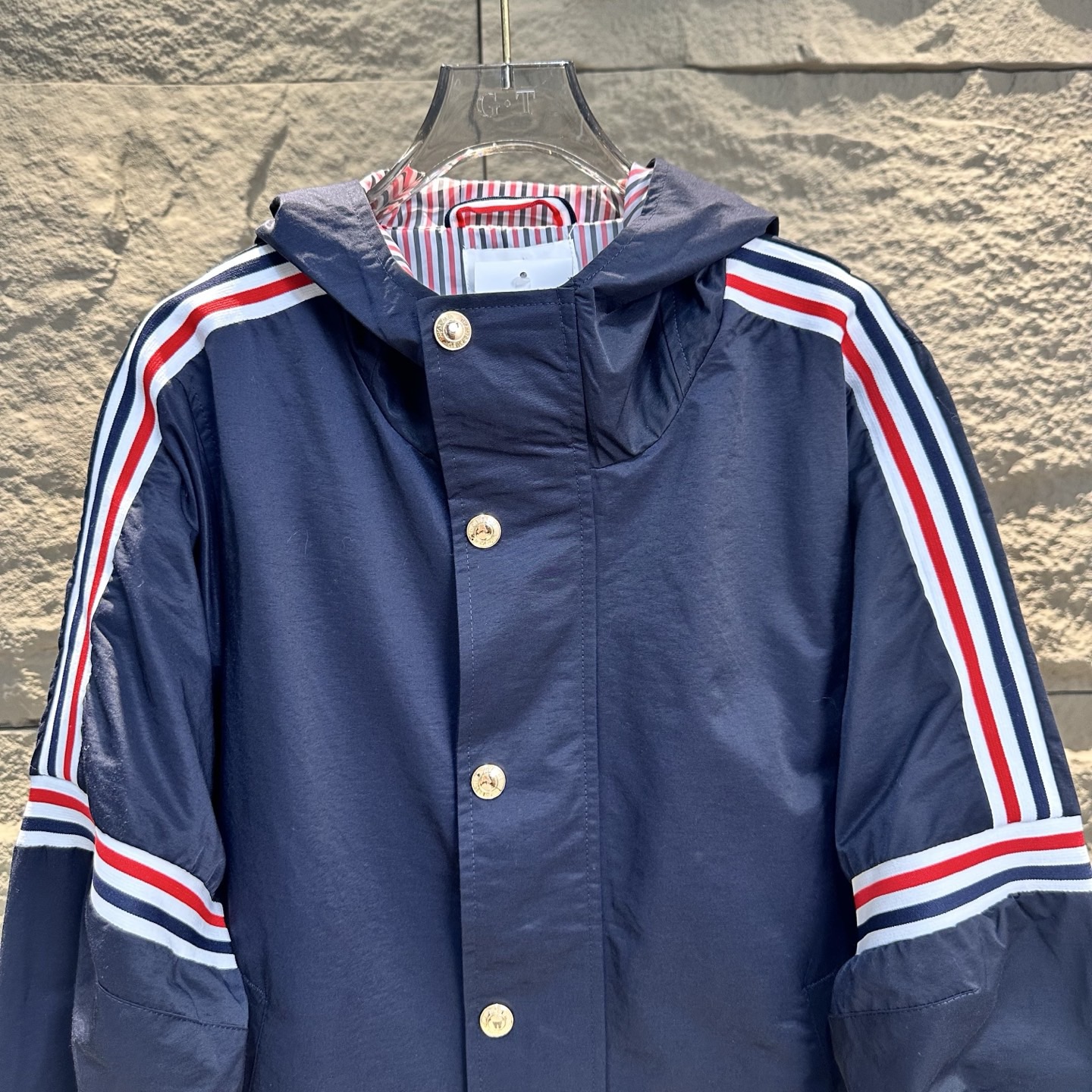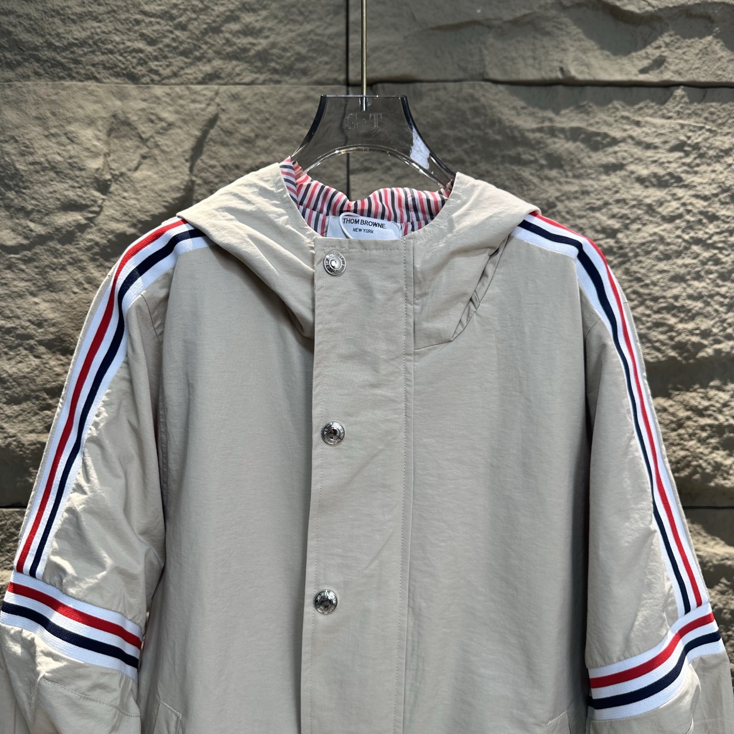 Thom Browne Stripe Sleeve Hooded Jacket - Stylish Windbreaker Coat