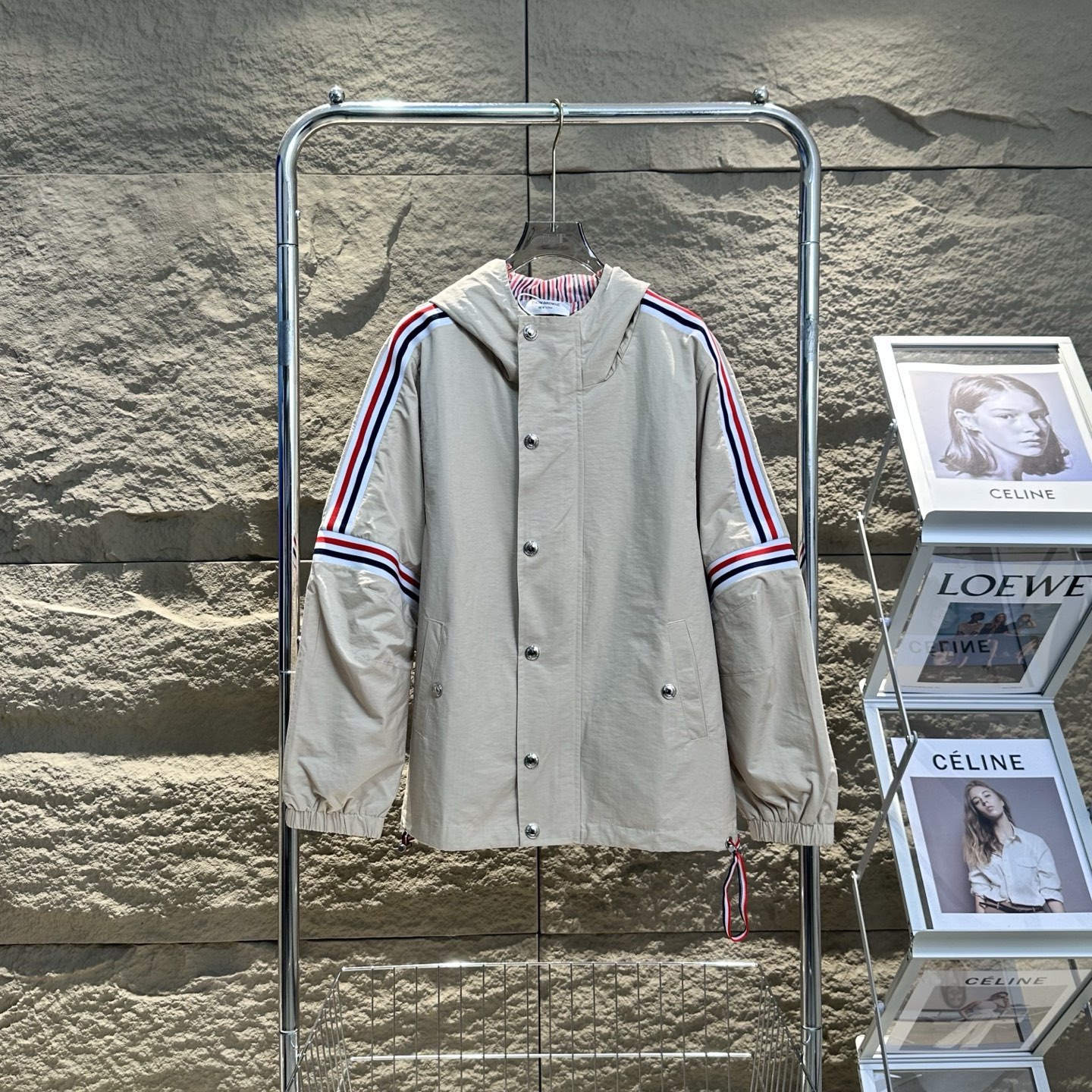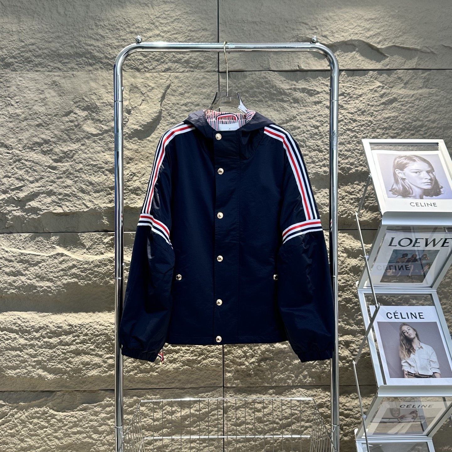 This Thom Browne jacket is a must-have for those who appreciate high-end fashion with a touch of practicality. Stay ahead of the style curve with this designer outerwear.
